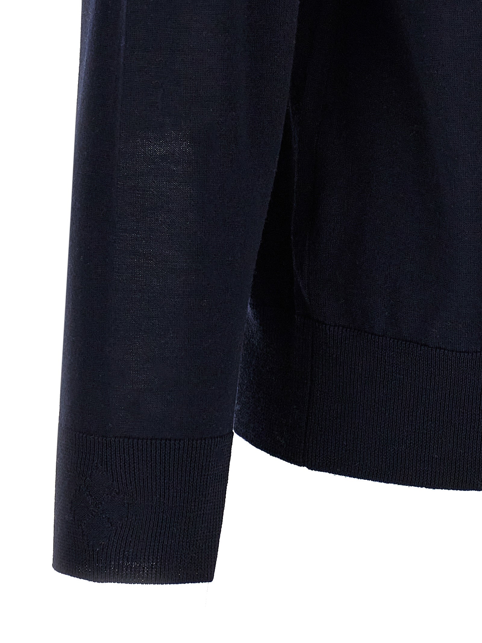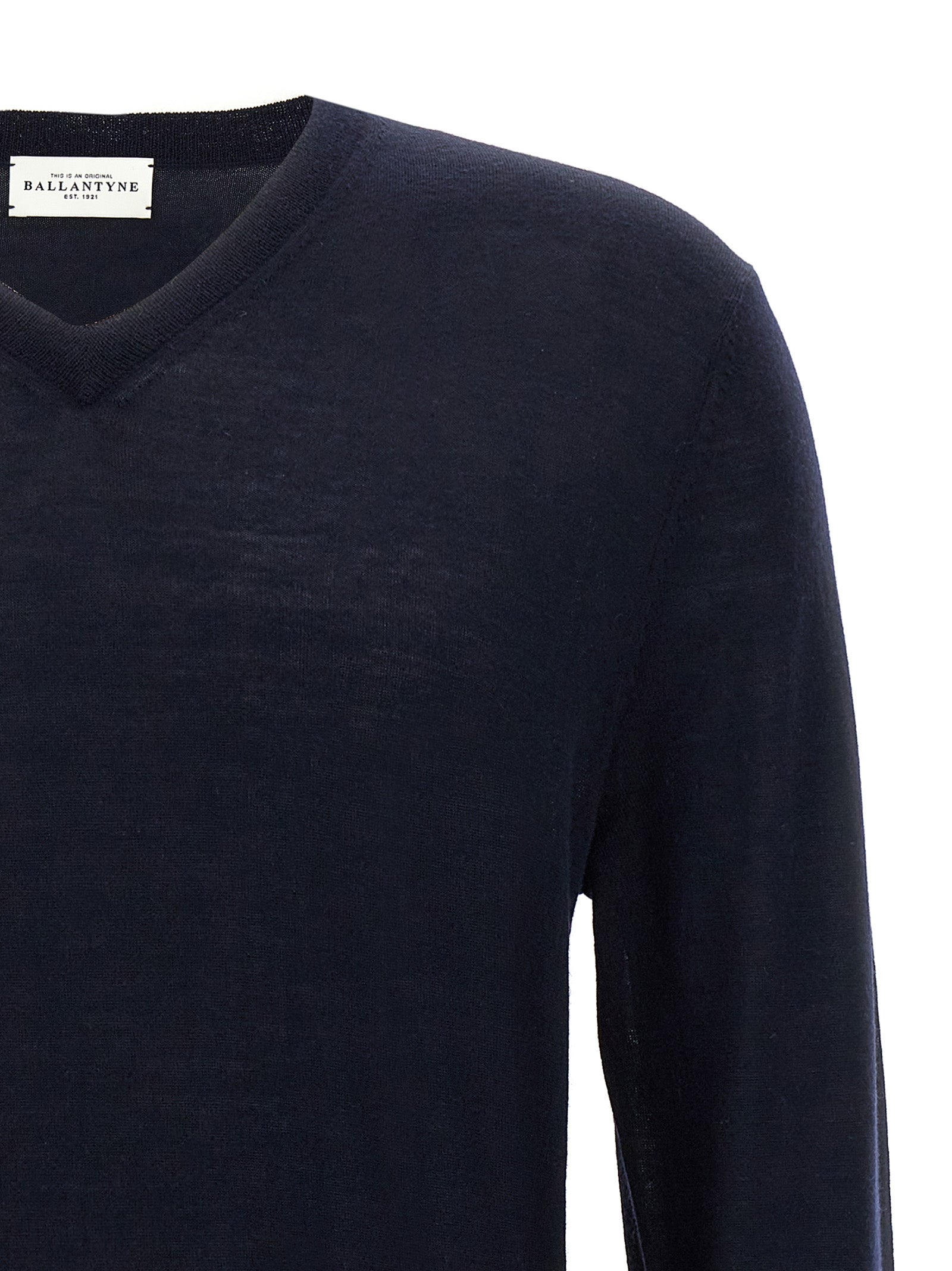 Light wool 'V Neck' sweater with wide V-neck, long cuffed sleeves.