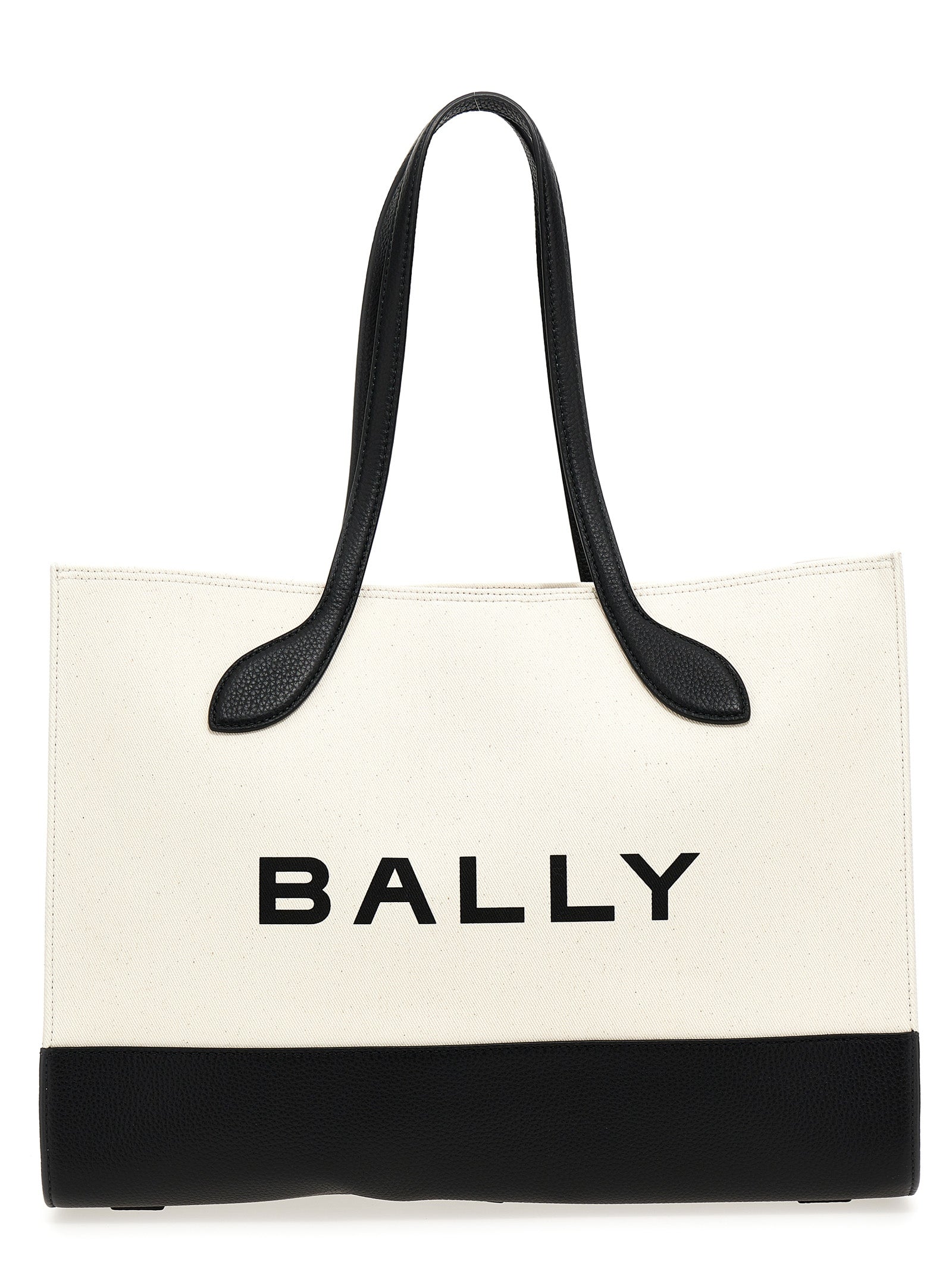 Bar Keep On shopper in canvas and leather with double leather handle, and logo print.int.