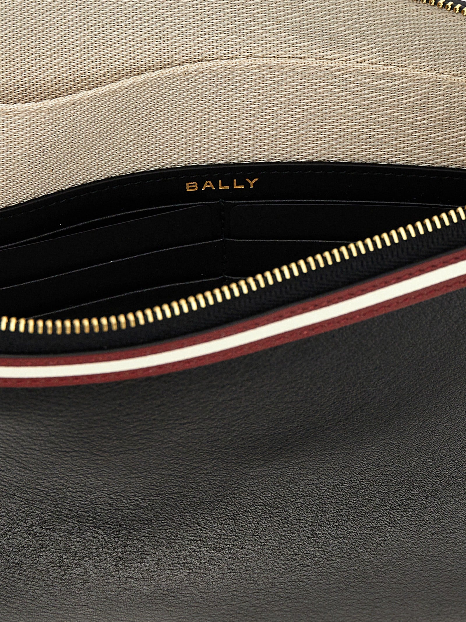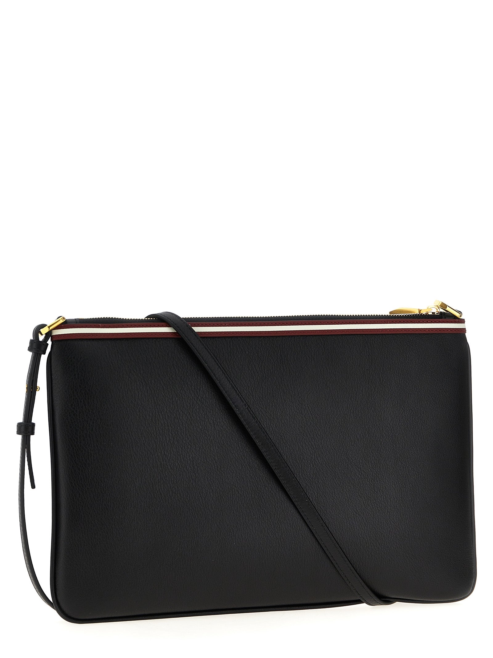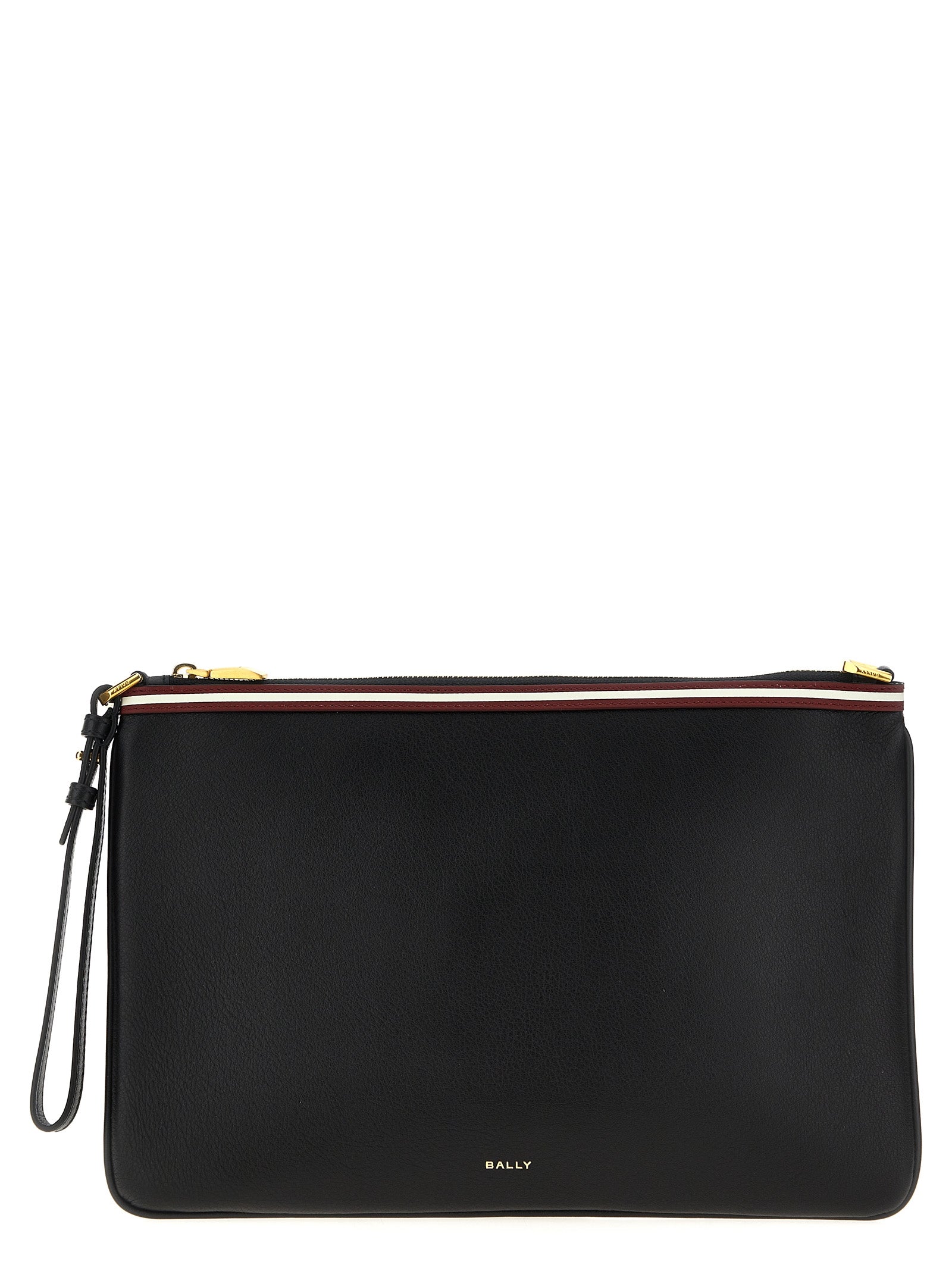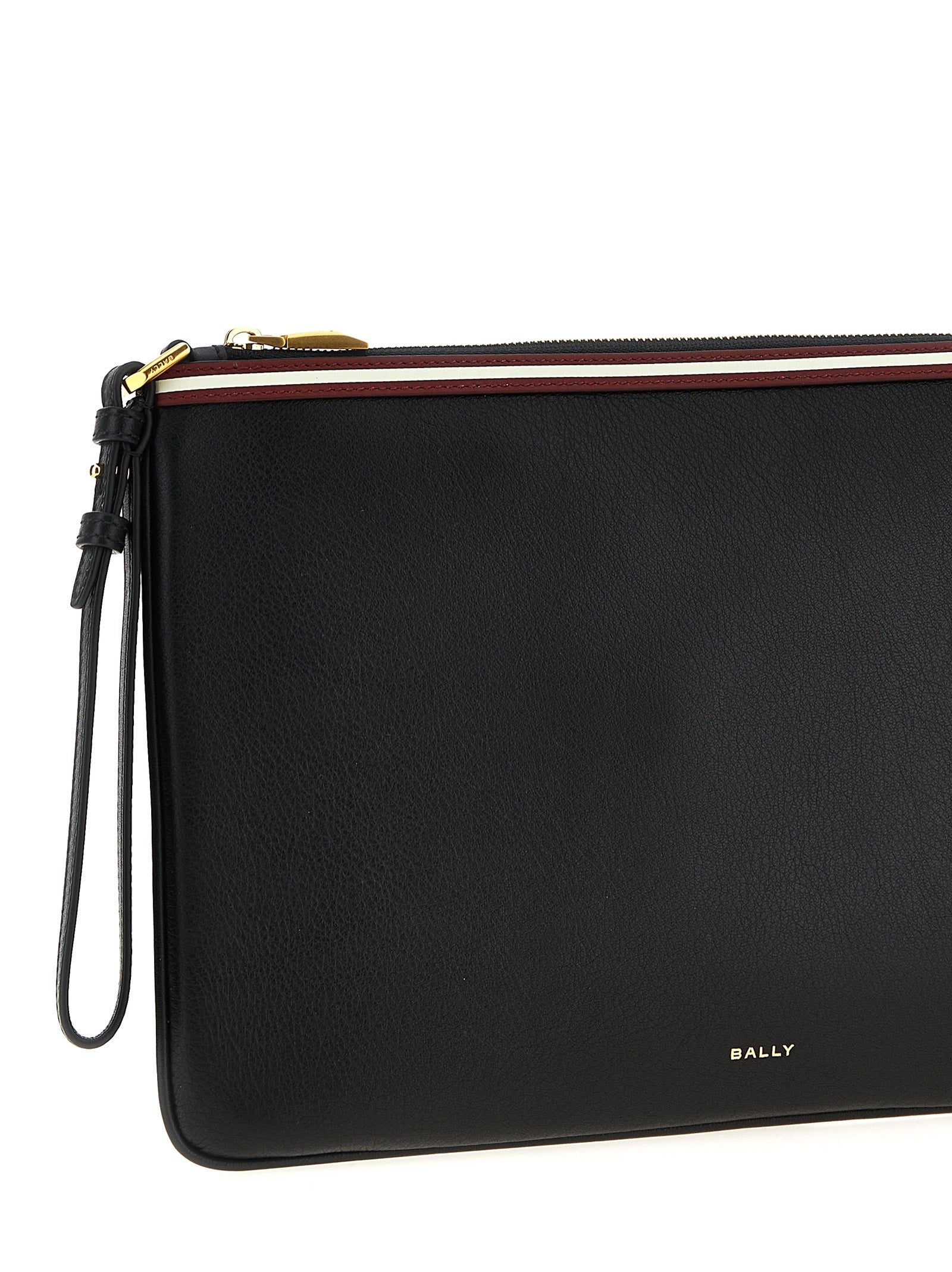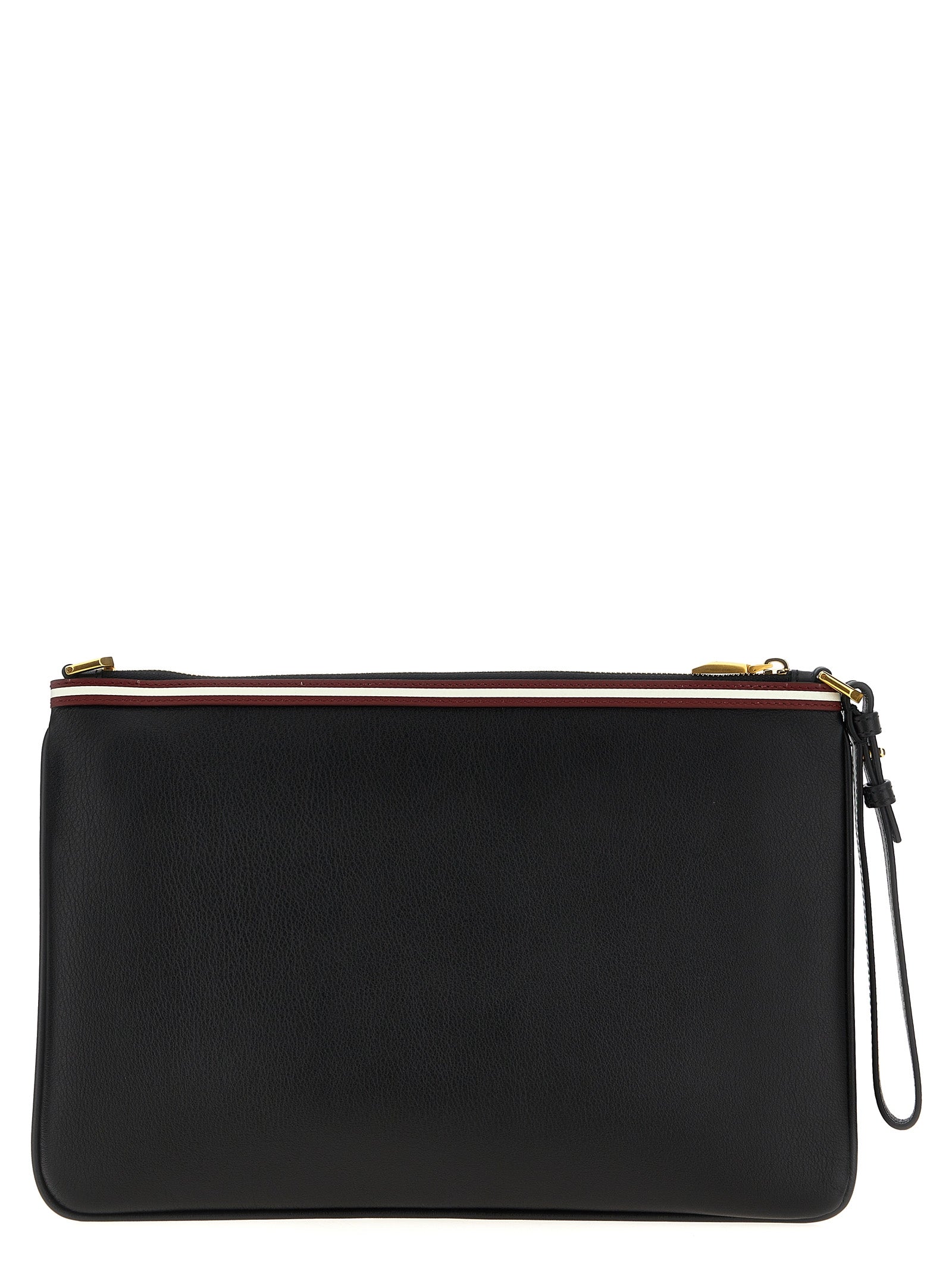 'Code Wristlet' leather clutch bag with contrasting detail, front embossed logo, zip closure, removable wrist handle, removable shoulder strap.