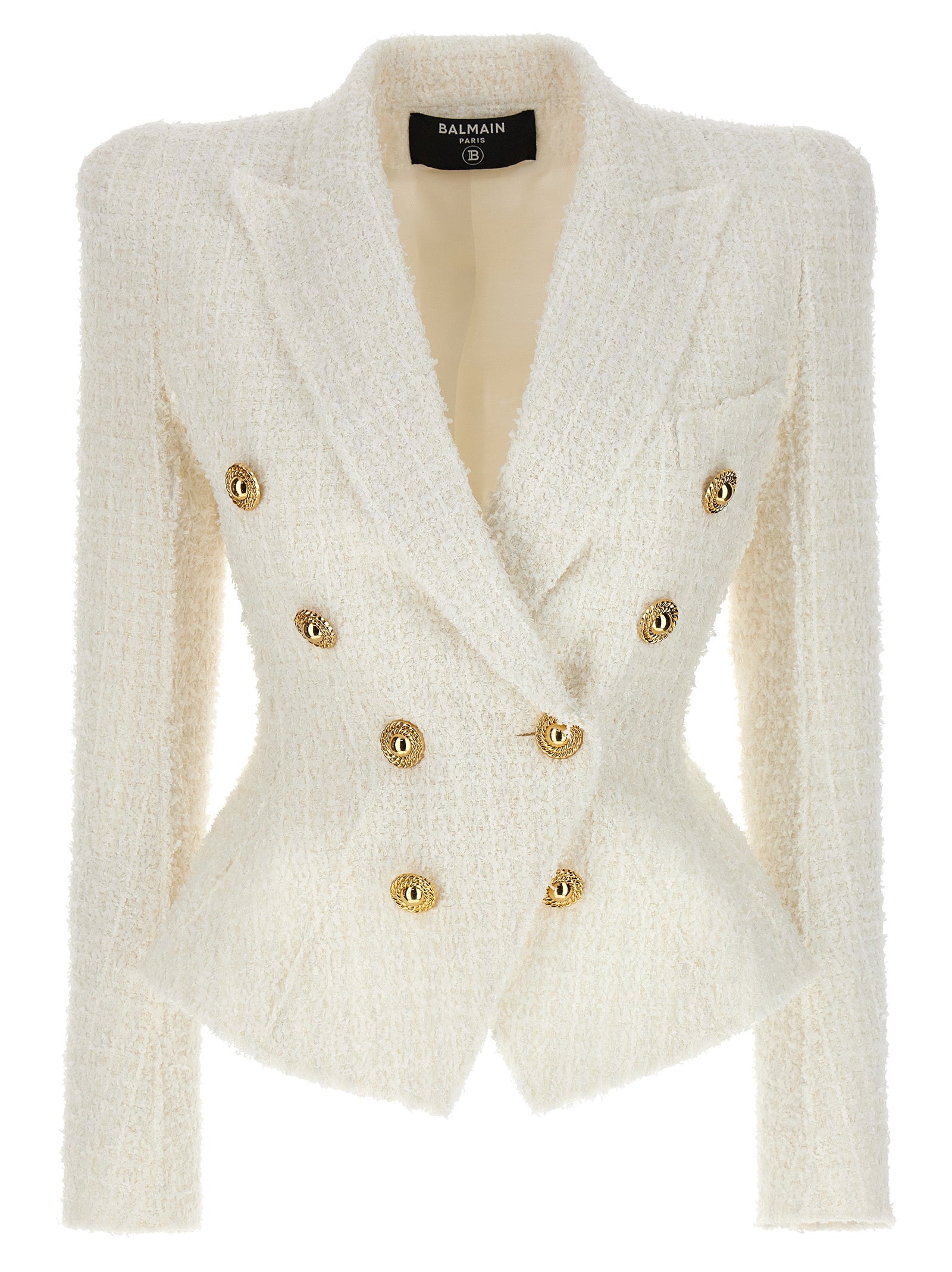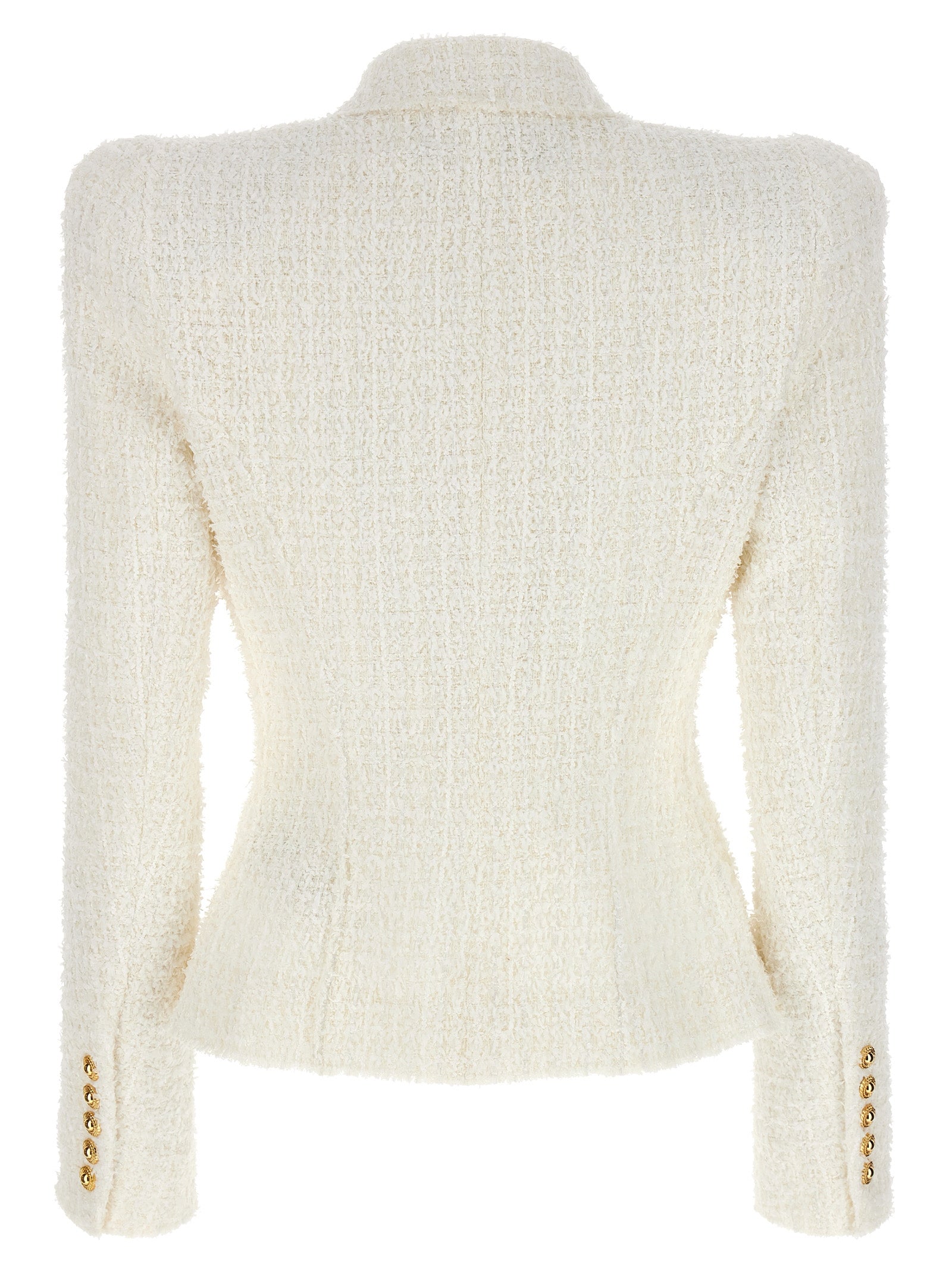 Balmain Double Breasted Tweed Blazer With Logo Buttons