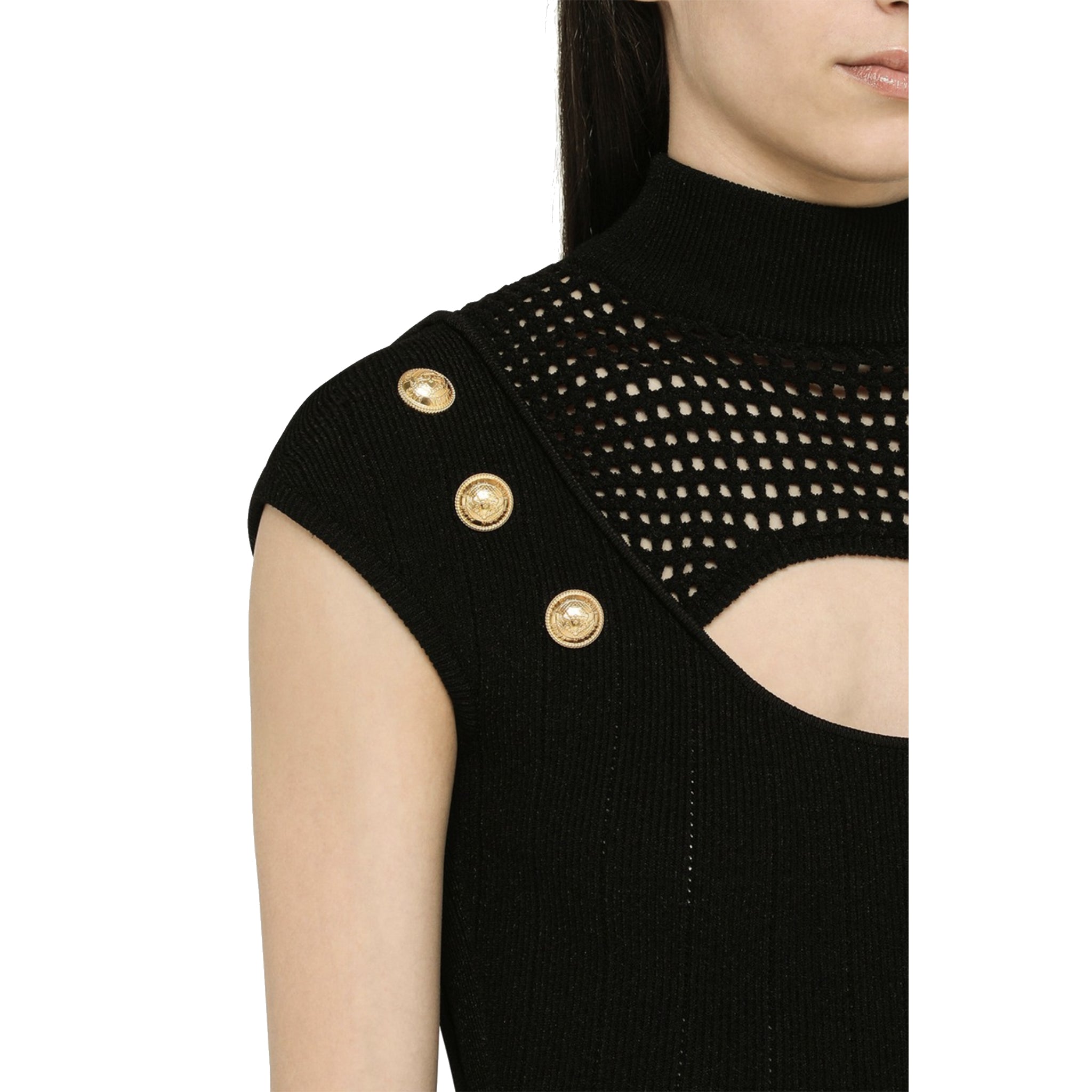 - Composition: 83% Viscose 17% Polyester - Short sleeves - Gold tone buttons detail - Cut-out detail - Model is 1.78m wearing size 39 - Made in Italy -