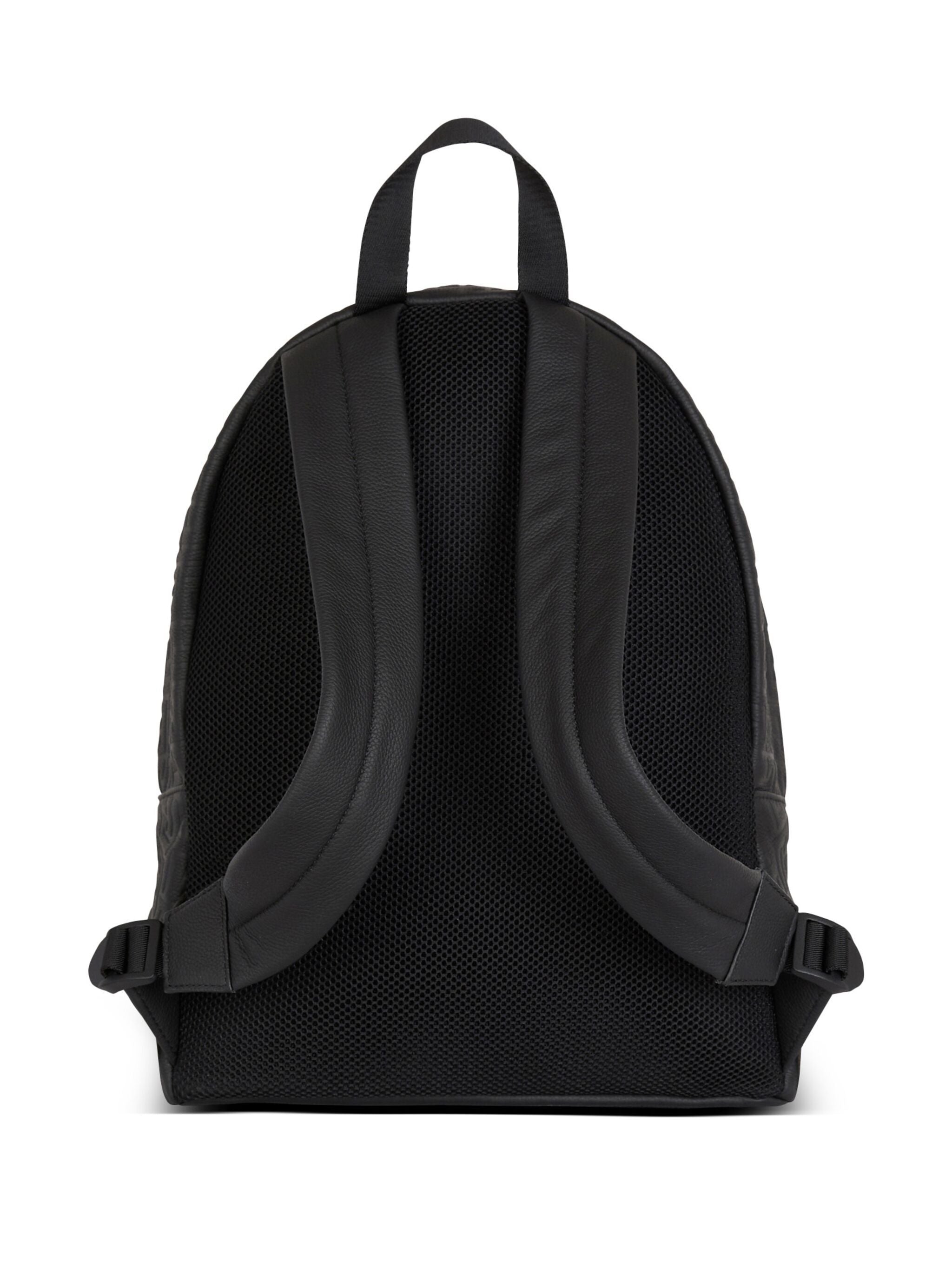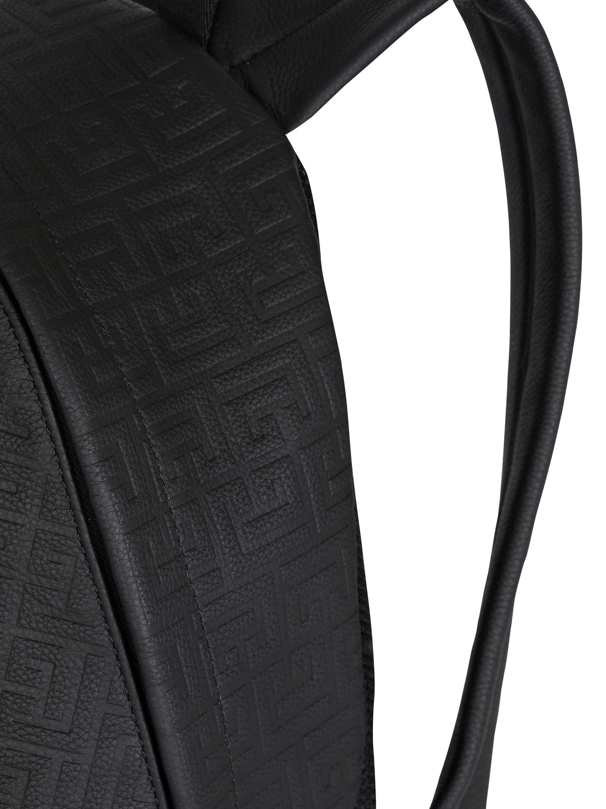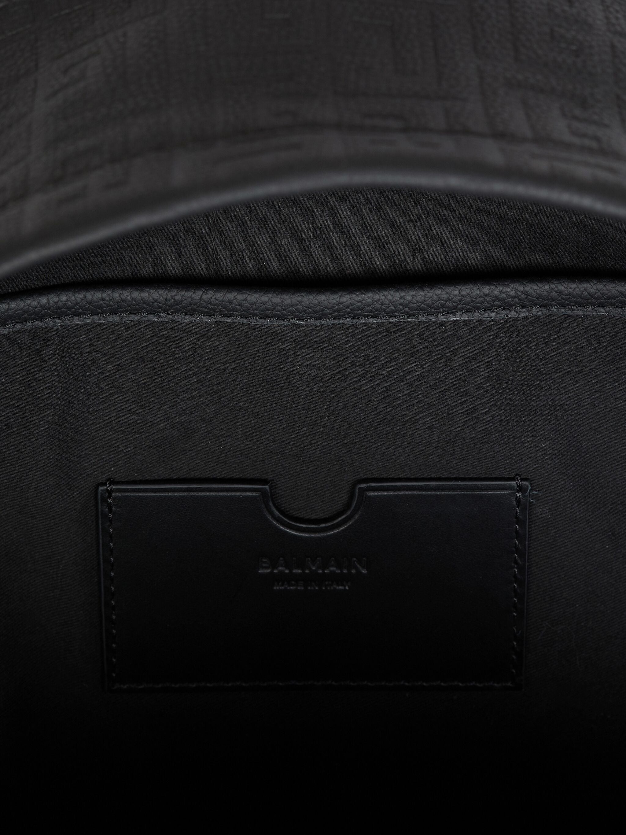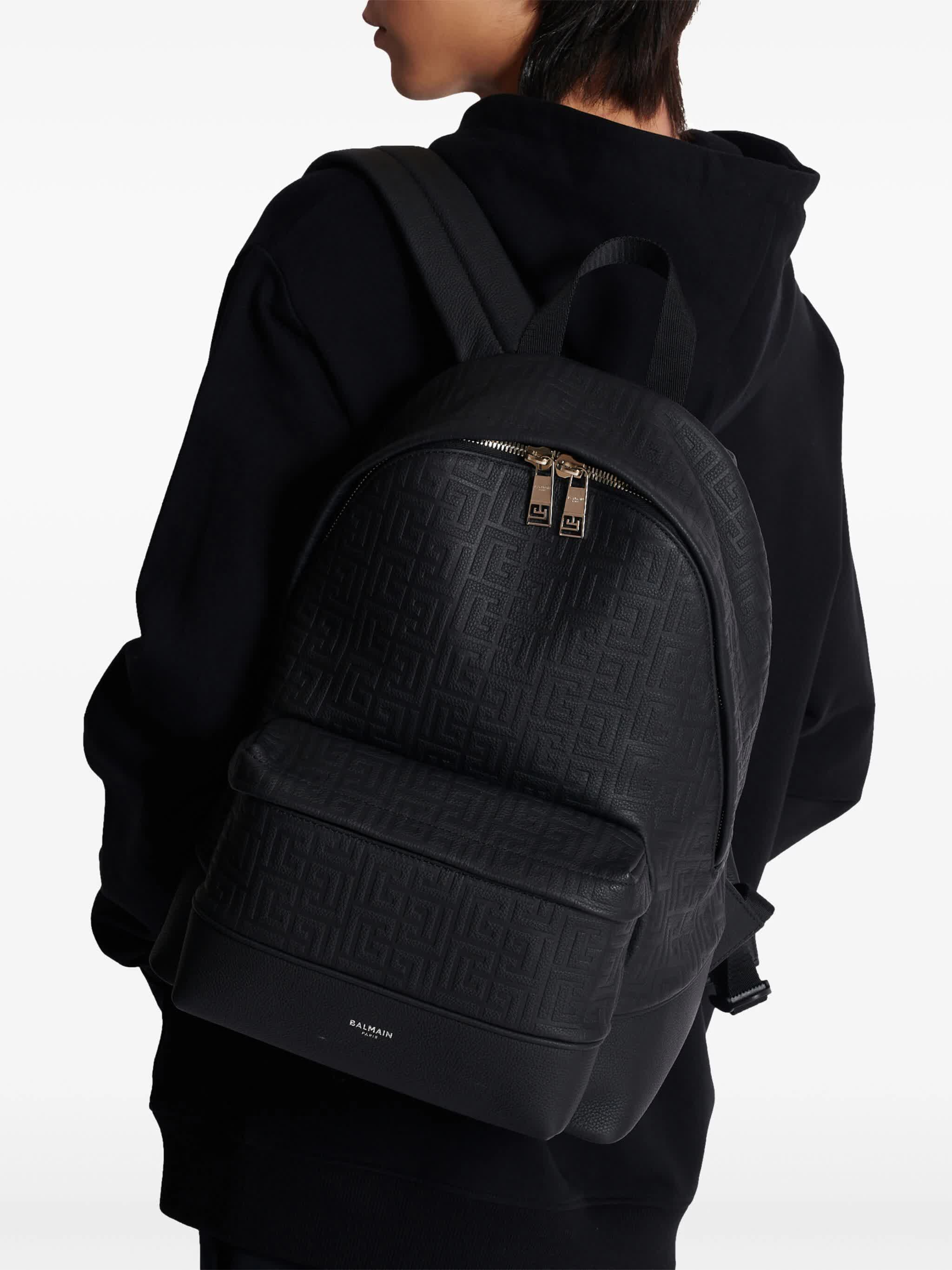 Balmain features this granulated leather backpack with embossed PB labyrinth monogram.