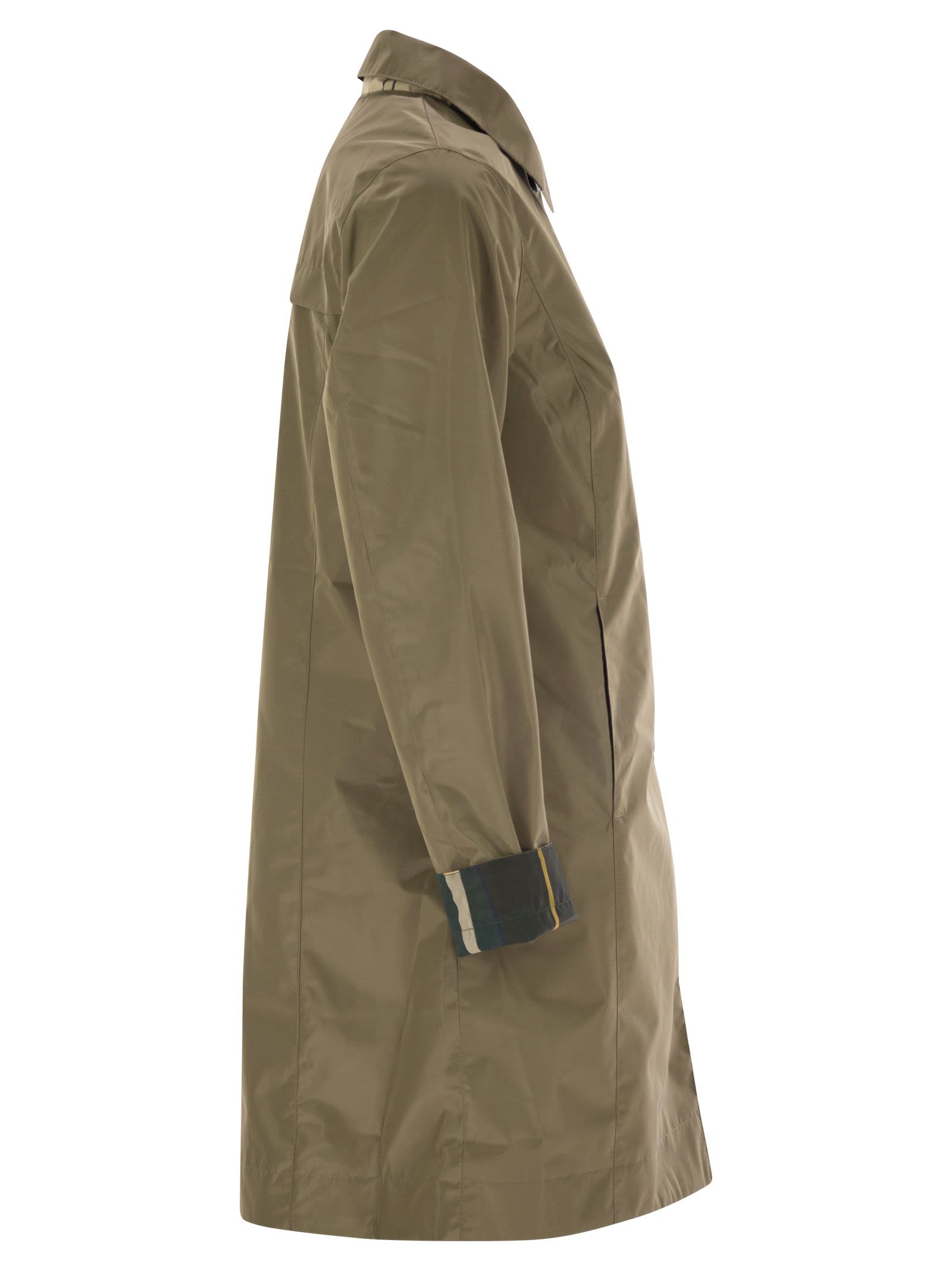 Waterproof and reversible jacket, featuring one side in solid colour with side pockets and the other side in the characteristic Scottish pattern with flap pockets. Finished with three logo buttons and embroidered logo on the left pocket. - Medium length - Regular and comfortable fit DESIGNER ID: LSP0233 LSP GN32