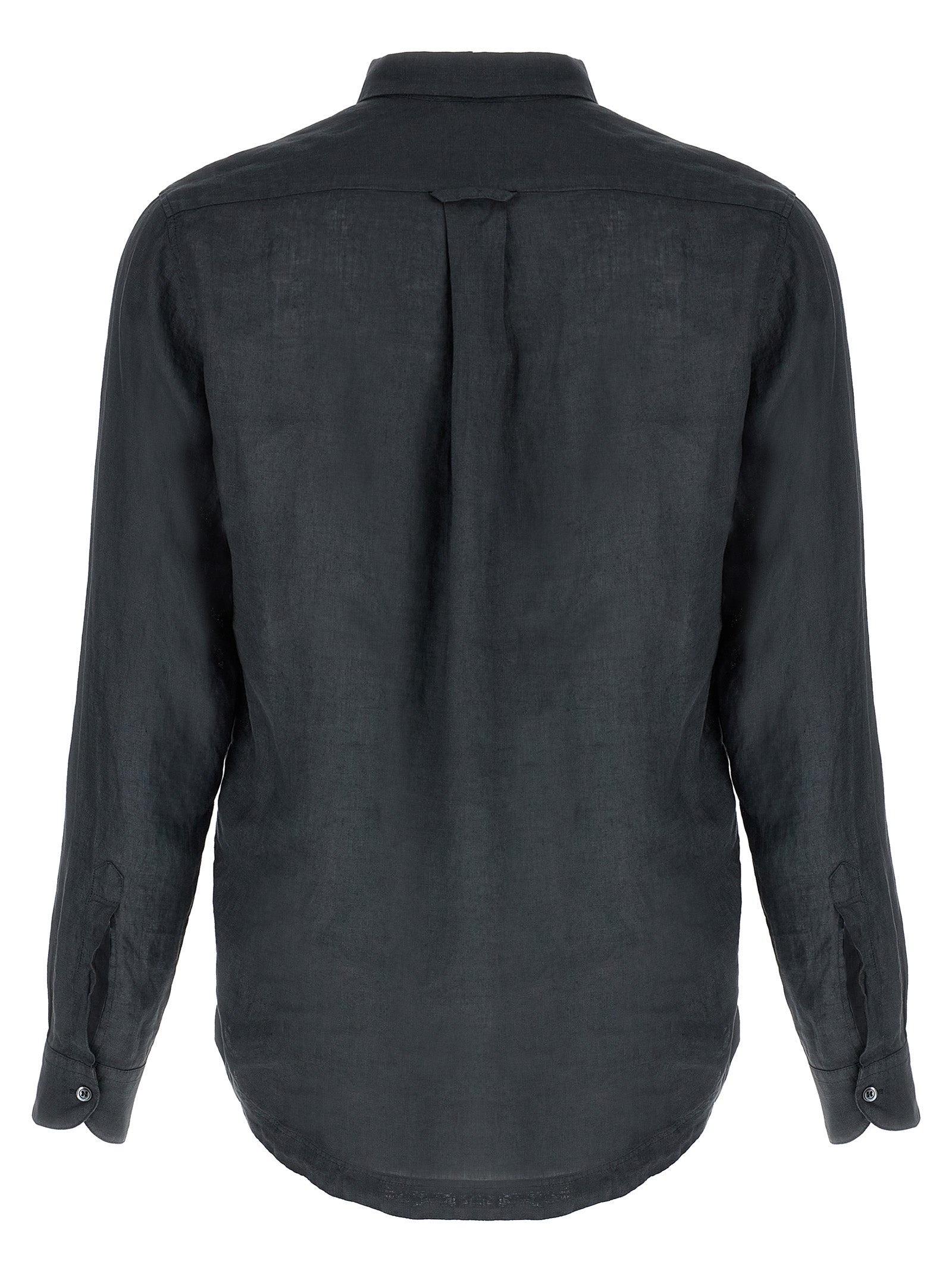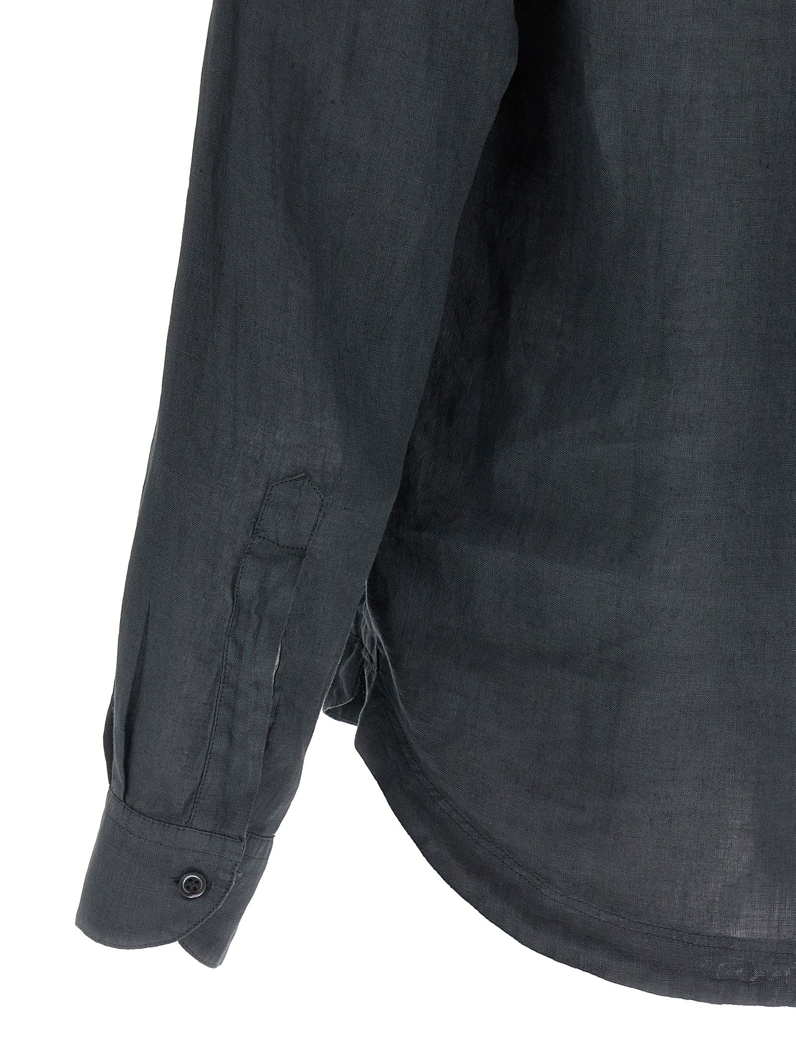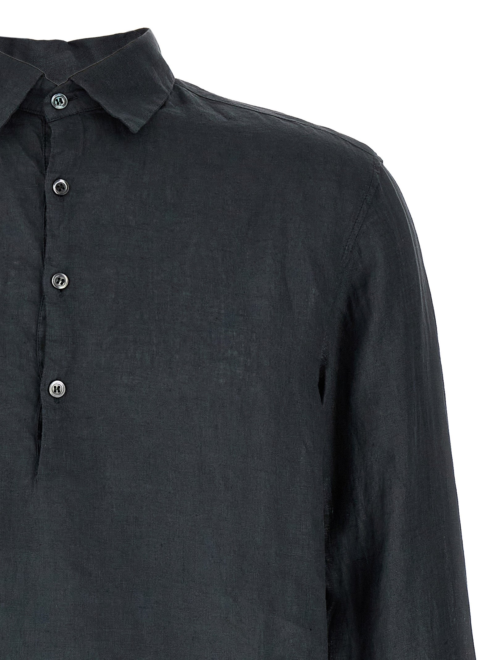 'Pavan' linen shirt, collar and buttons, long cuffed sleeves and side splits.