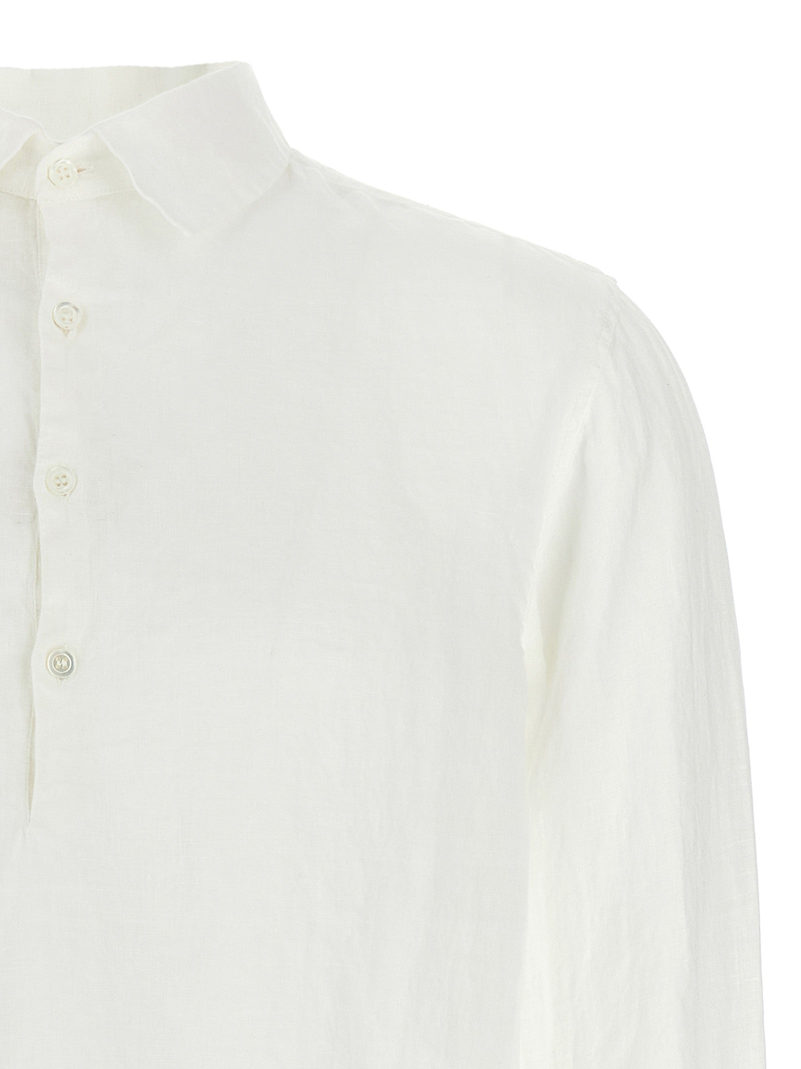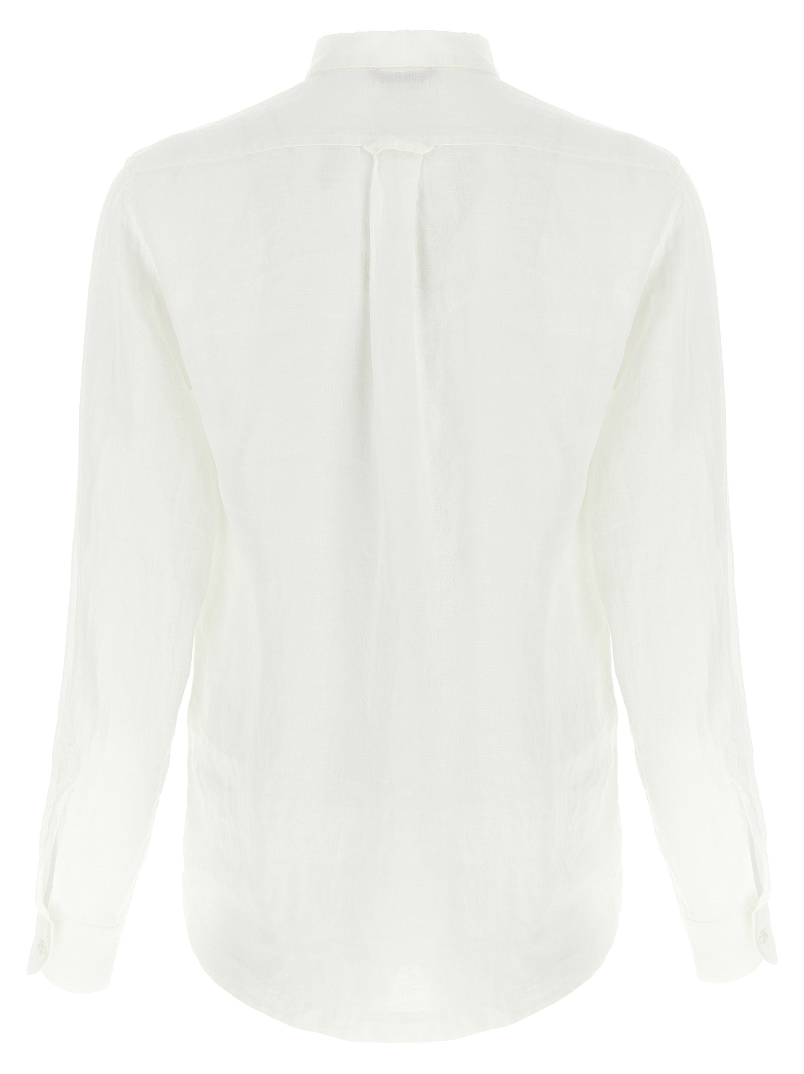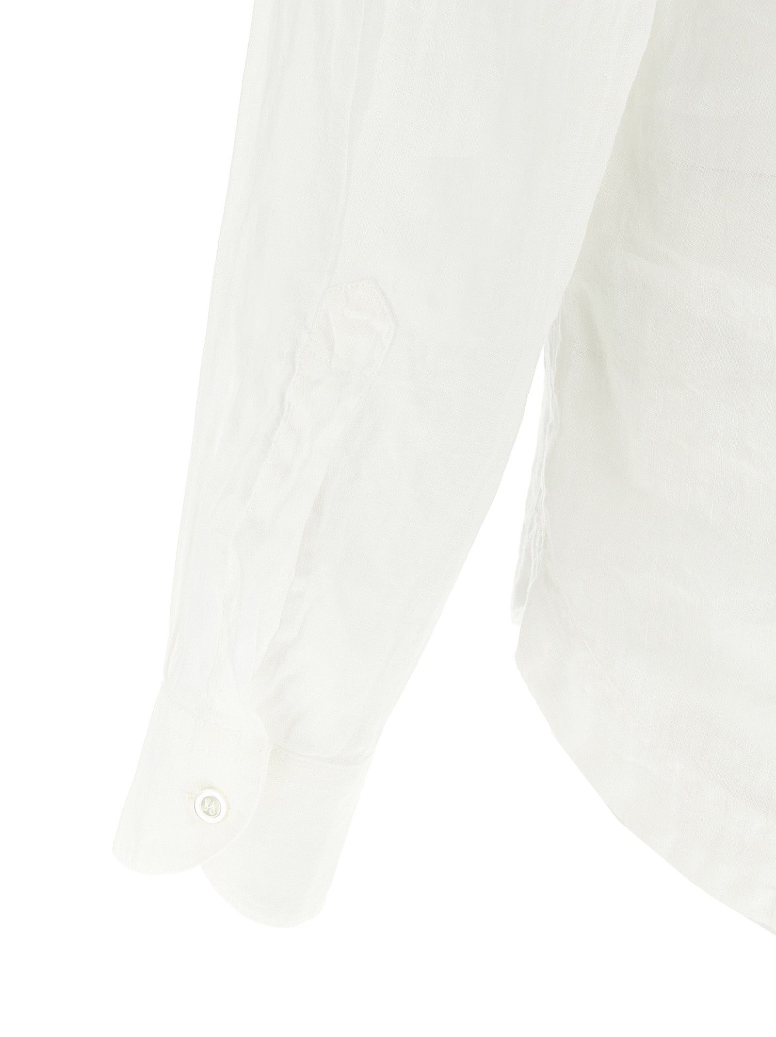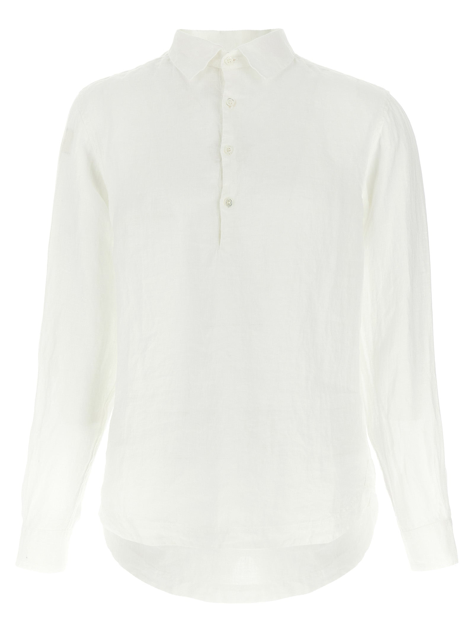 'Pavan' linen shirt, collar and buttons, long cuffed sleeves and side splits.