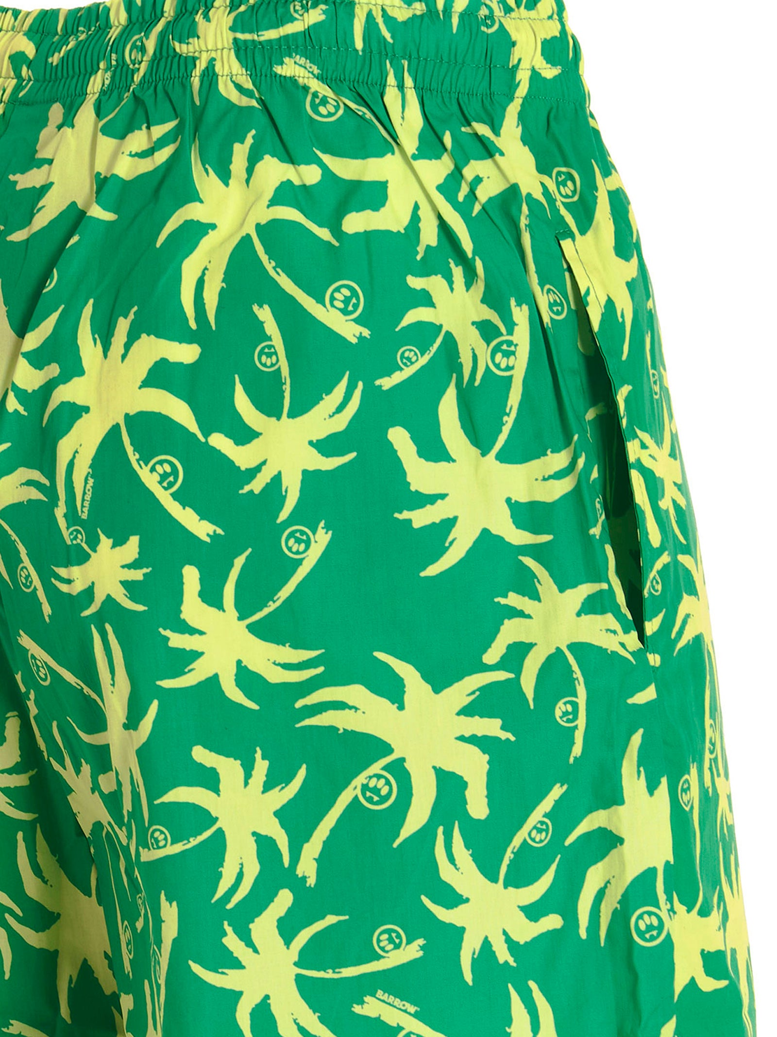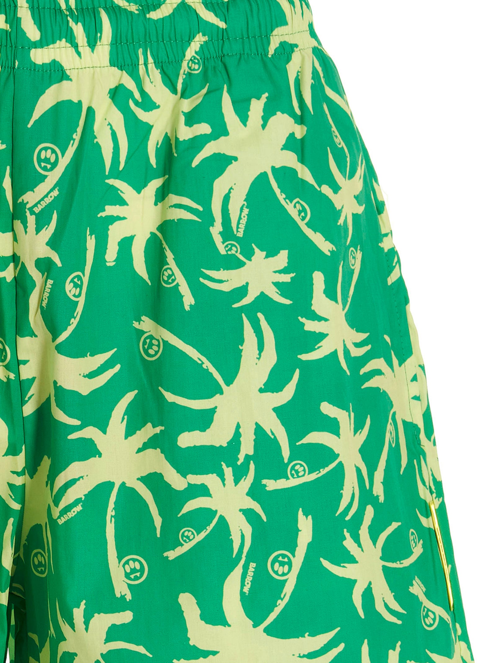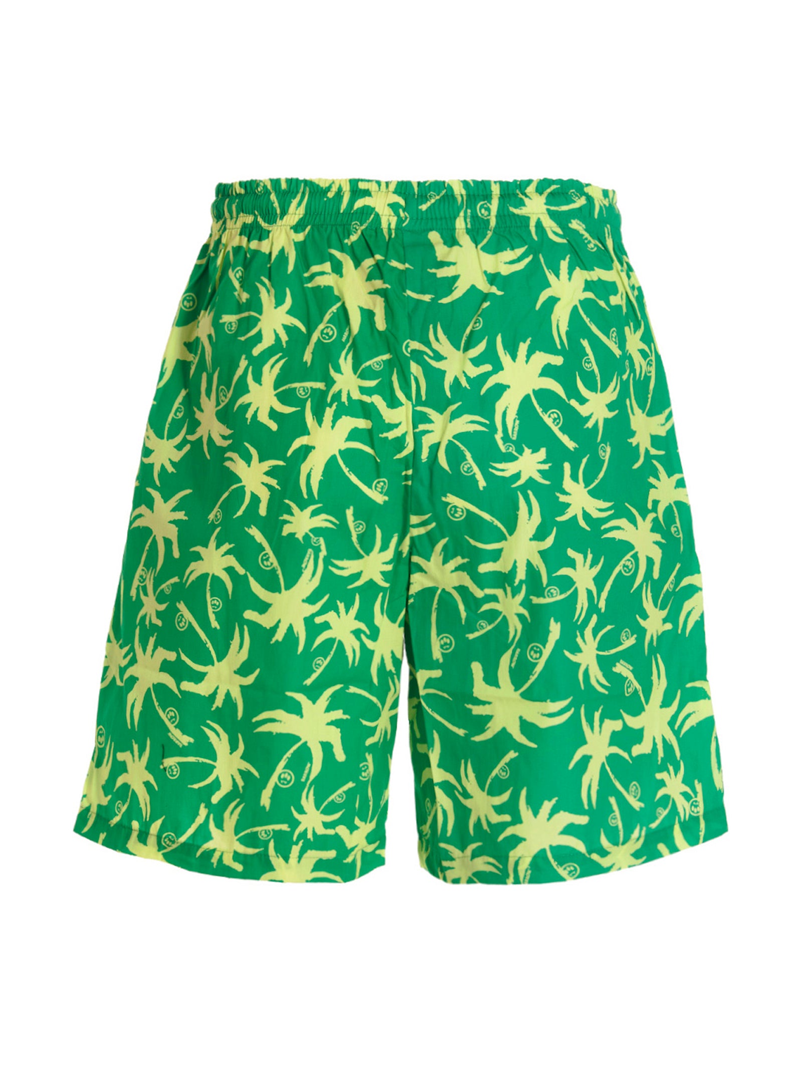 Cotton poplin bermuda shorts with all-over print, drawstring elastic waistband, pockets, front logo patch.