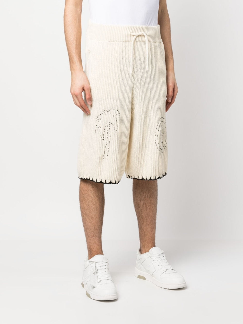 logo-embroidered cotton shorts from BARROW featuring cream white, cotton, chunky ribbed knit, contrasting trim, embroidered logo to the front, drawstring fastening waist, knee-length and straight hem.