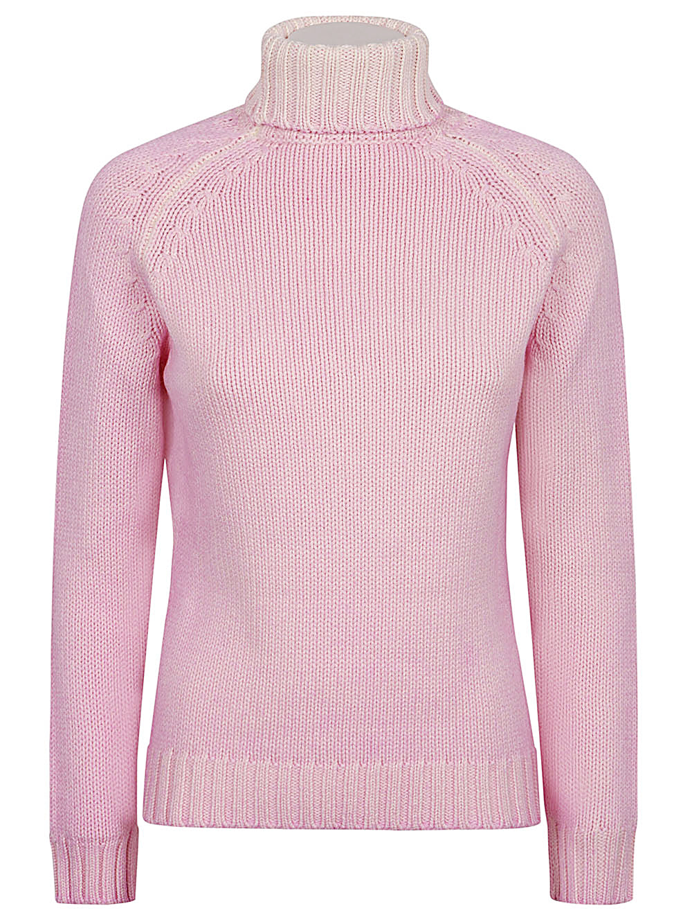 Long-sleeved sweater, turtleneck, ribbed edges and straight hem.