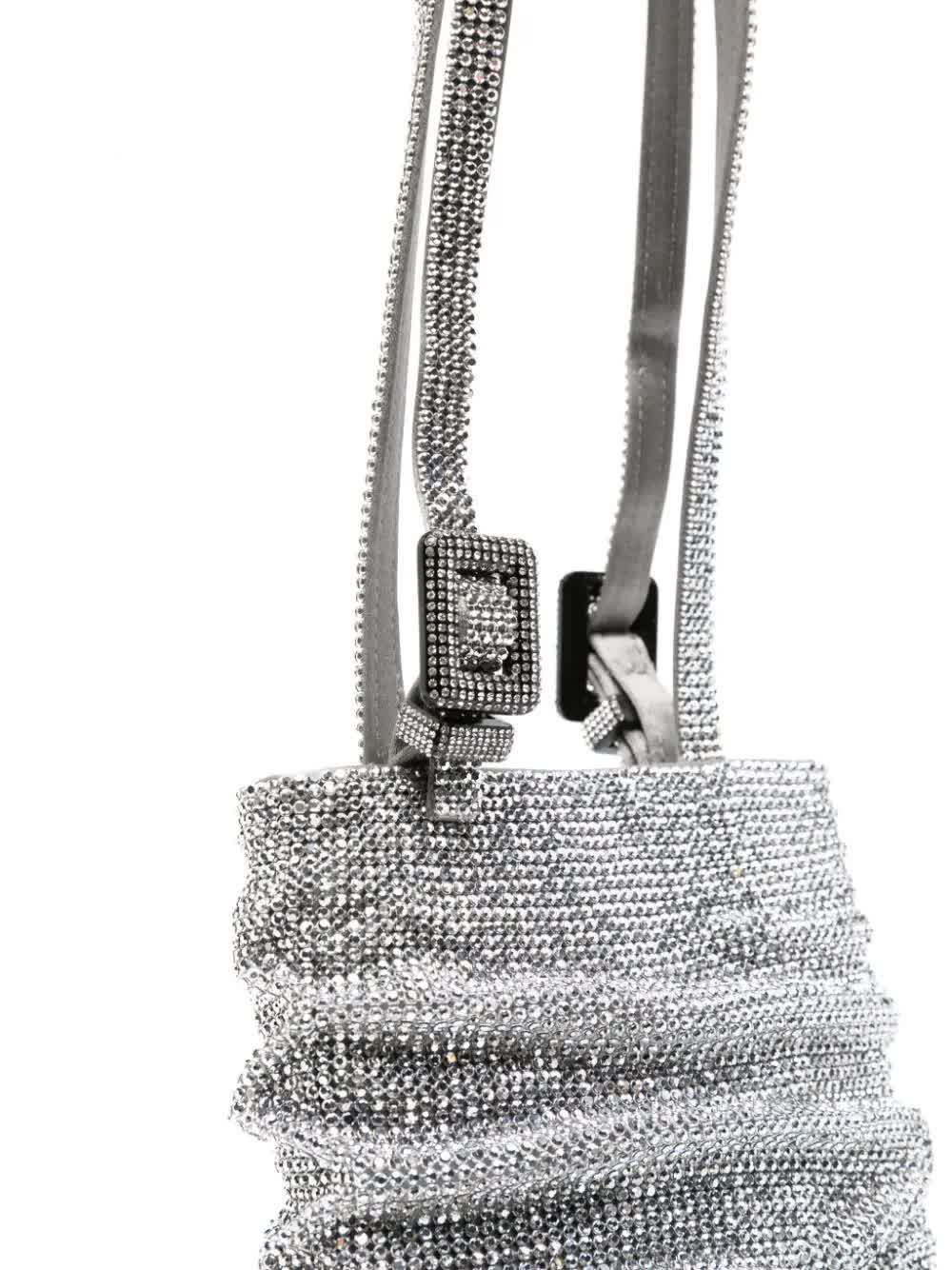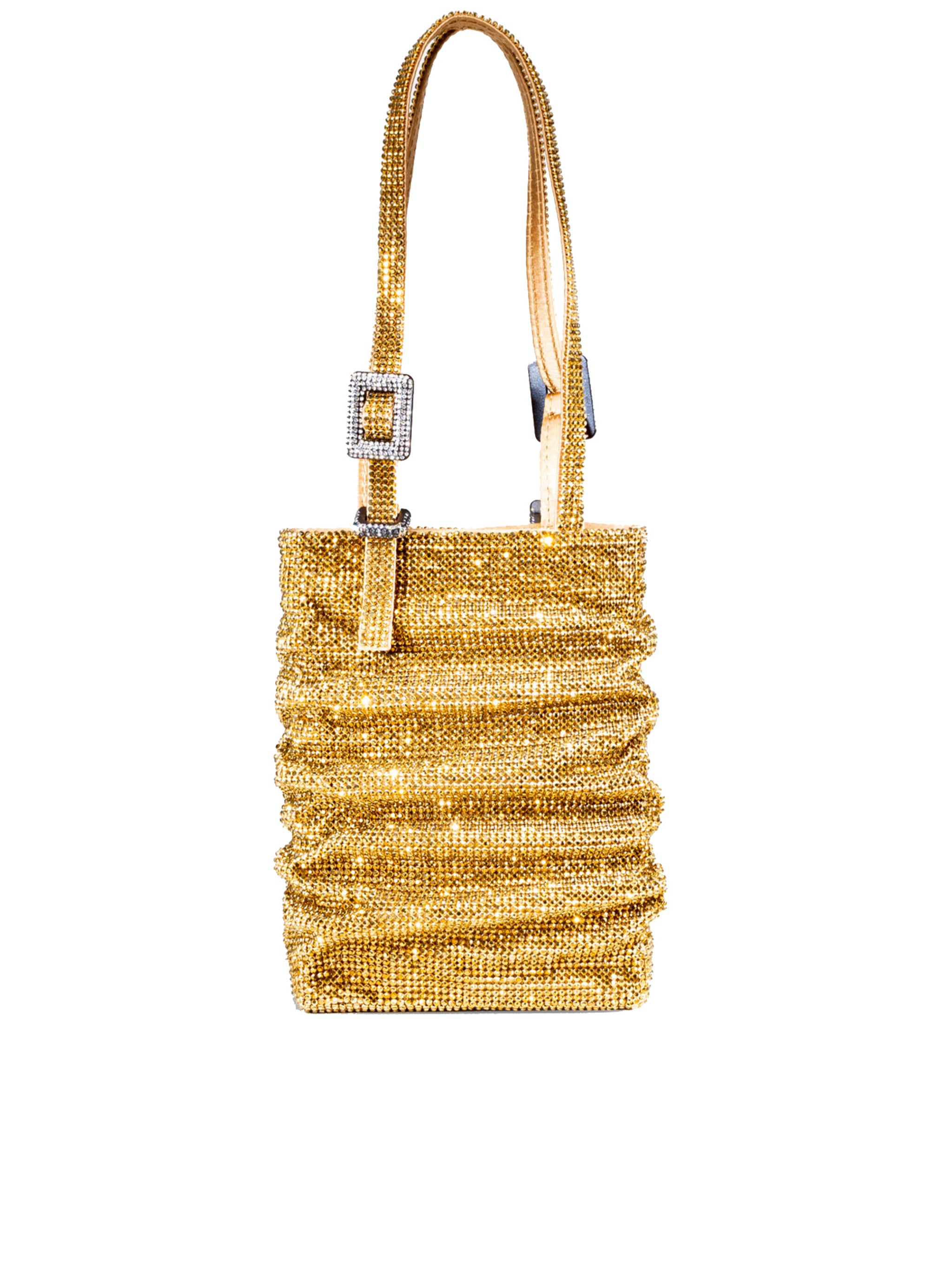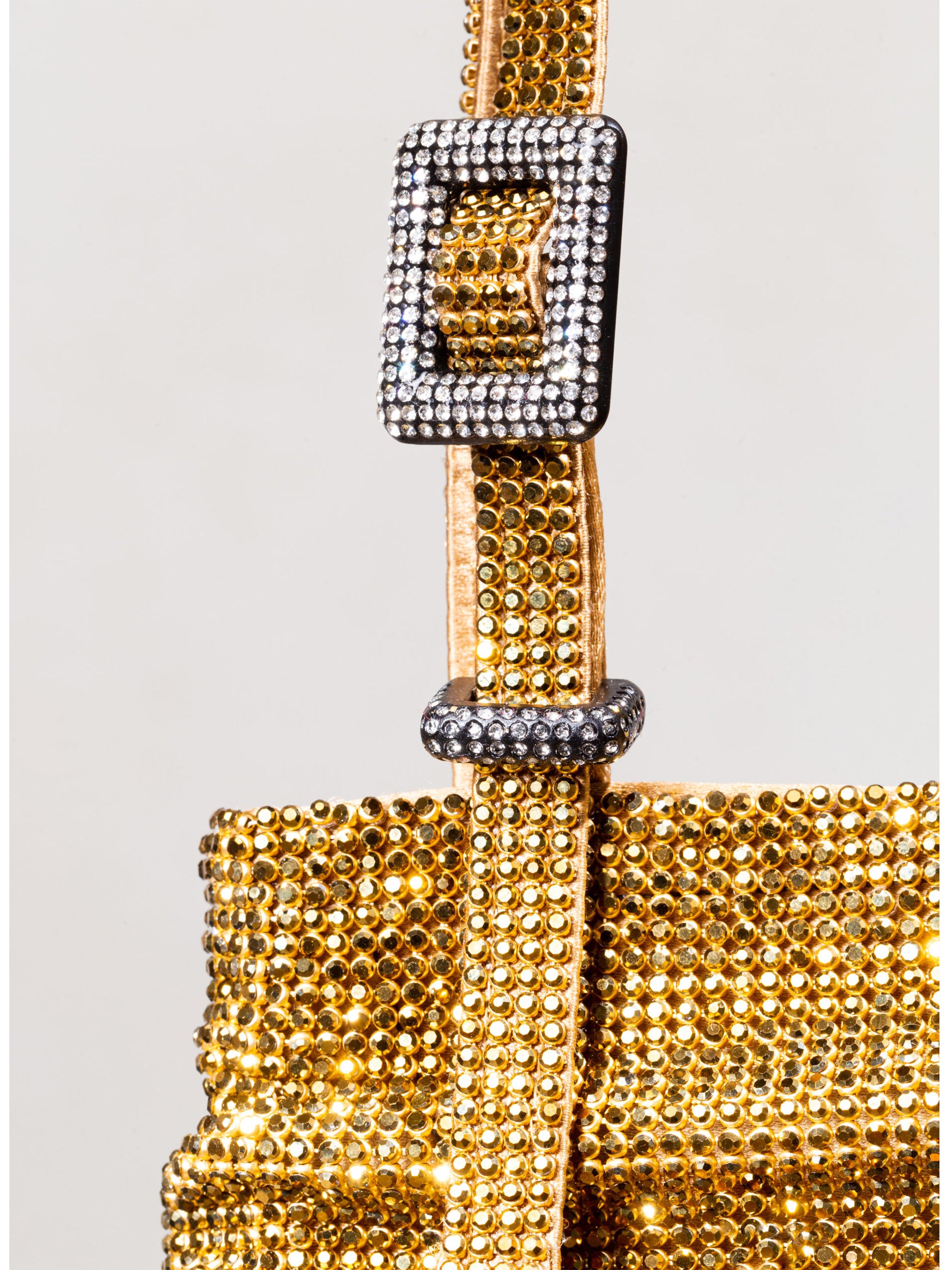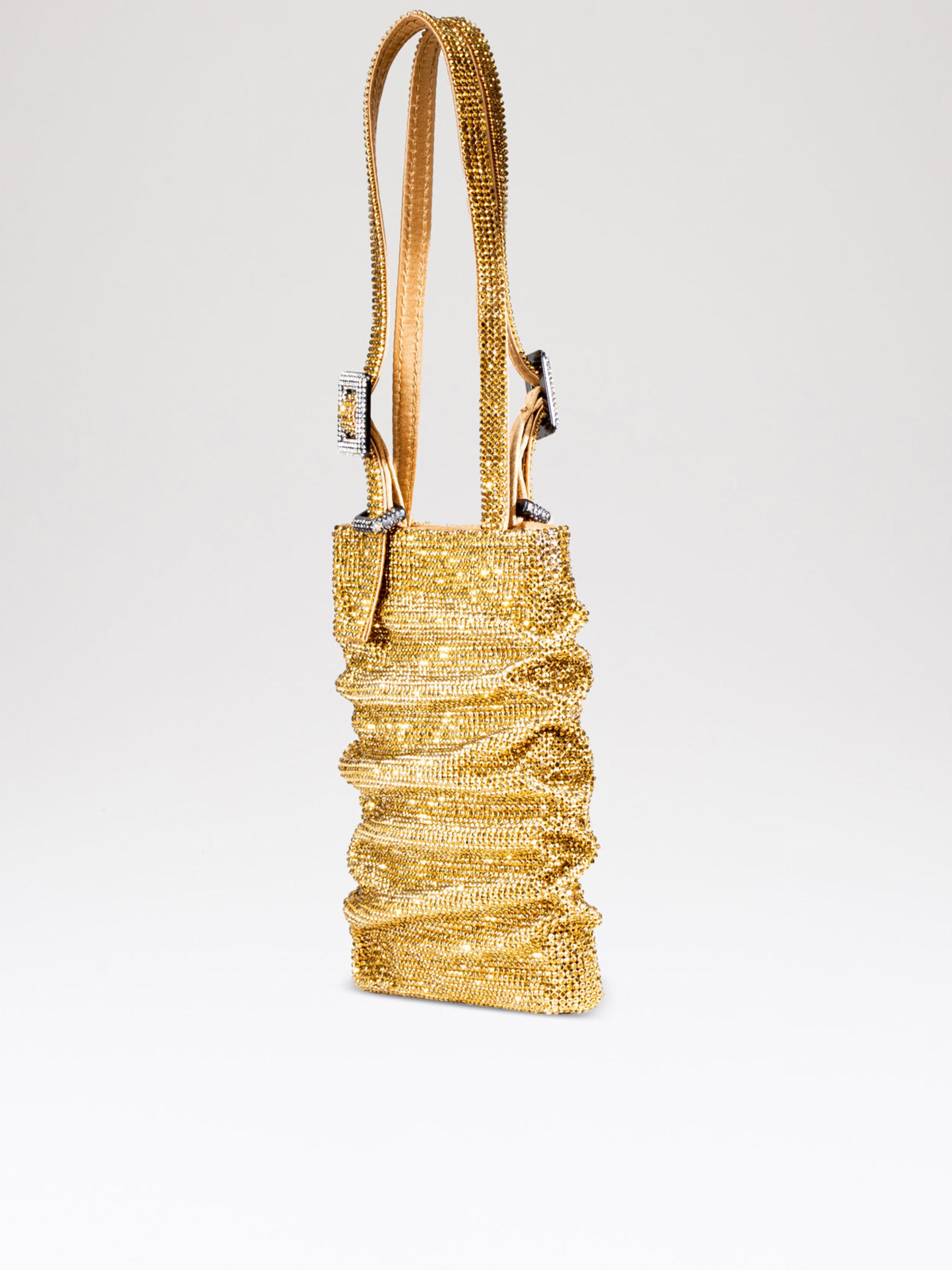 Lollo La Petite di Benedetta Bruzziches è una mini-tote glamour ispirata alla grazia senza tempo di una donna divina. Realizzata con crystal mesh scintillante e un interno in raso di seta, rappresenta un accessorio prezioso ed elegante, perfetto per aggiungere un tocco di lusso a qualsiasi look.