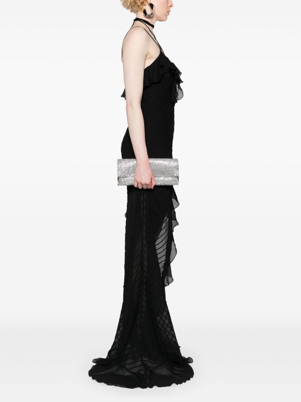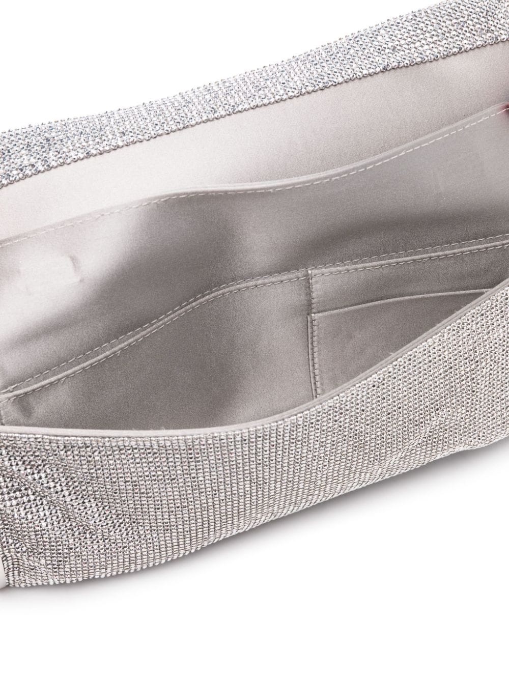 silver-tone chainmail effect rhinestone embellishment logo stamp at side foldover top with magnetic fastening chain-link shoulder strap main compartment internal slip pocket internal card slots satin lining silver-tone hardware