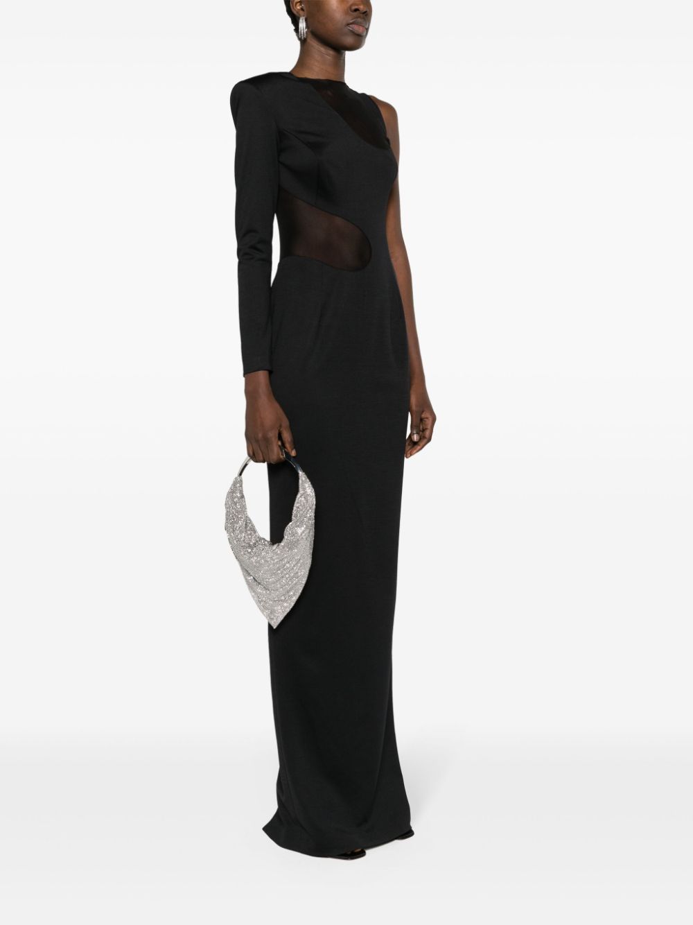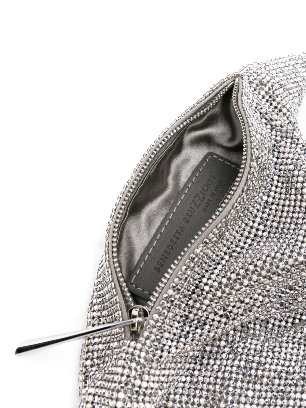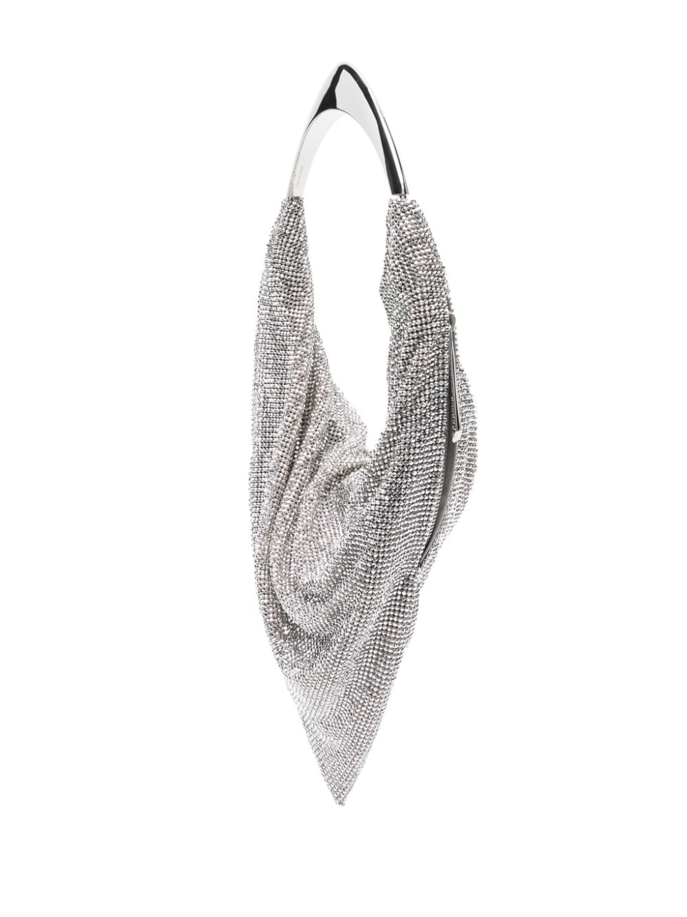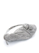 silver-tone silk rhinestone embellishment draped design side zip fastening single top handle main compartment full lining silver-tone hardware