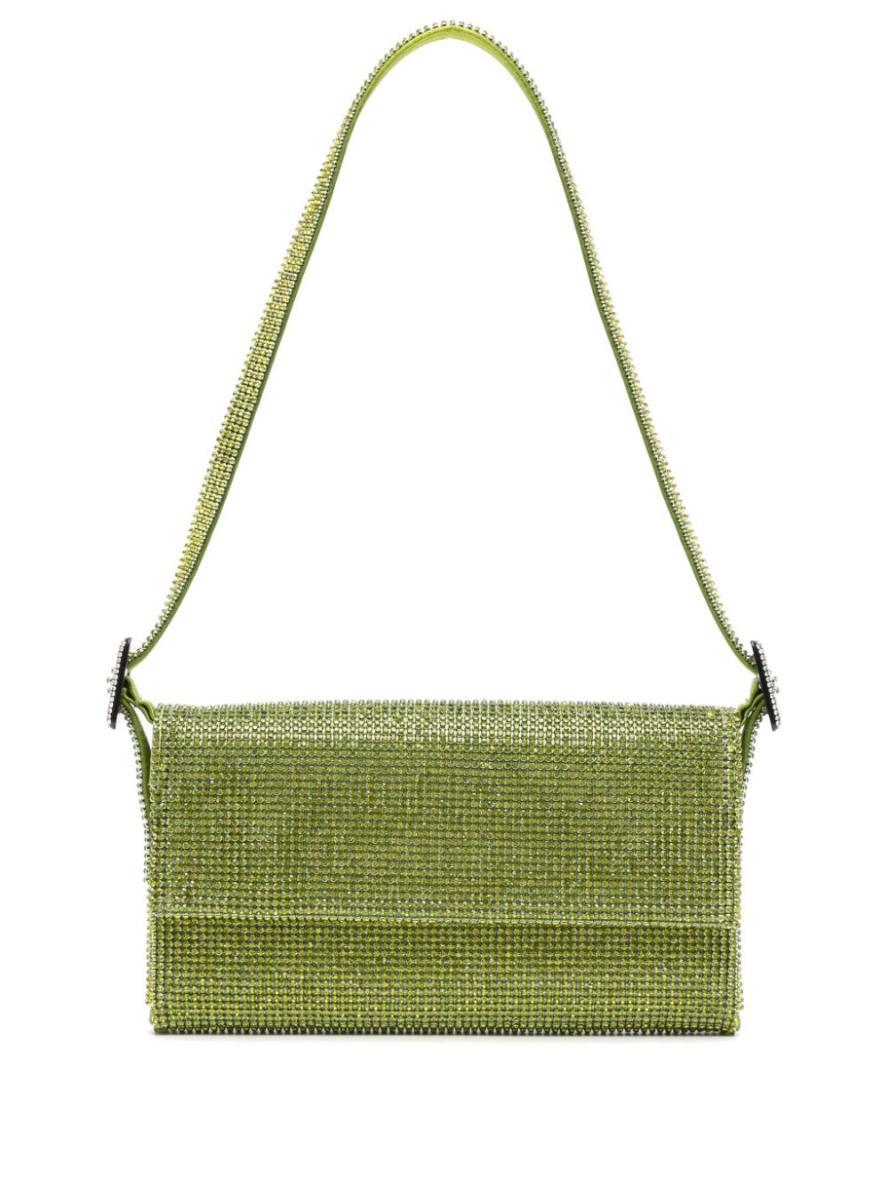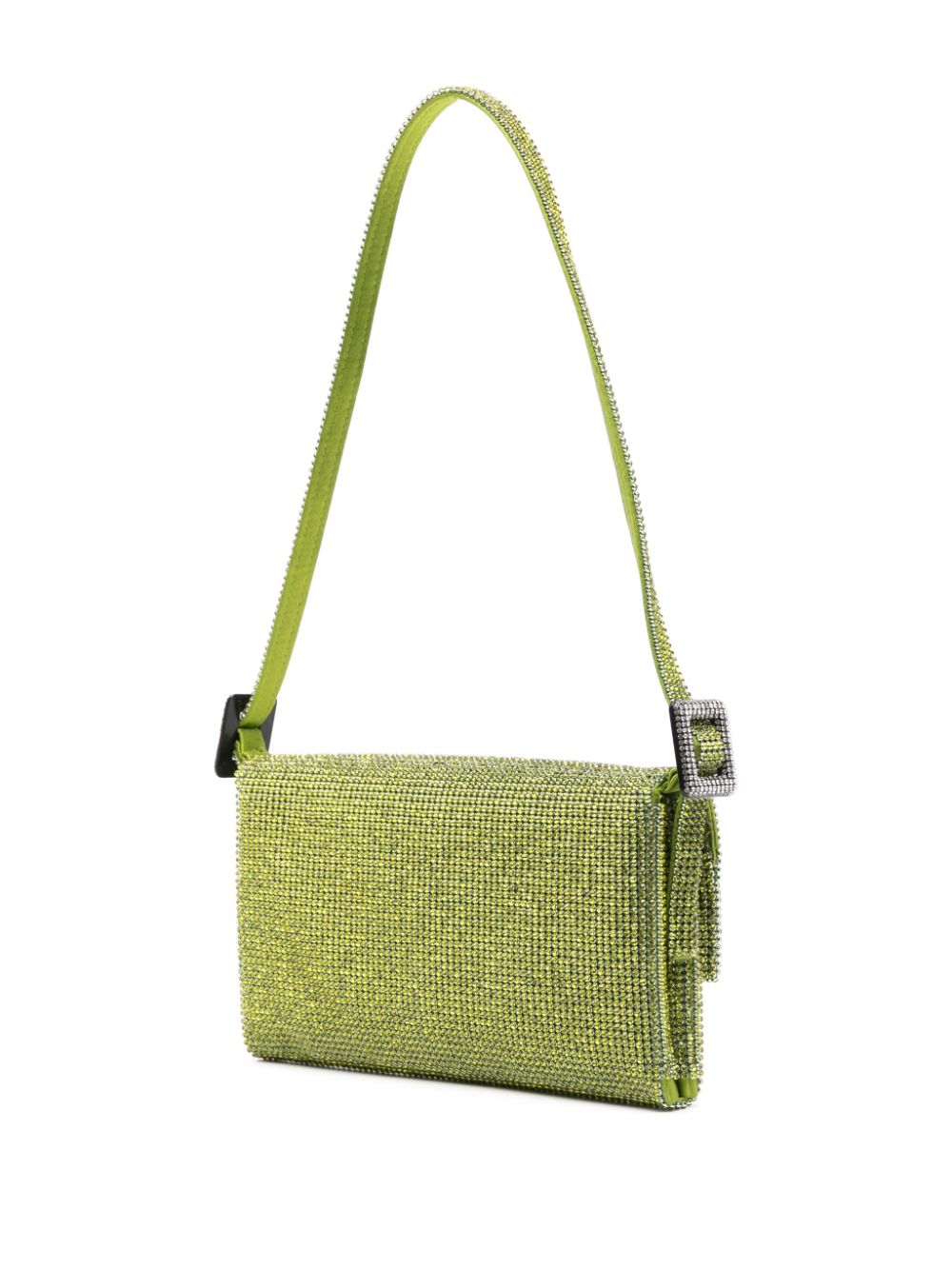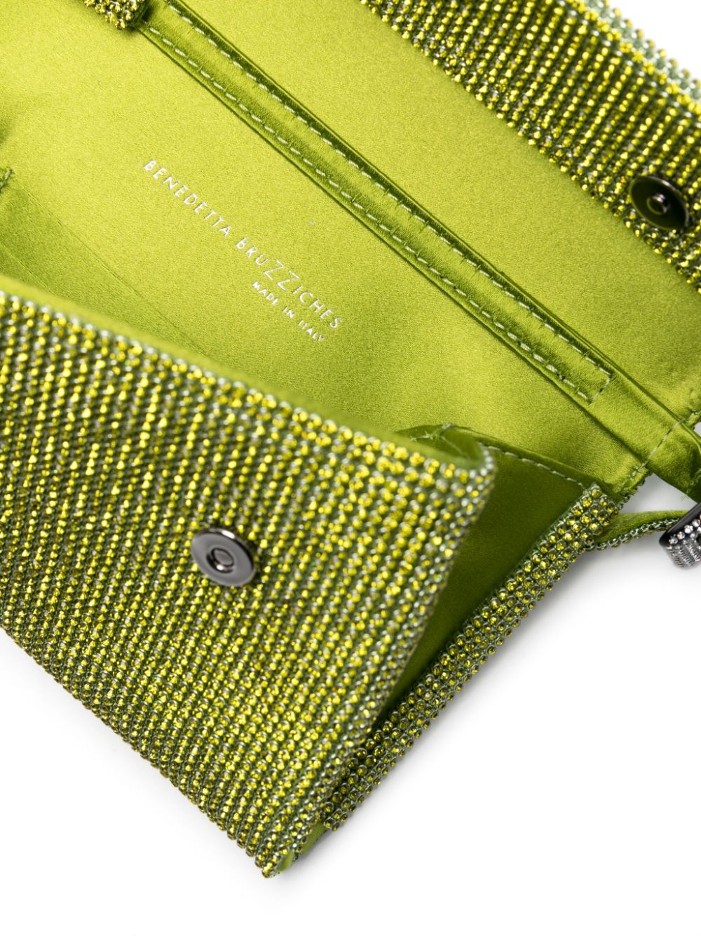 Vitty rhinestone-embellished shoulder bag from BENEDETTA BRUZZICHES featuring bright green, silk lining, rhinestone embellishment, foldover top with magnetic fastening, adjustable shoulder strap, main compartment and internal logo stamp.
