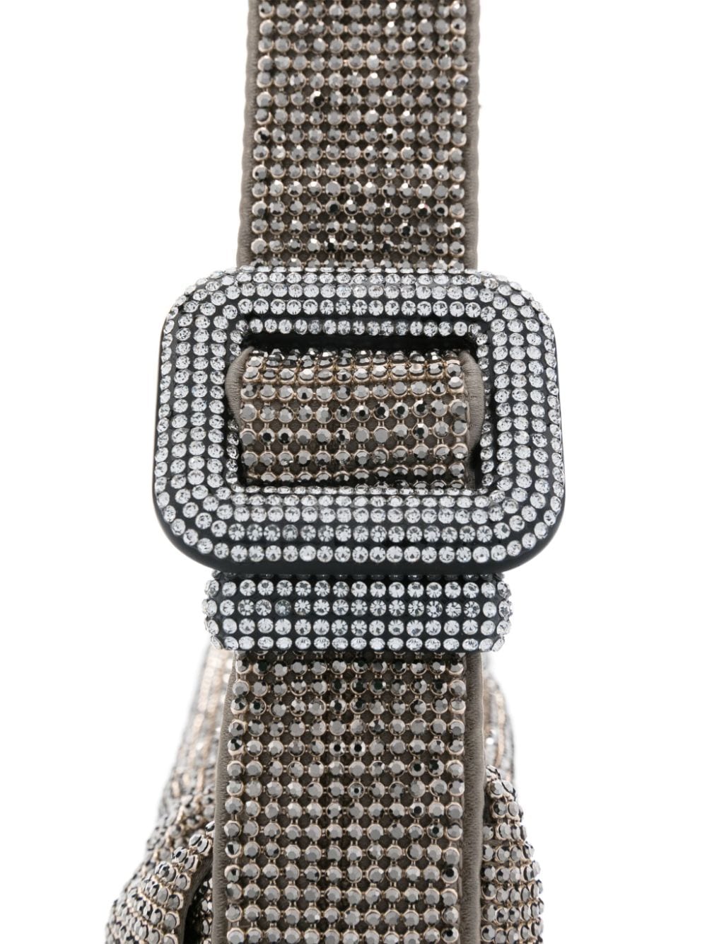 silver-tone concealed top-zip fastening adjustable top handle crystal embellishment foldover top main compartment silk lining internal logo patch