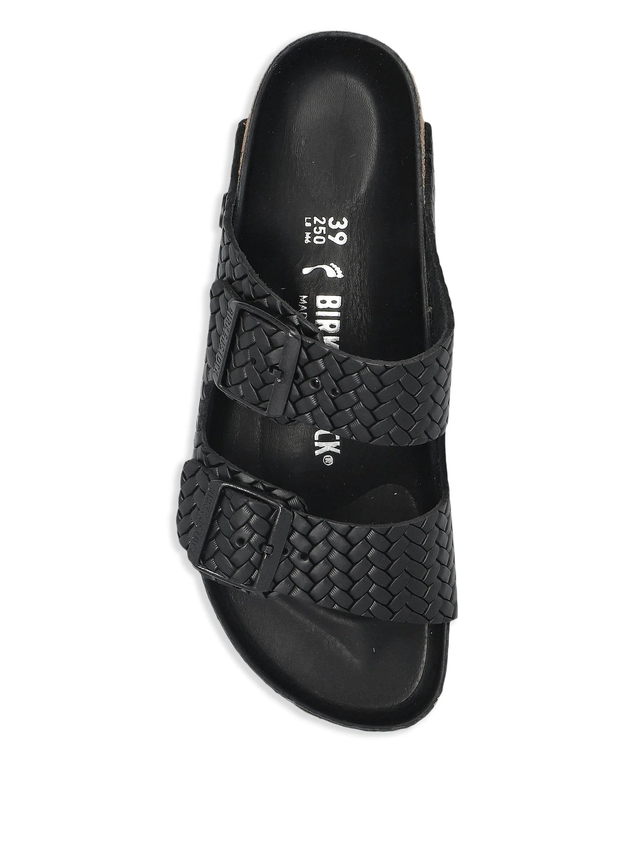 Birkenstock Arizona Black, Natural Leather Woven Emboss