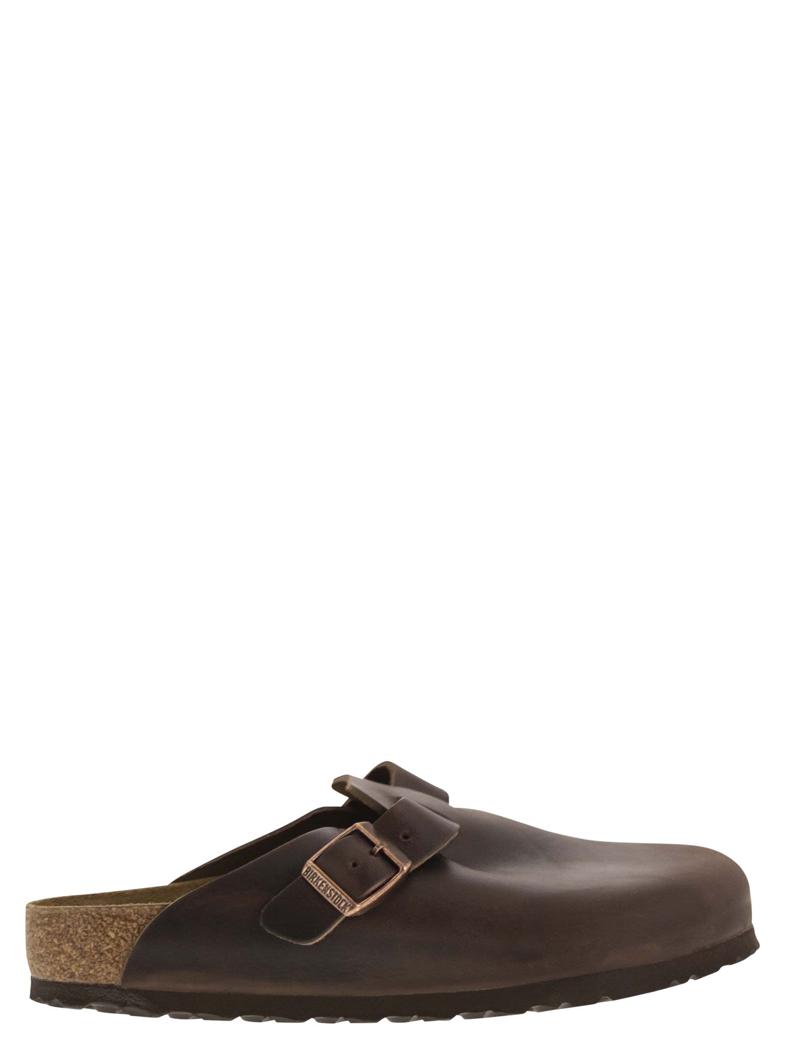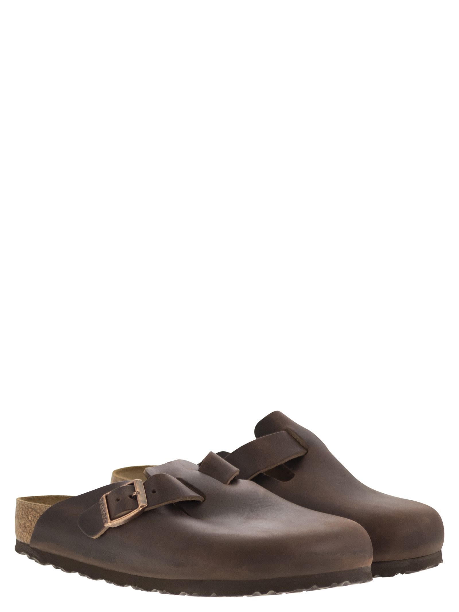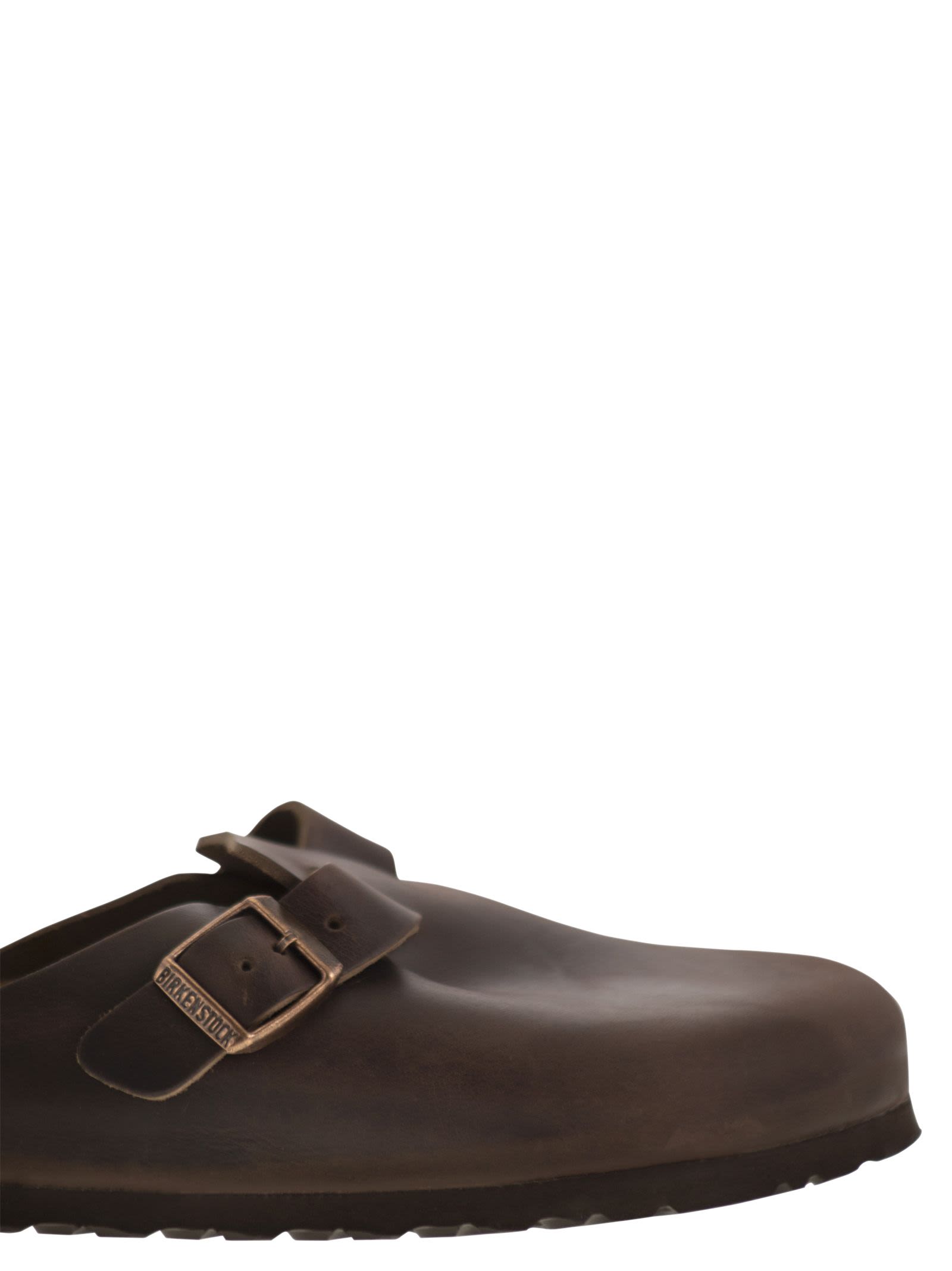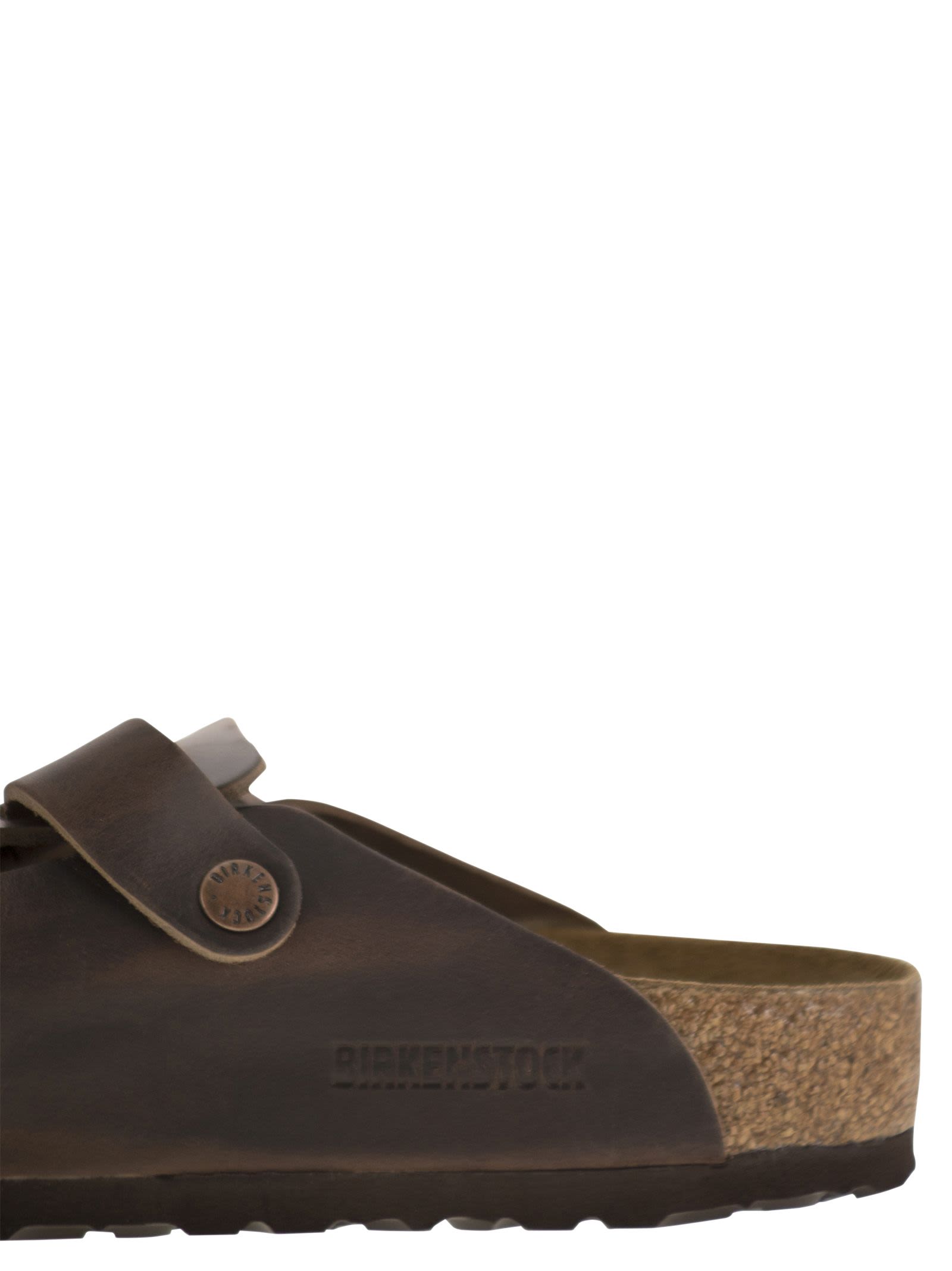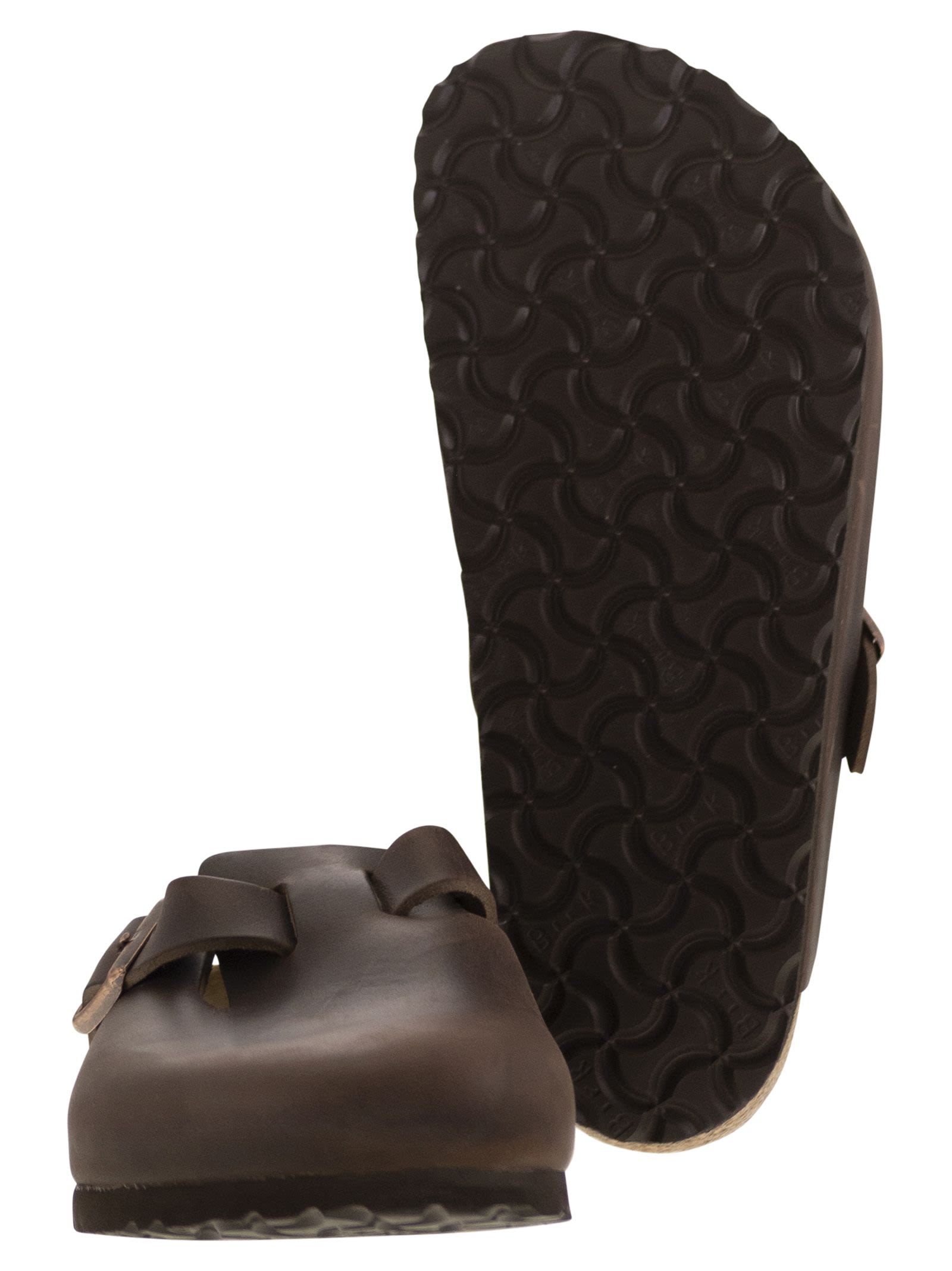 The BIRKENSTOCK Boston is a true classic that can be worn all year round without any problems. Thanks to its refined, individually adaptable design, the Boston has long since become a legend. The upper is made of particularly thick, seamless leather. - Anatomically shaped footbed made of cork and latex - Upper: leather - Insole: suede leather - Outsole: EVA - Details: a strap with an individually adjustable metal buckle - Narrow fit DESIGNER ID: 159711