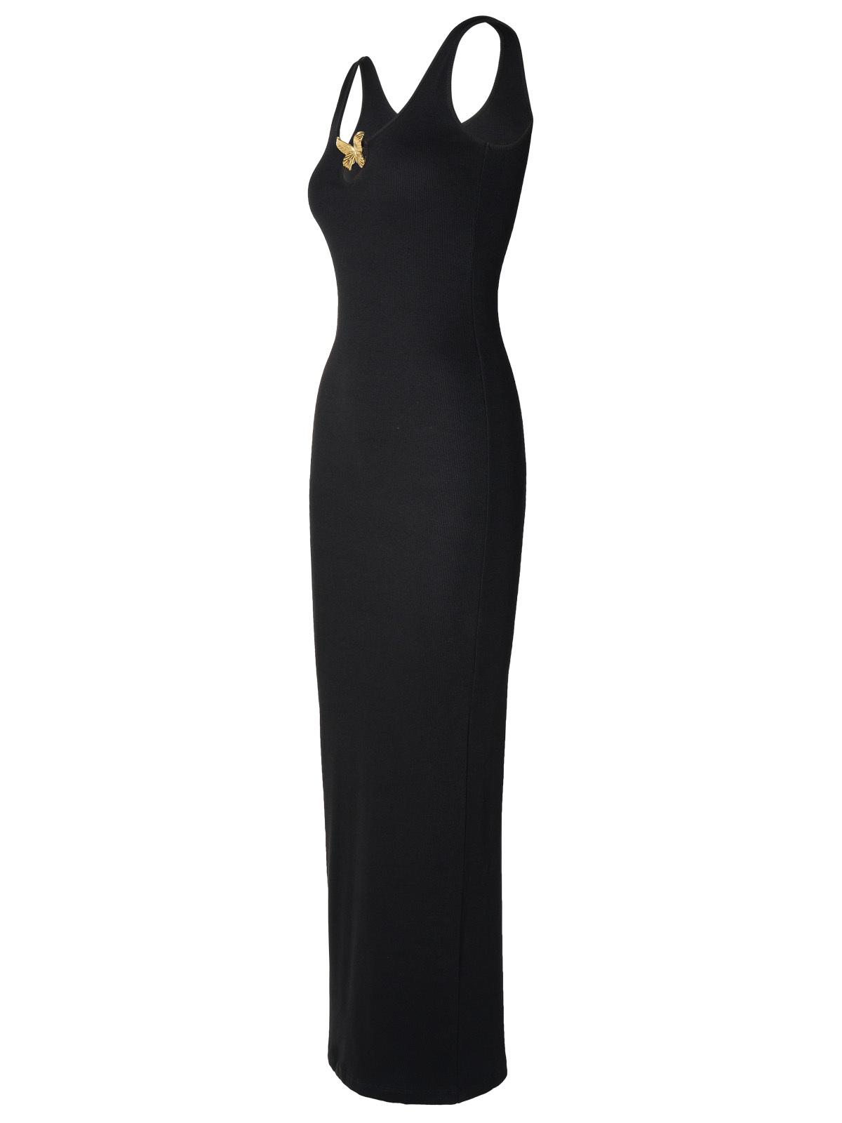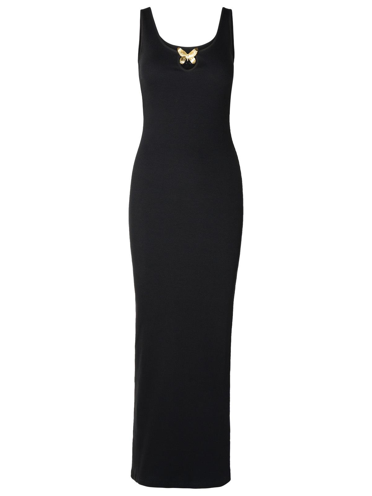 Black ribbed cotton, ribbed wide neck, metal butterfly detail on the chest, ribbed trims.