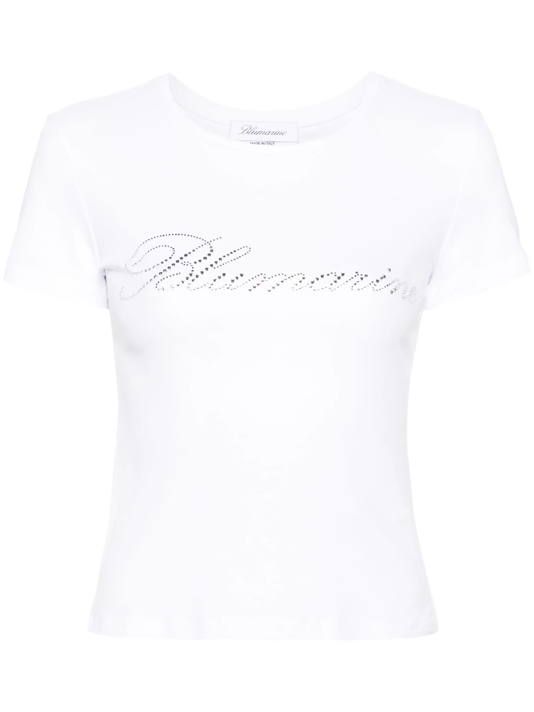 Blumarine presents this t-shirt with rhinestone logo embroidery.