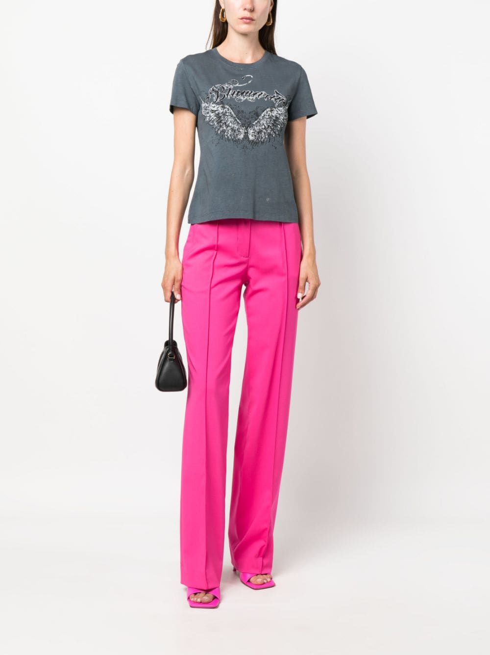 logo-print cotton T-shirt from BLUMARINE featuring black, cotton, washed, logo print to the front, graphic print to the front, crew neck, short sleeves and straight hem.