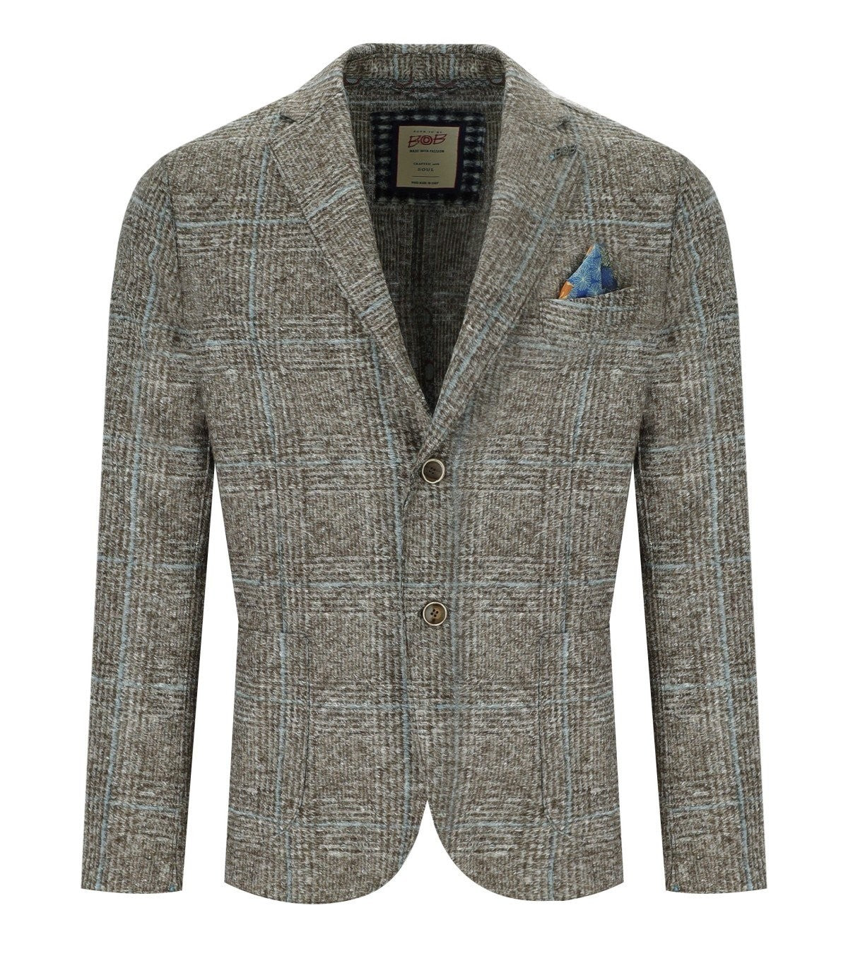 Bob Dover Check Beige Light Blue Single Breasted Jacket