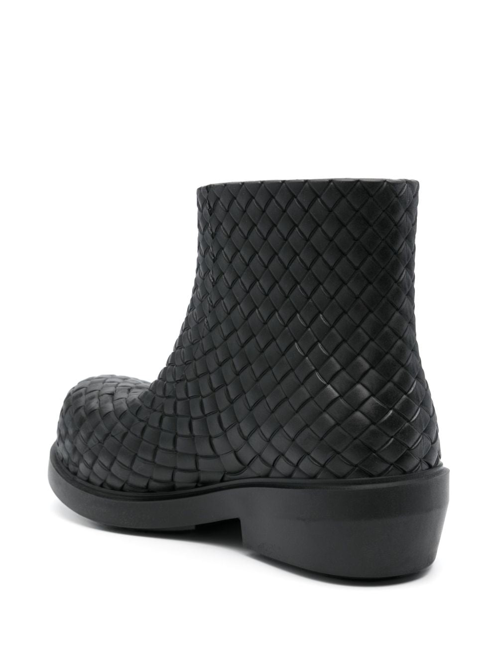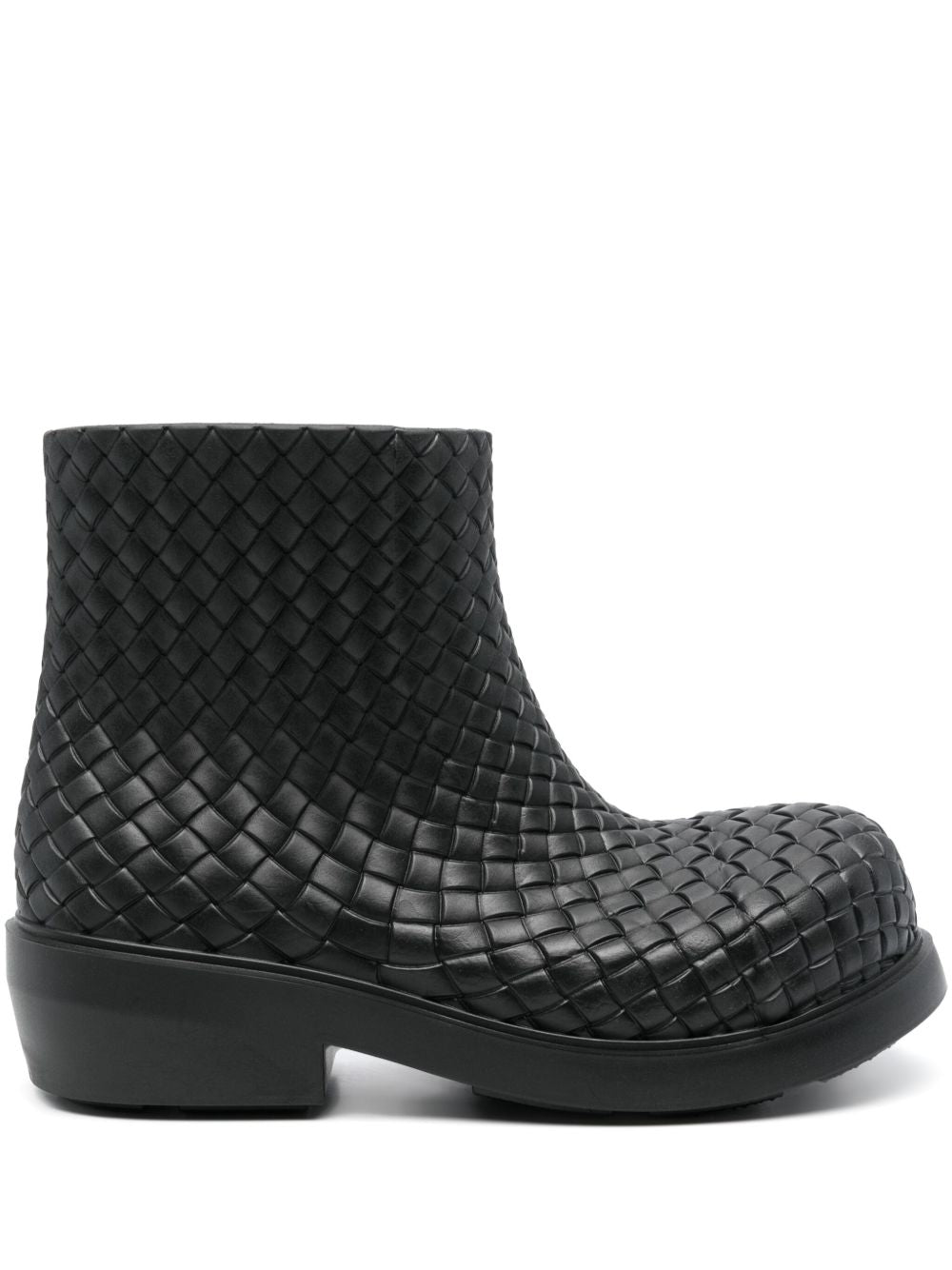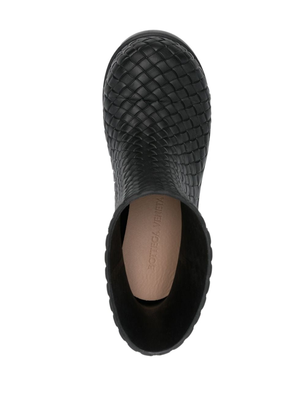 black signature Intrecciato design asymmetric toe ankle-length removable insole low block heel rubber lug sole slip-on style This piece comes complete with a protective dust bag.