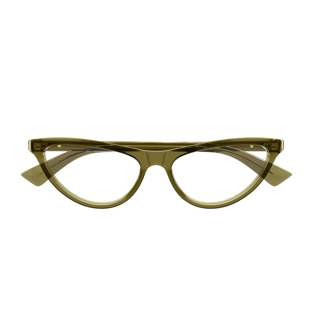 Let yourself be captivated by the refined charm and timeless elegance of the BV1416O optical model by Bottega Veneta. Inspired by the sophisticated aesthetics of the 1970s, these glasses reinterpret discreet and refined elegance with a contemporary twist.The lightweight and harmonious acetate frame stands out for its delicate transparent green hue and feminine cat-eye silhouette. The thin, elongated temples, with their clean and minimal profile, are adorned with the distinctive Ribbon motif featuring a double metal stripe — an iconic detail that perfectly embodies the unmistakable Bottega Veneta style.