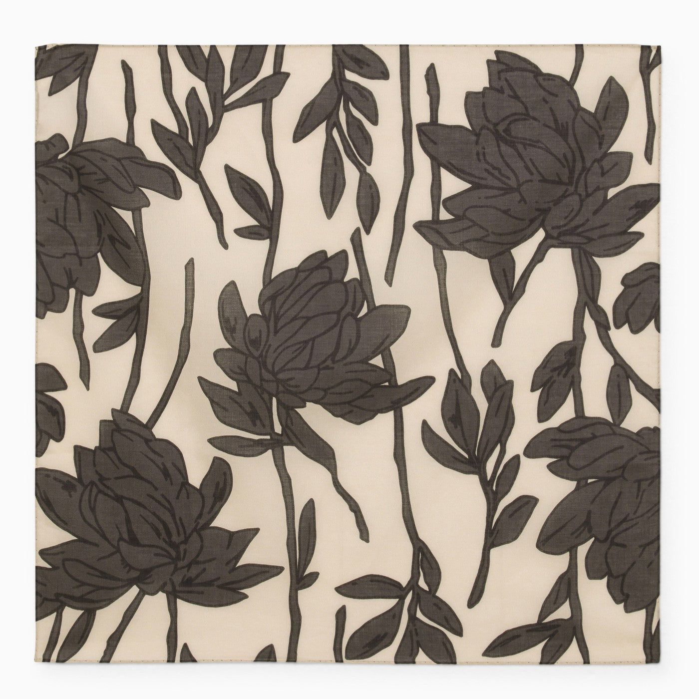 Beige cotton scarf by Brunello Cucinelli featuring an all over floral pattern.