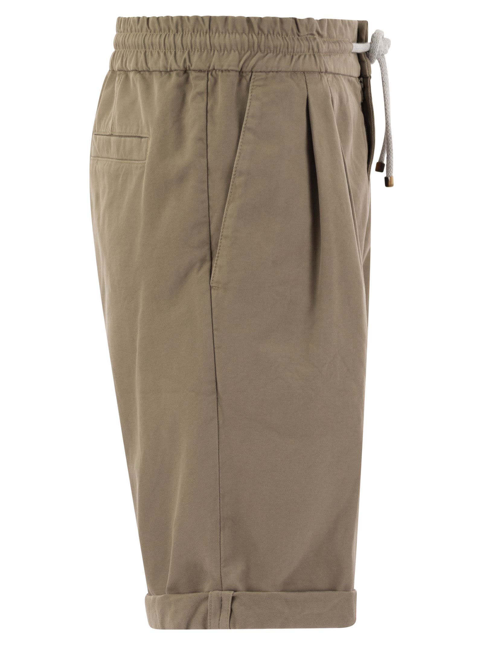 Brunello Cucinelli Bermuda Shorts In Garment Dyed Cotton Gabardine With Drawstring And Double Darts