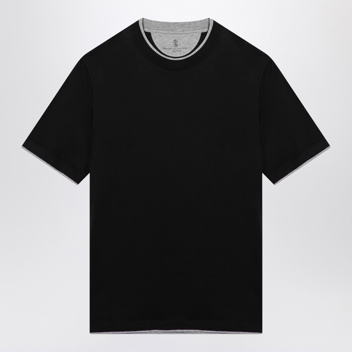 Brunello Cucinelli Black Cotton T Shirt With Faux Layering