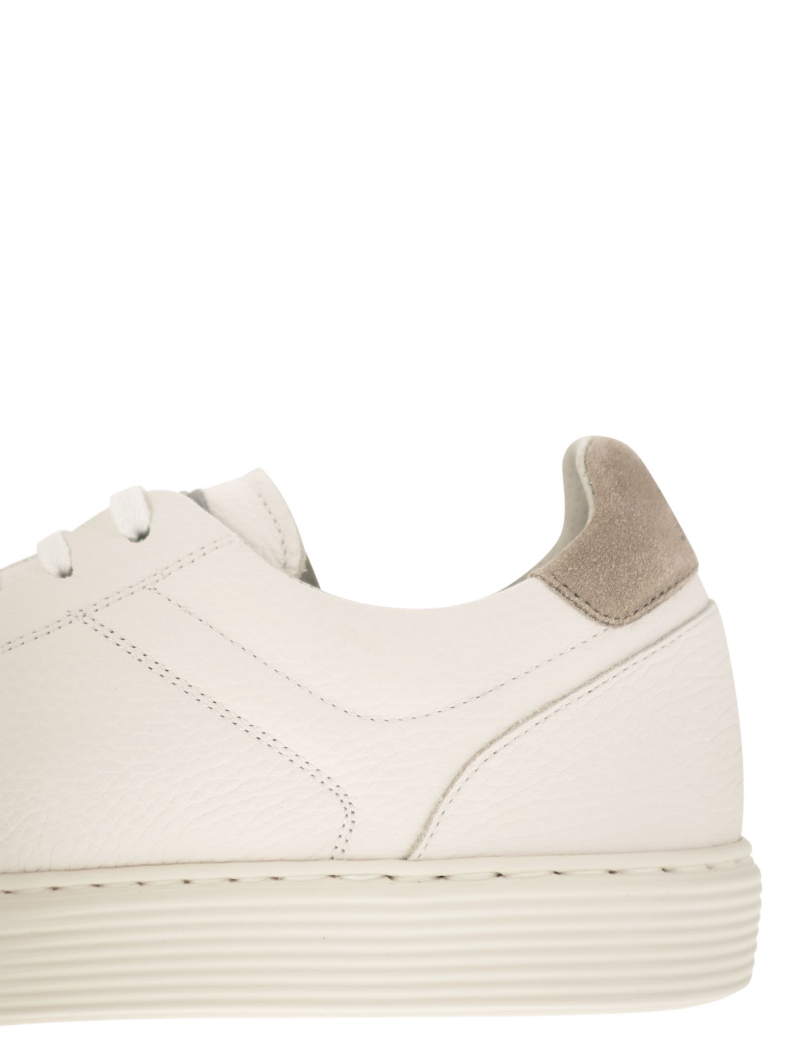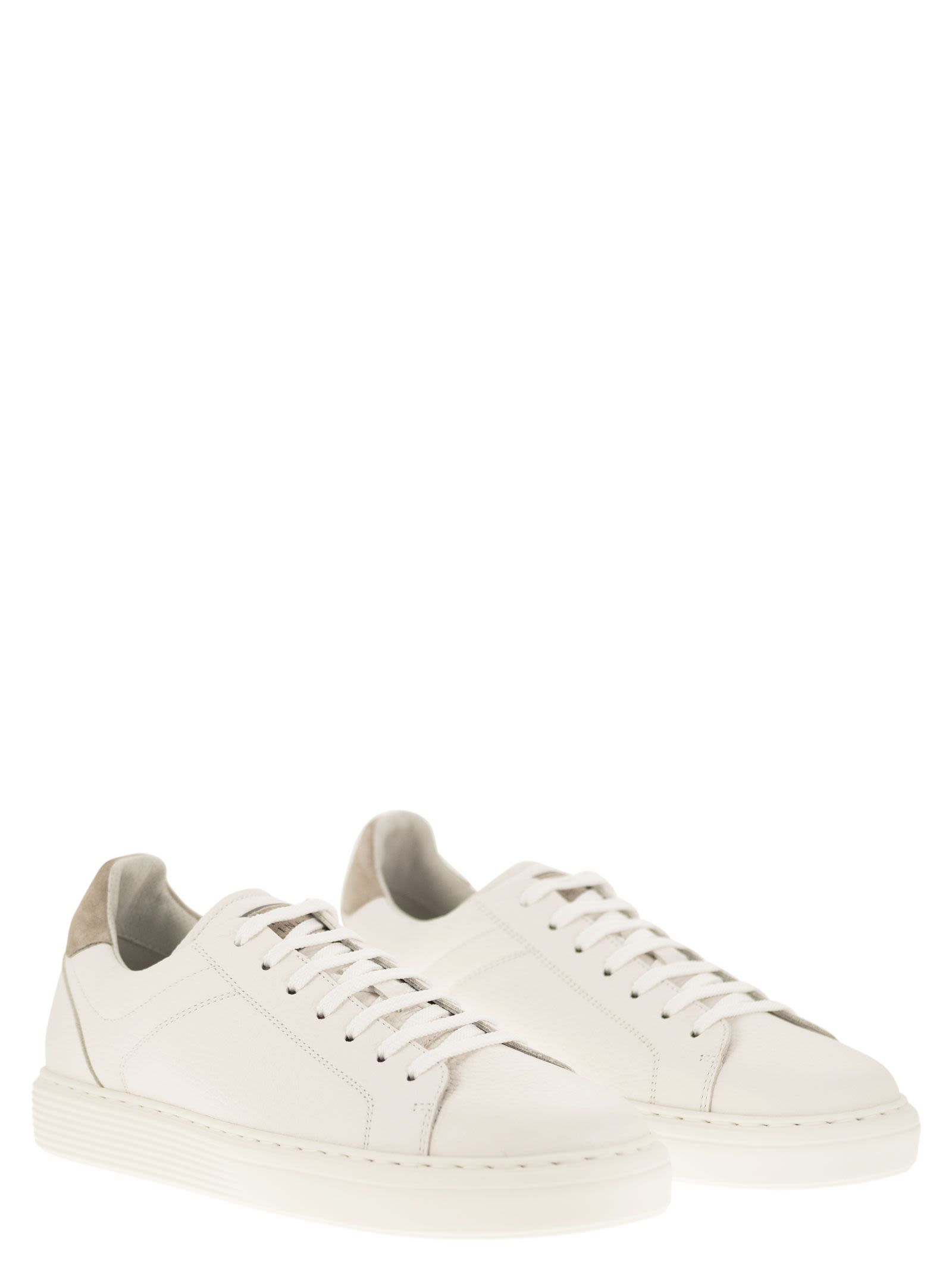 In this model, skilful craftsmanship enriches the natural grain of the calfskin. The leather lining and lightweight EVA sole with customised Brunello Cucinelli design accentuate the comfort and add a touch of style. Thanks to high-quality materials and contemporary shapes, the trainers and runners become versatile accessories that can be combined with both sophisticated and casual outfits. The lightweight soles guarantee all-day comfort. DESIGNER ID: MZUASBJ264 CE280