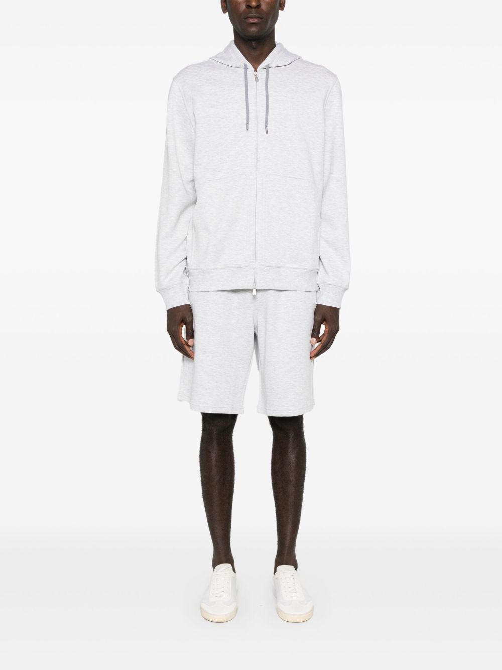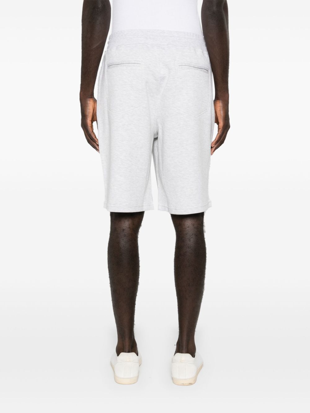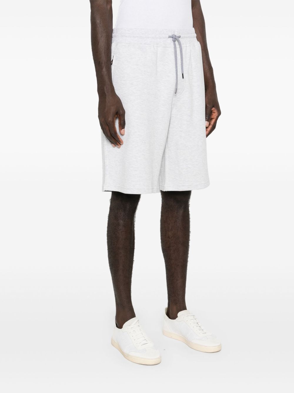 light grey cotton blend jersey texture mélange effect two side zip-fastening pockets knee-length two rear jetted pockets elasticated drawstring waistband