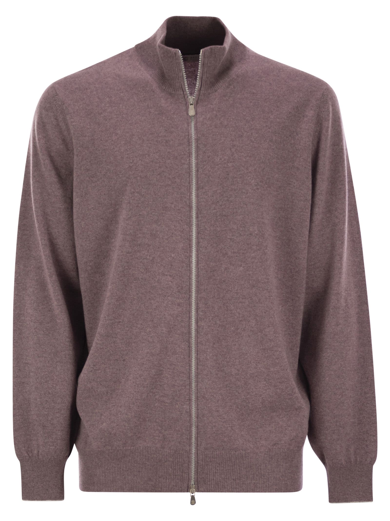 An essential item in a man's wardrobe, the pure cashmere cardigan is ideal to enrich every outfit with a casual yet elegant style. The contrasting inserts on the cuff profiles add a sophisticated touch to the classic volumes of the garment. The cardigan offers a regular fit. - Zip and double-slider closure - High collar in ribbed knit - Rib knit cuffs and hem - Shaved knit DESIGNER ID: M2200106 CNW84