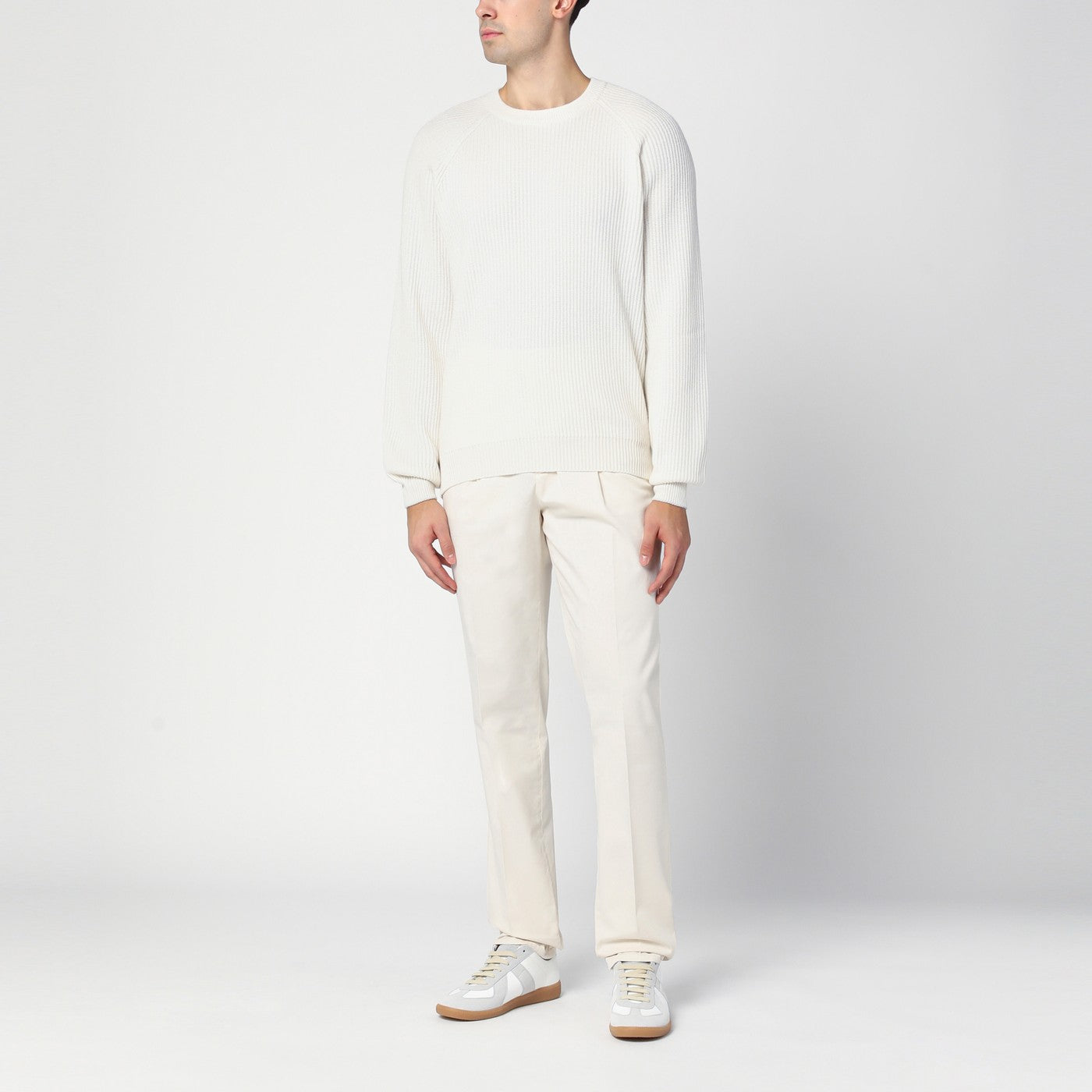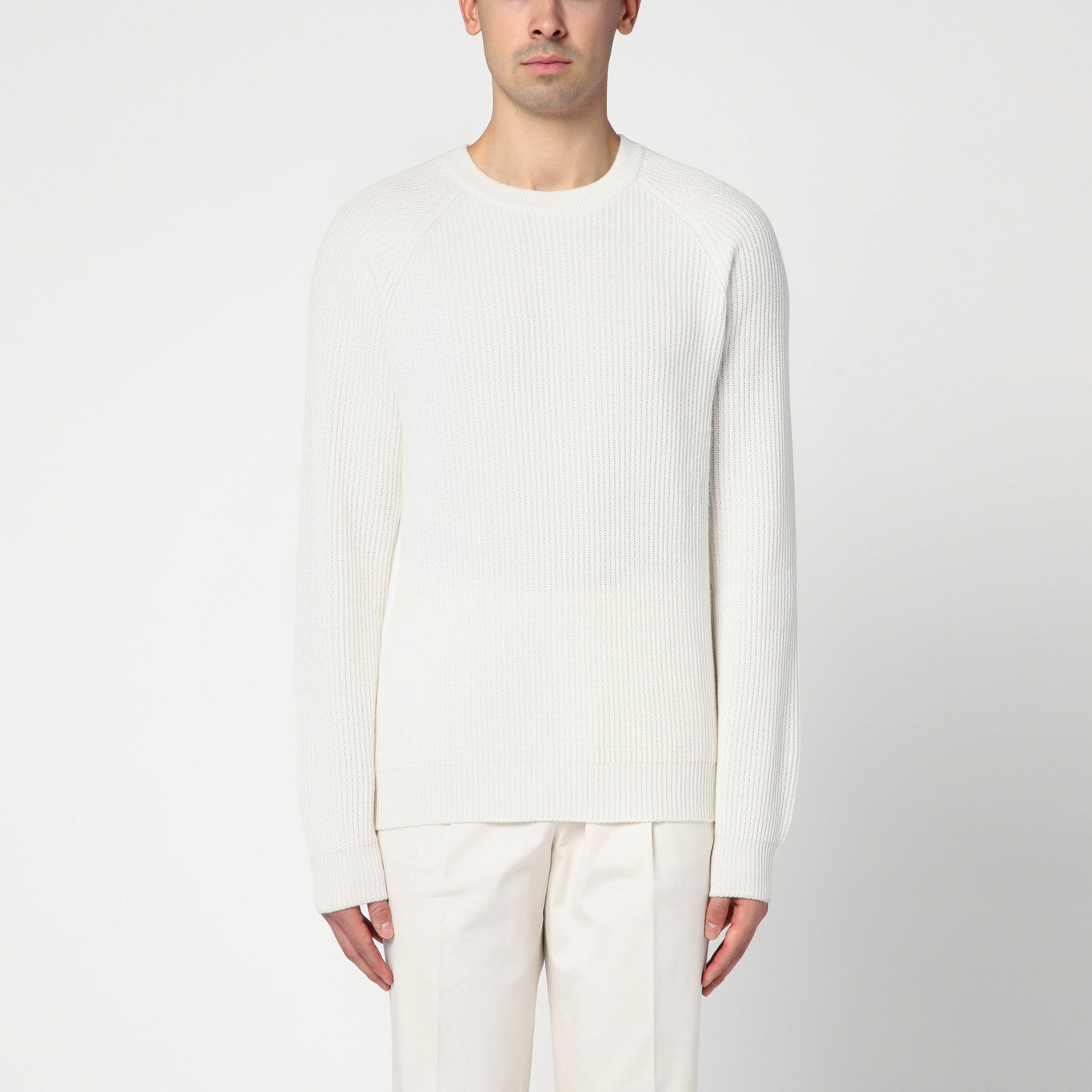 Ivory cashmere crew-neck jumper from Brunello Cucinelli featuring long sleeves, a ribbed design and a straight hem.