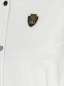 Cotton blend cardigan with front embroidered logo, zip and button closure, pockets, long cuffed sleeves.