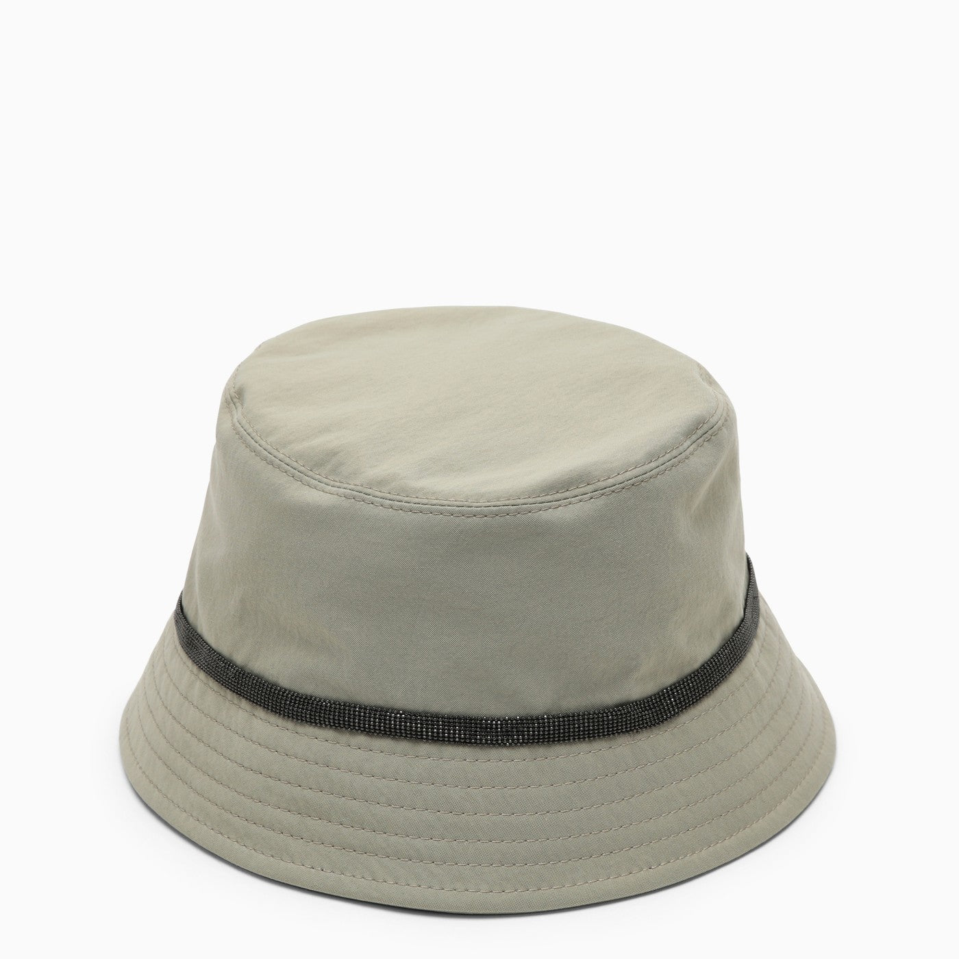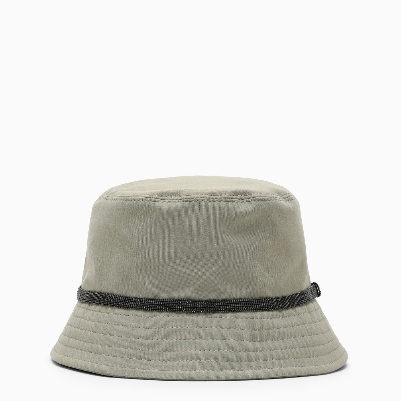 Fisherman hat by Brunello Cucinelli in olive green cotton and linen with beaded band.
