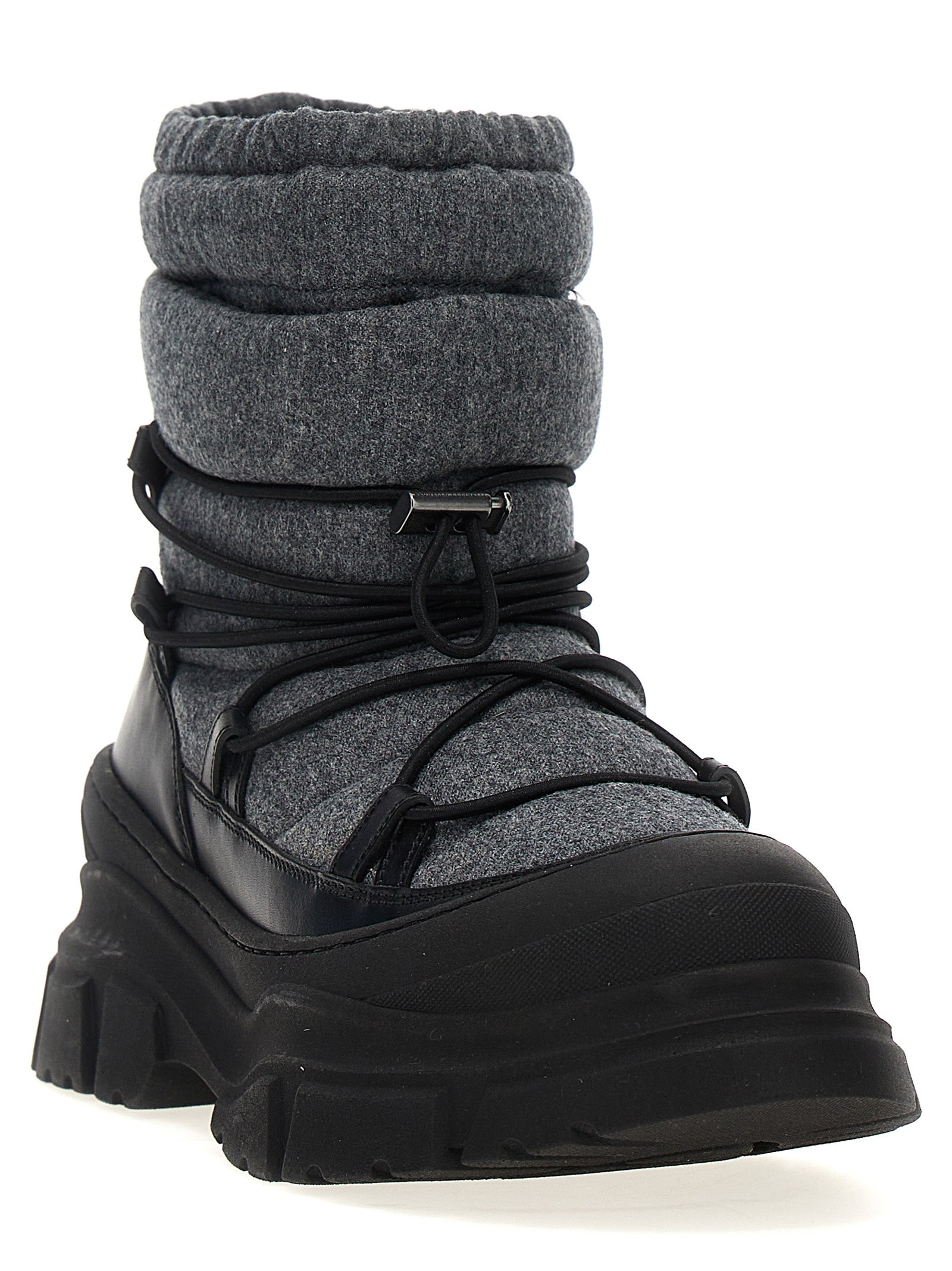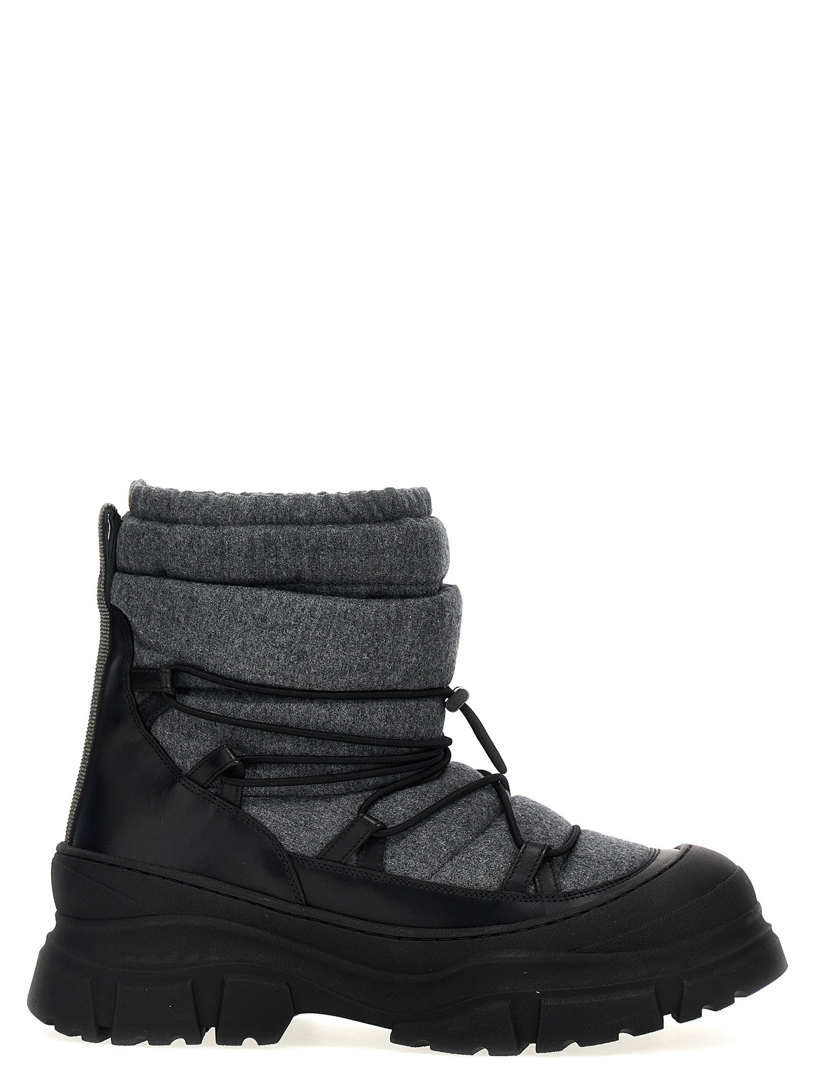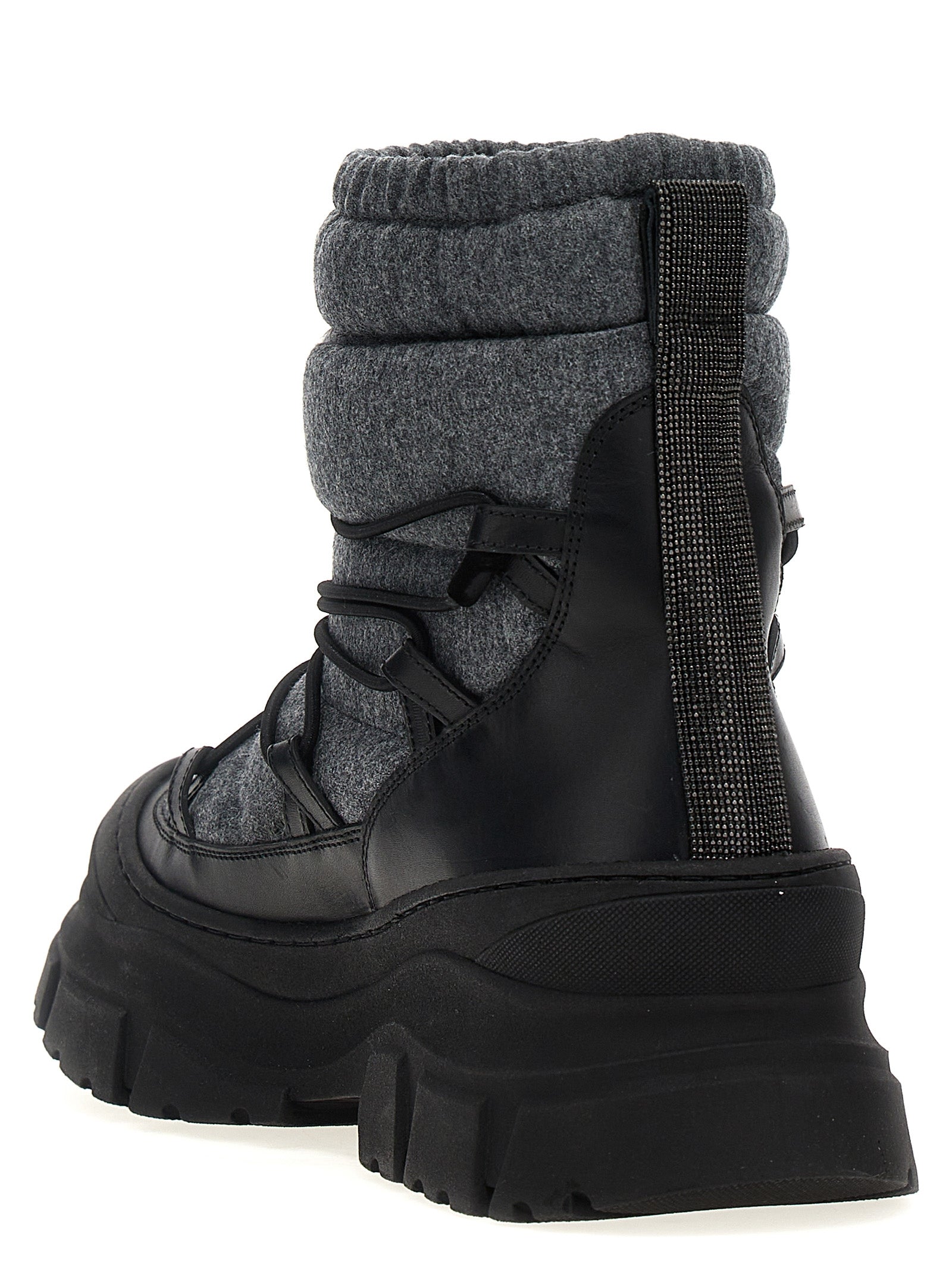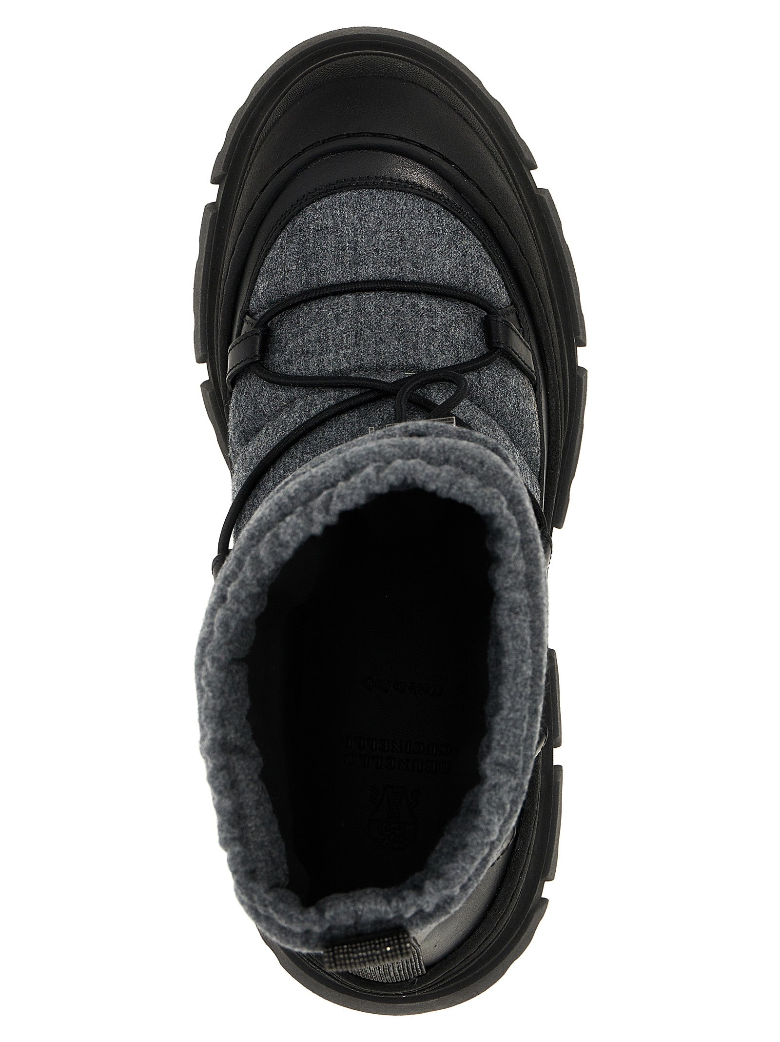 Padded ankle boots, back 'monile' detail, rubber sole, leather trim, elastic ankle wing detail.