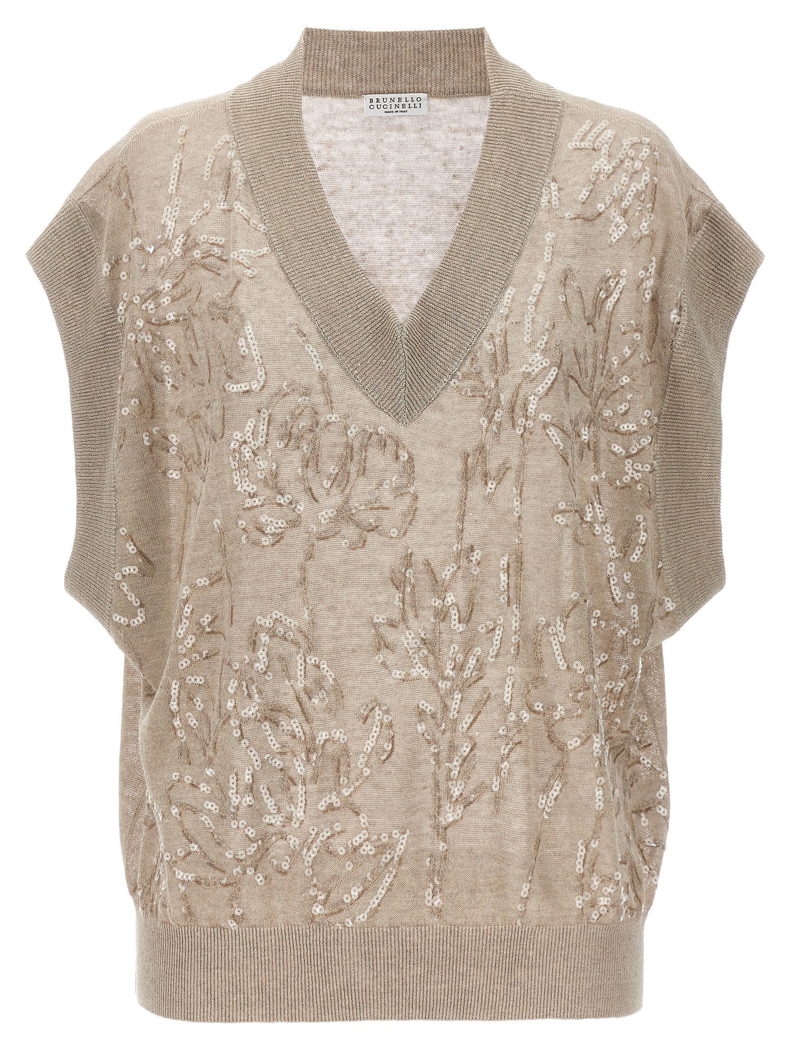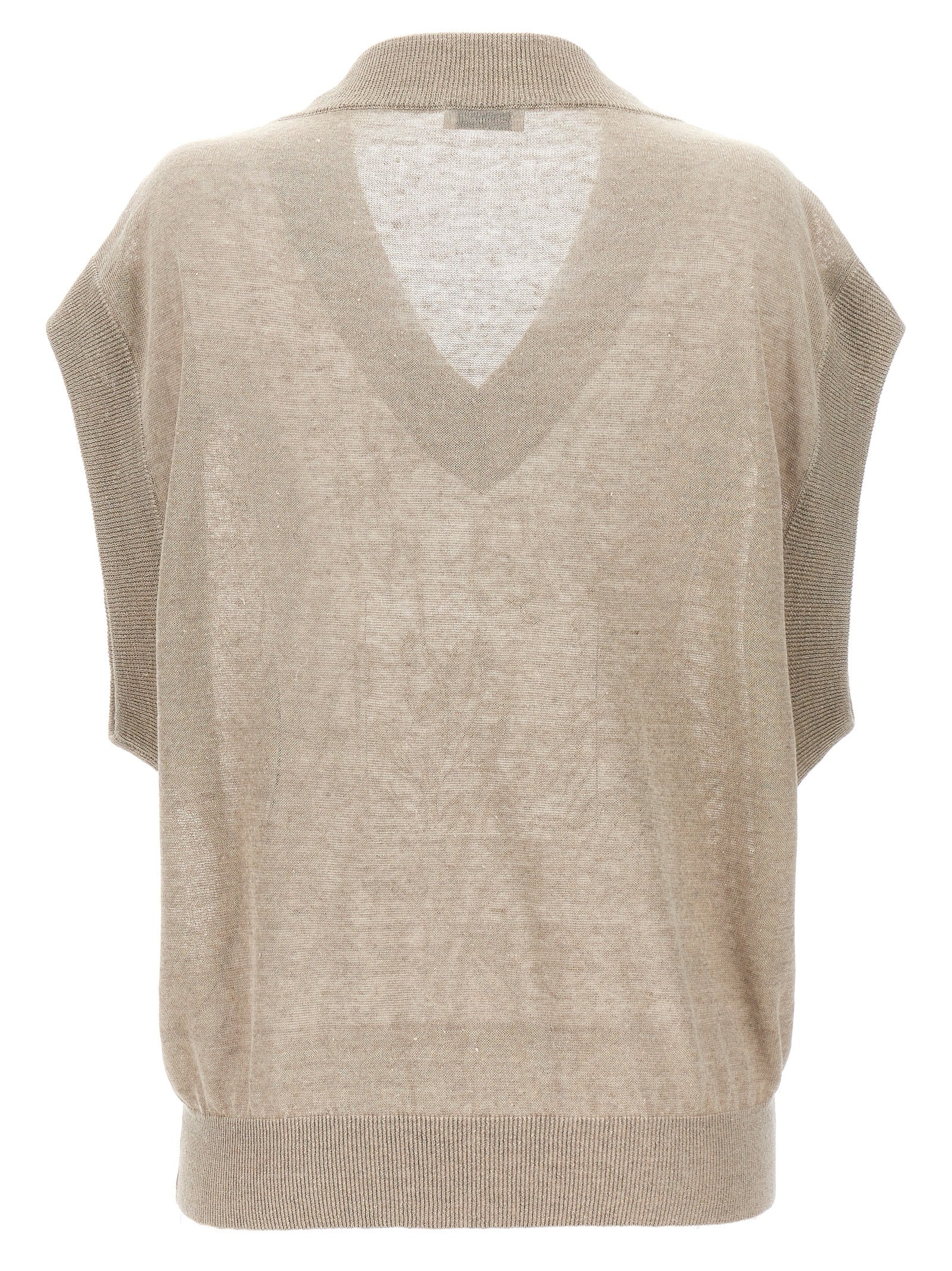 Linen blend waistcoat with sequin embellishment, V-neck.