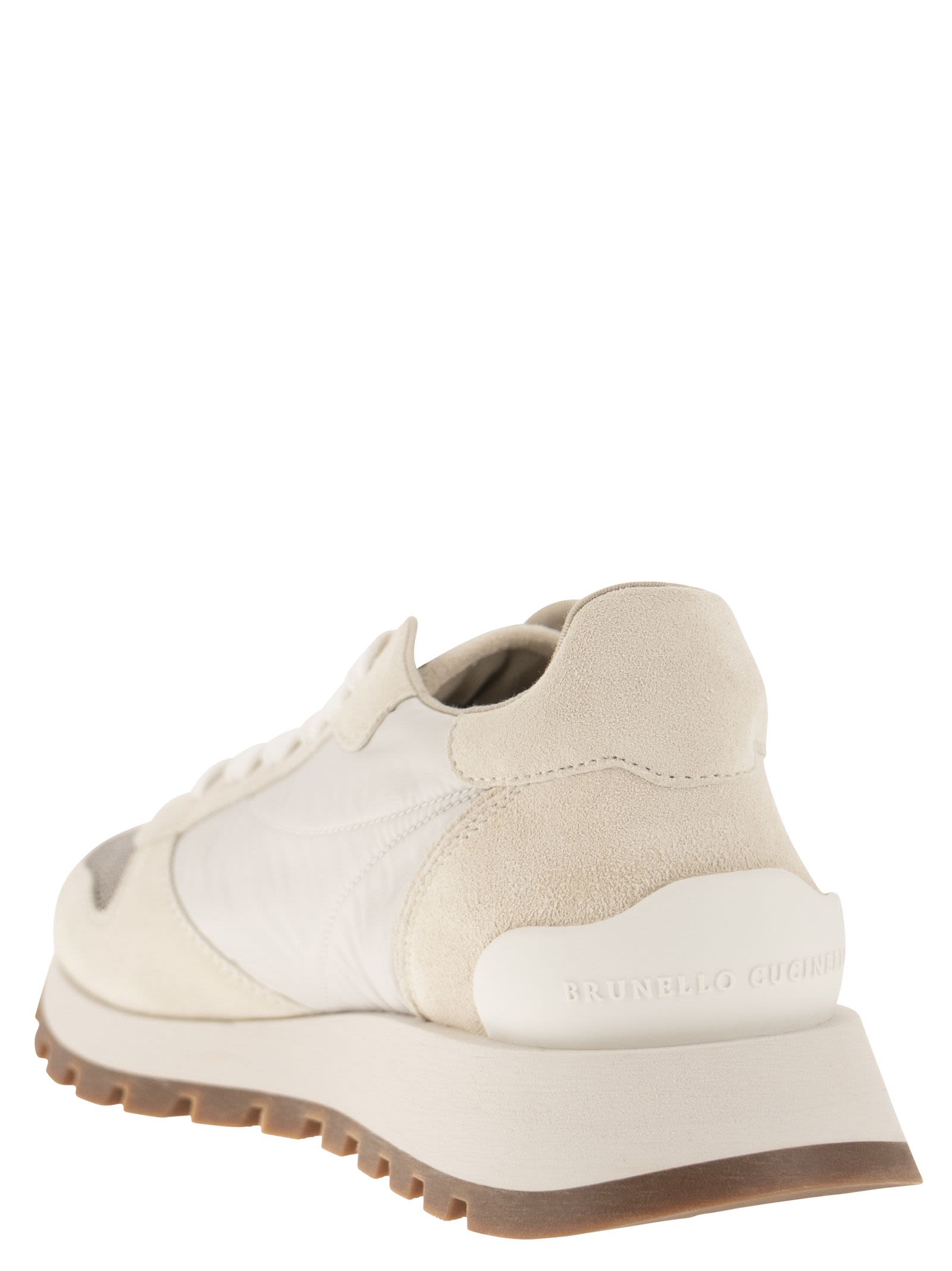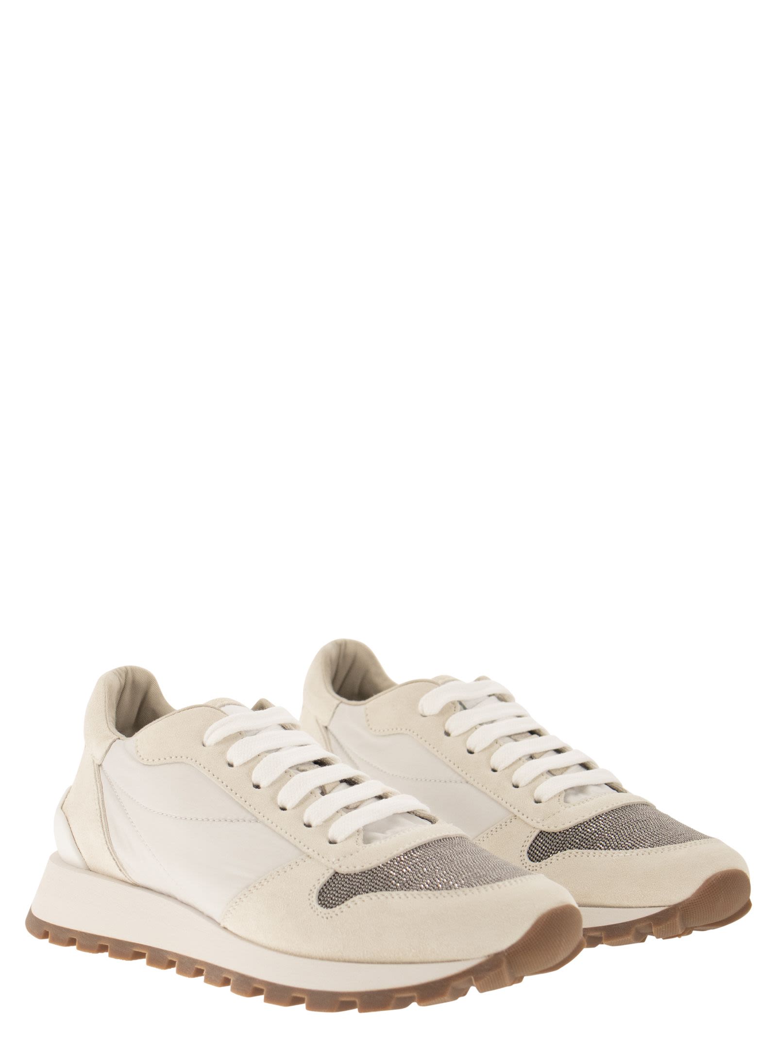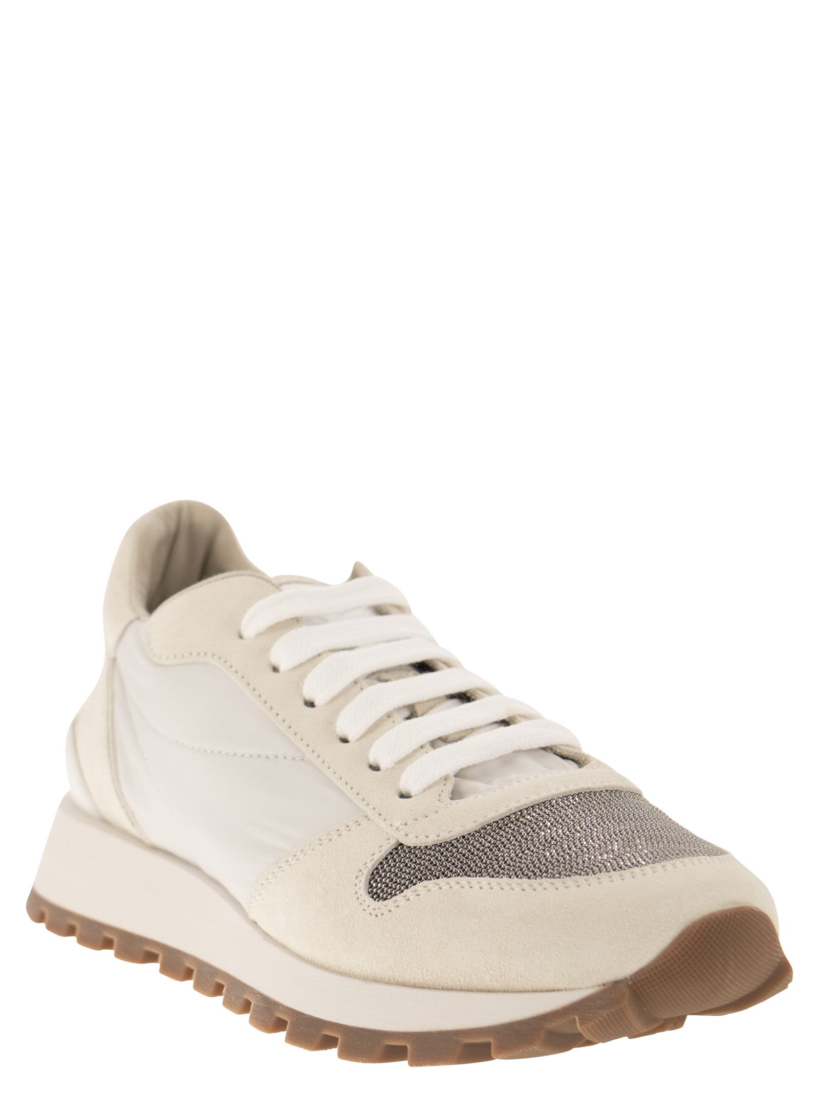 Brunello Cucinelli Suede And Techno Fabric Runners With Precious Toe