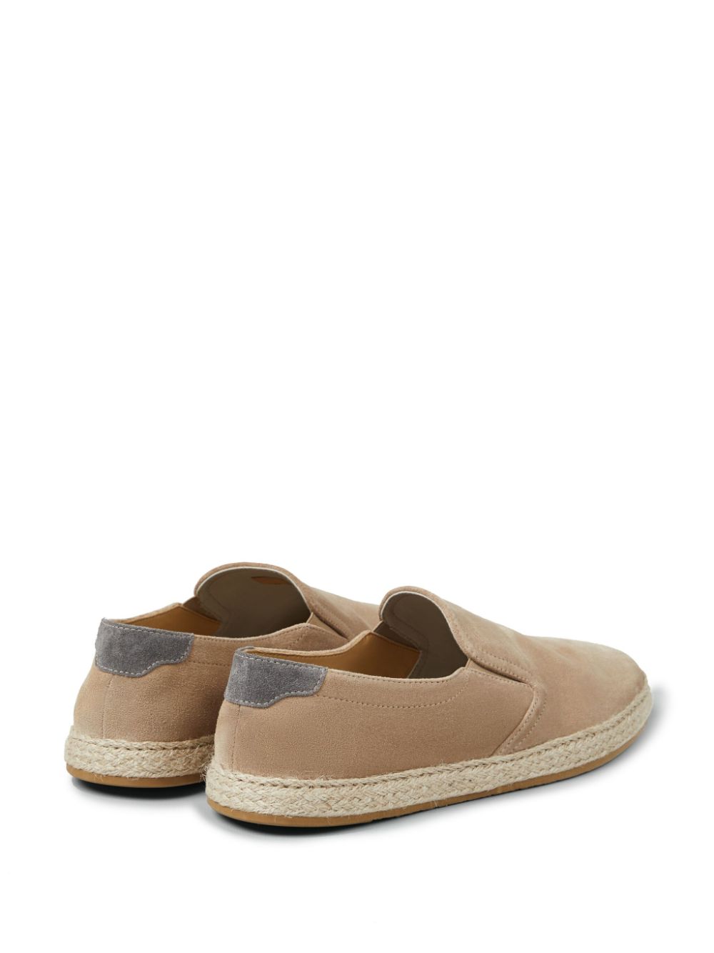sand beige leather/suede contrasting heel counter almond toe slip-on style branded leather insole flat rubber sole