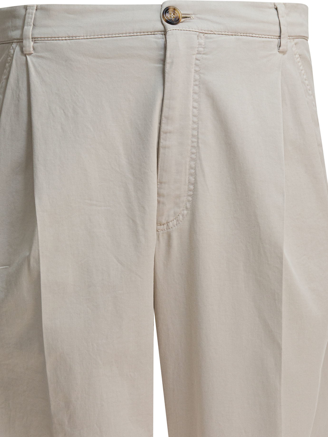 Brunello Cucinelli cotton chino pants made from a mixed fabric with a lightweight structure. The model features a straight fit and regular silhouette. The design includes five-pocket construction, front button closure and concealed zipper. The main materials are cotton and elastane, selected for comfort in fit and durability. Interior seams are carefully finished and belt loops allow for belt use.