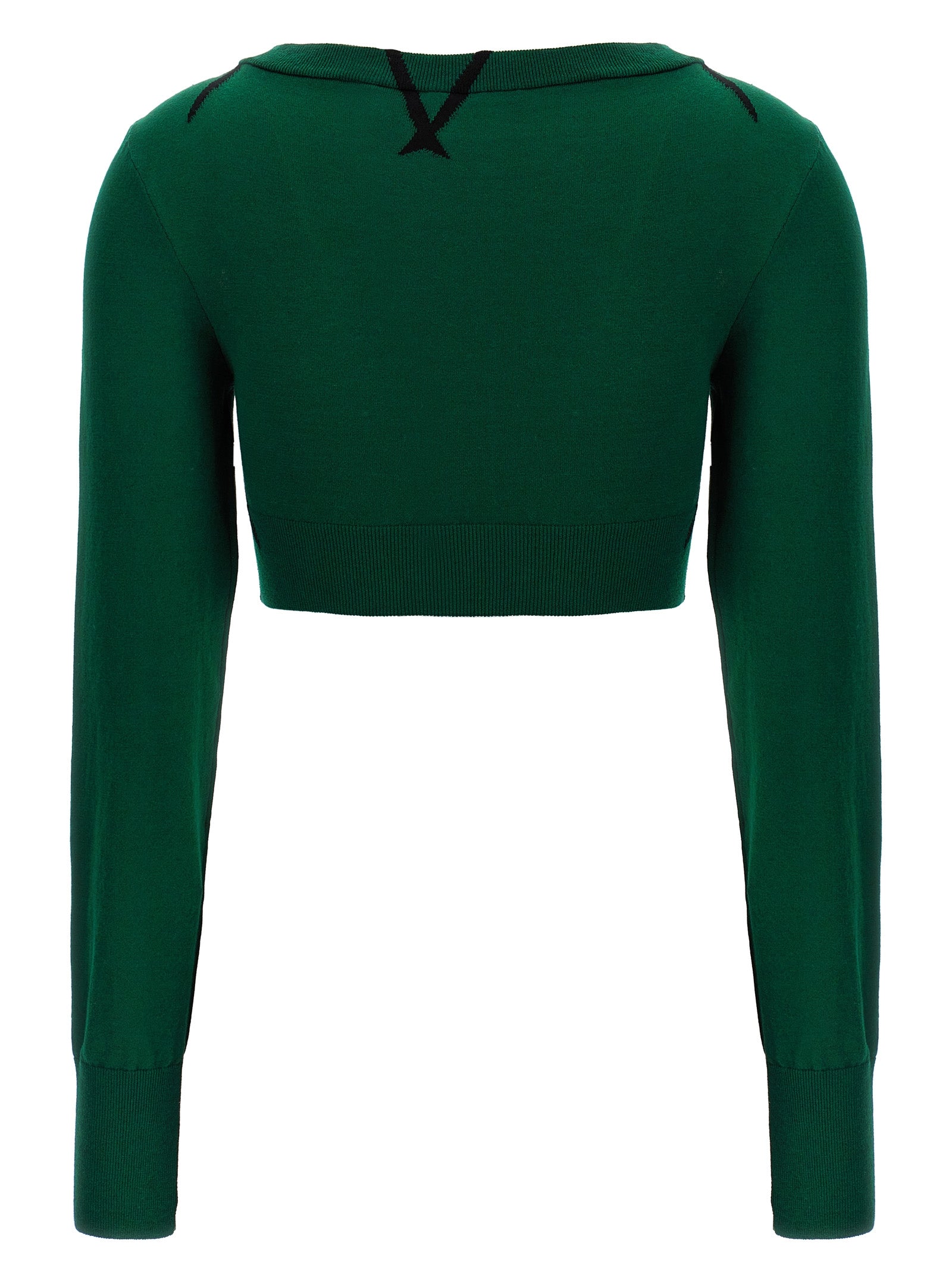 Sweater with argyle pattern in cotton, crop model with safety pin detail.
