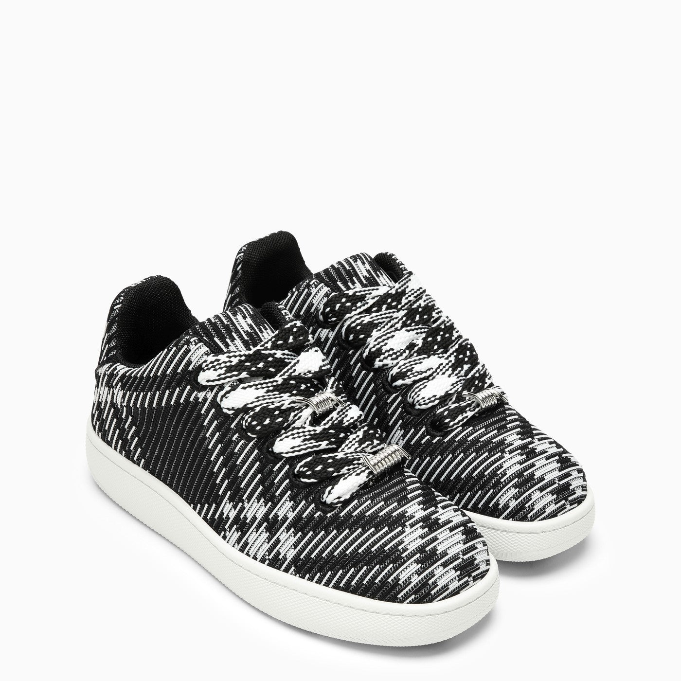 Black and white Check patterned stretch nylon sneaker from Burberry, featuring tone-on-tone lace-up closure, round toe and logoed rubber sole.