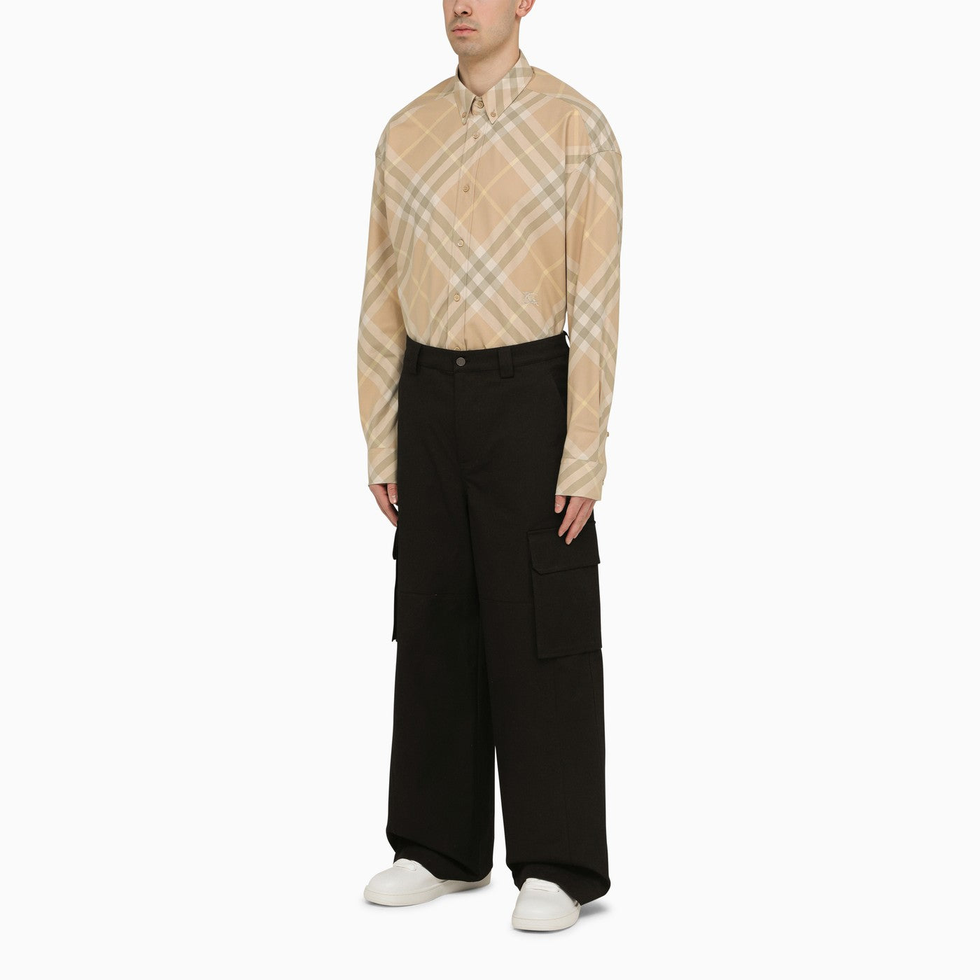 Beige cotton Check print button-down shirt from Burberry featuring a button fastening, long sleeves, buttoned cuffs and front logo embroidery.