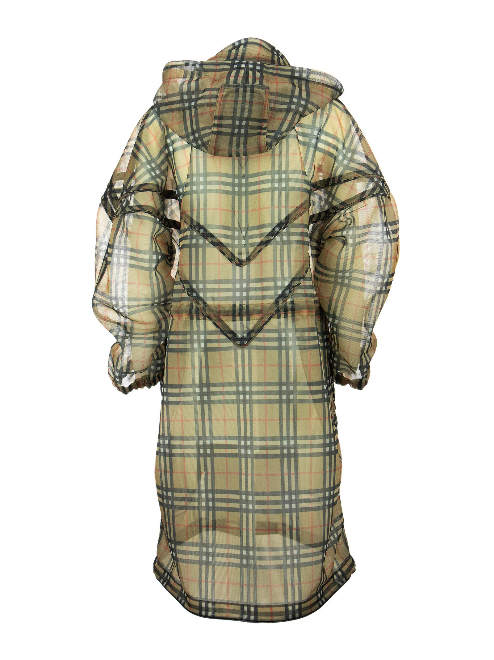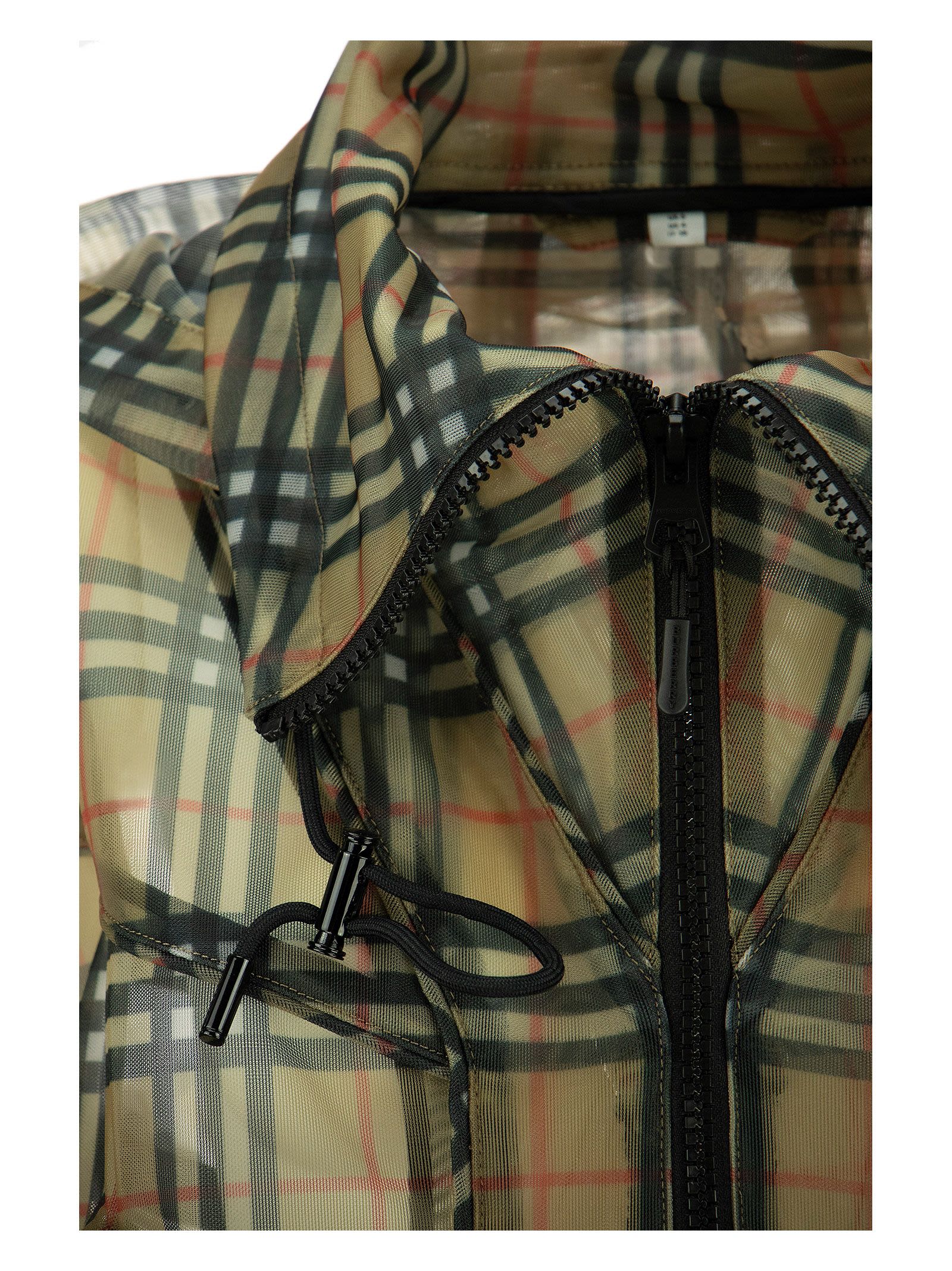 Relaxed fit trench in finely worked mesh fabric, decorated with the Vintage check motif taken from the Burberry archives. - Two-way zip closure - Flap pockets with snaps - Hood, waist and hem with drawstring - Elasticated sleeve hems DESIGNER ID: 8042866 A7028