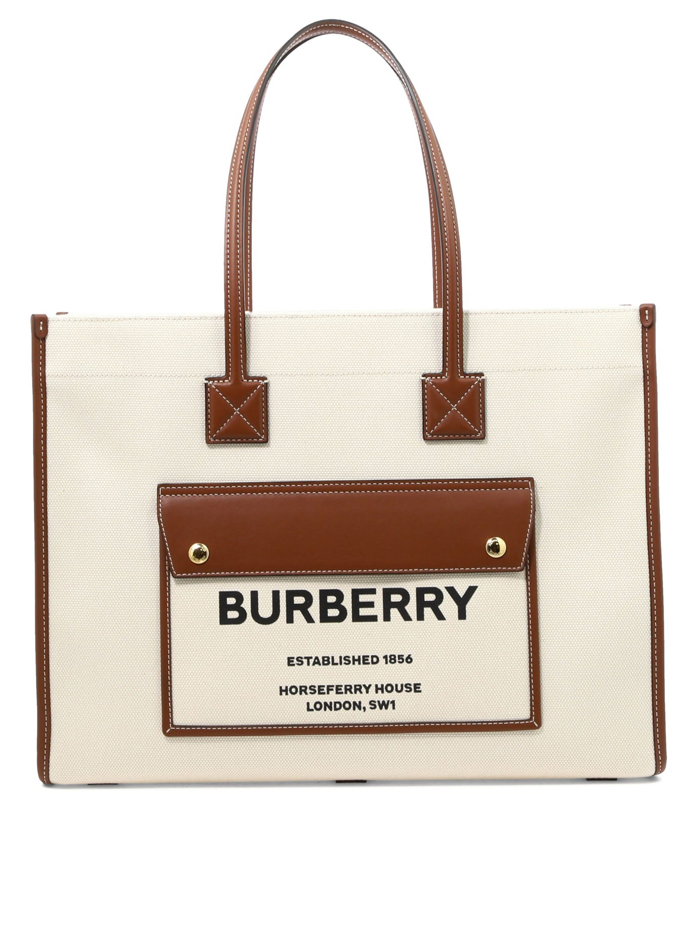 Pair the "Medium Freya" Tote with a classic Burberry trench coat for a timeless look, or with a midi dress and leather boots for a sophisticated yet modern style. Top it off with oversized sunglasses and a wide-brimmed hat for a flawless outfit.