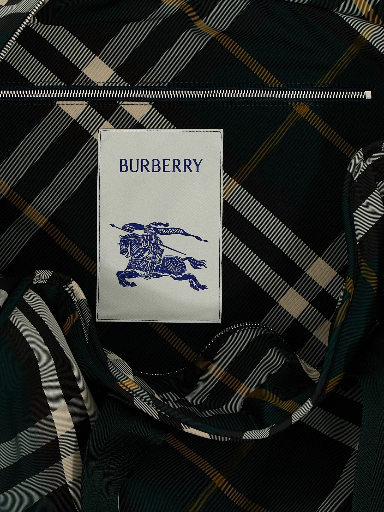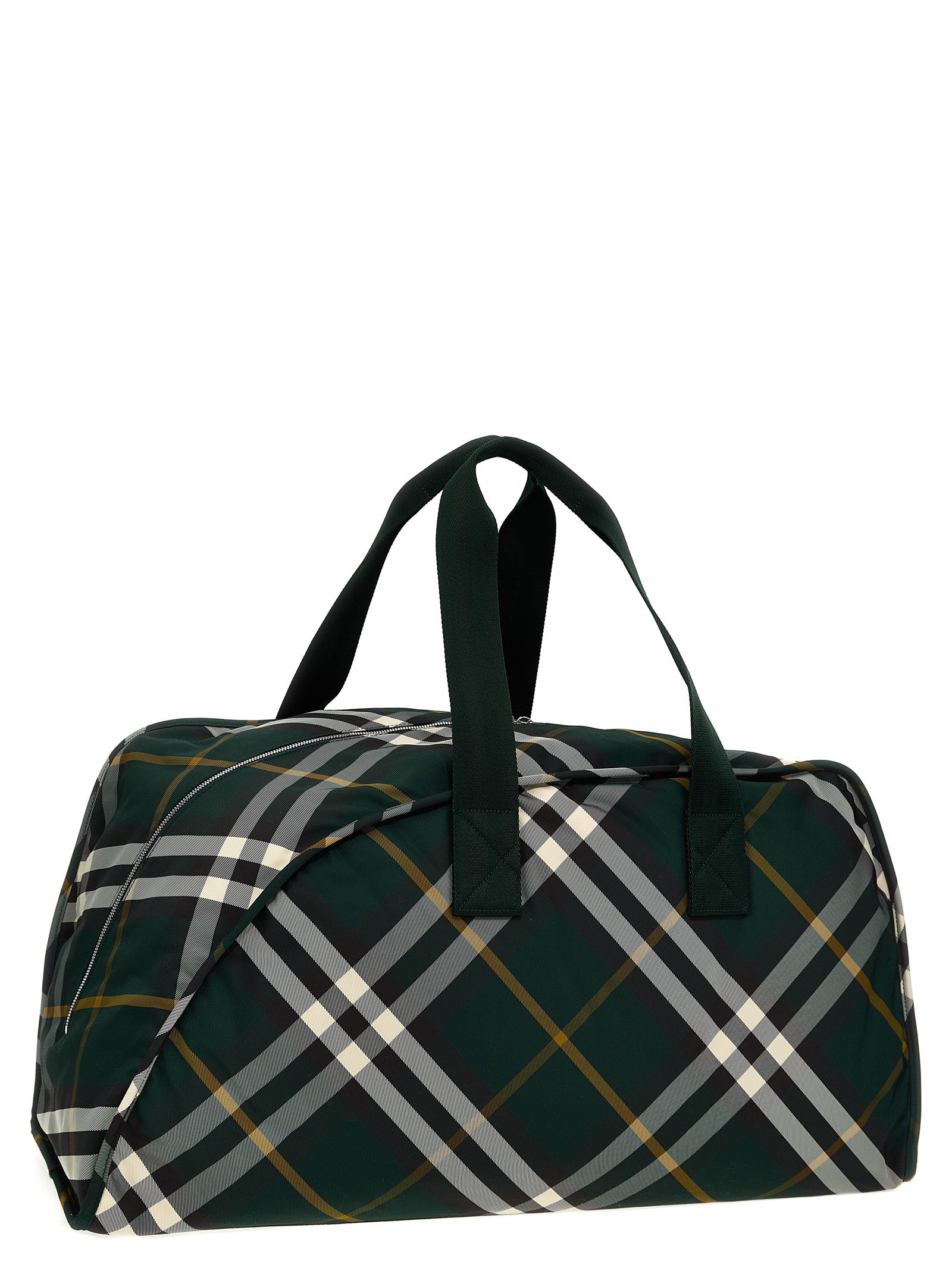 'Shield' large nylon travel bag with check print, zip closure, double tape handle.