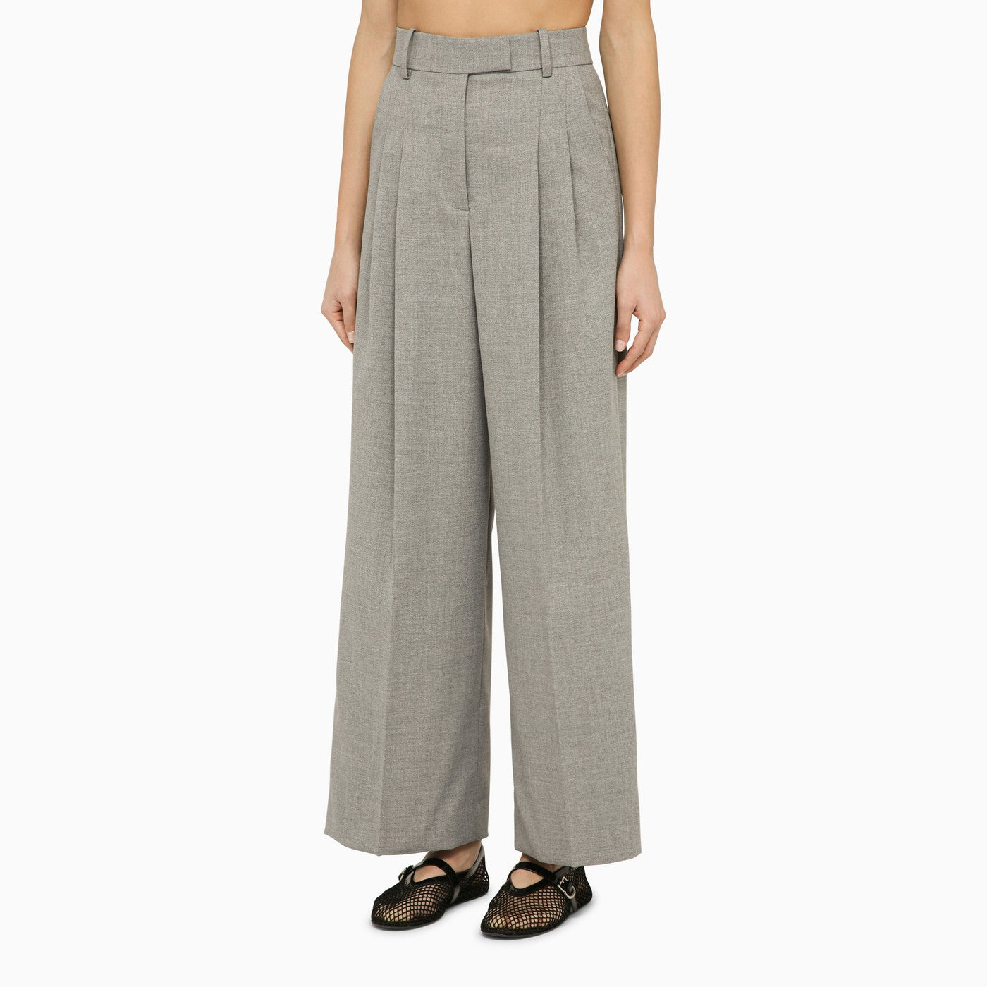 Grey wide trousers by By Malene Birger featuring a tailored design, a high waist, a zip and hook fastening, belt loops, front pleats, two side pockets and a back welt pocket.