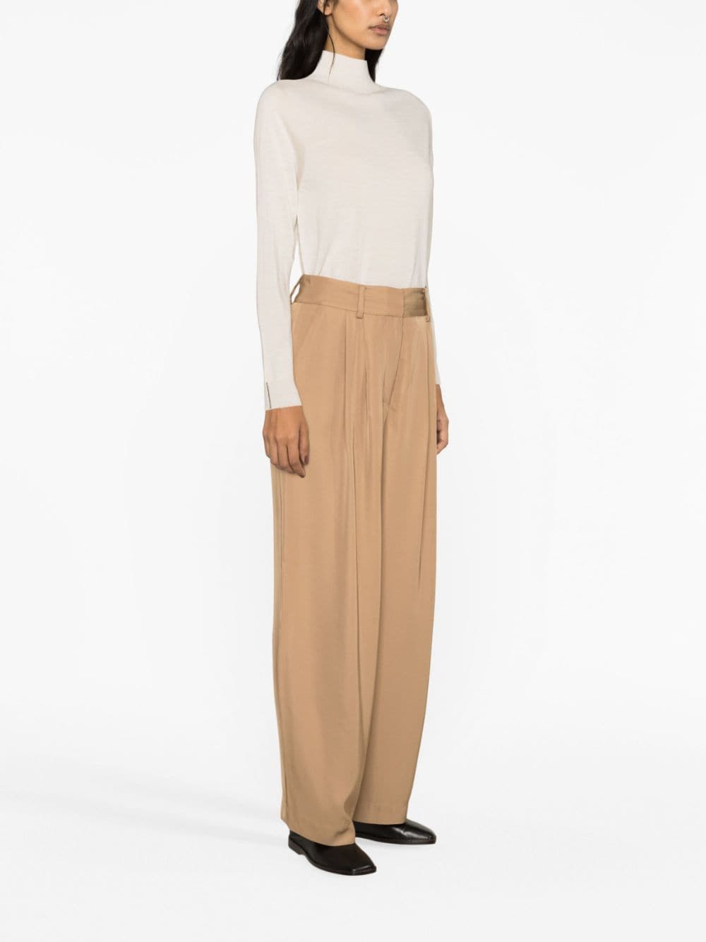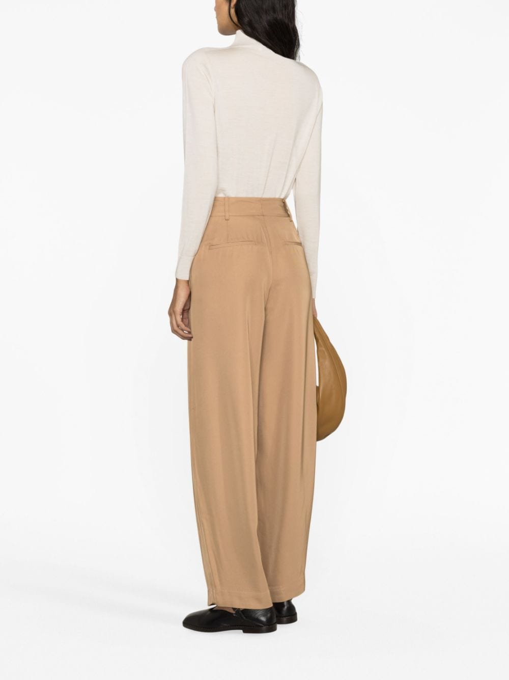 Piscali mid-rise tailored trousers from BY MALENE BIRGER featuring tobacco brown, tailored design, pleat detailing, mid-rise, belt loops, concealed front fastening, two side inset pockets, two rear welt pockets and long length.