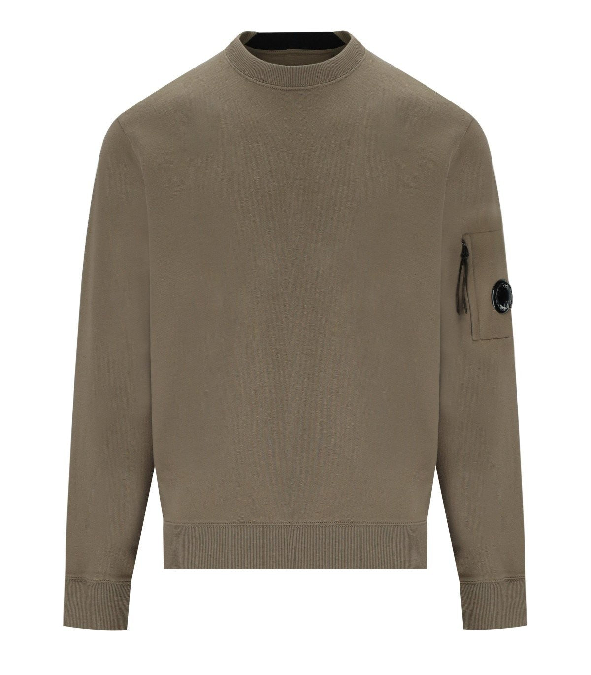 Diagonal Raised sweatshirt by C.P. Company made of cotton in shades of brown. Characterized by soft long sleeves finished with ribbed edges, it features a classic crew neck. Equipped with a small pocket with a lens attached to the sleeve. Logo patch applied on the back side. Regular fit. Composition: 100% cotton.