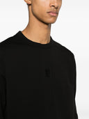 black stretch-cotton logo print at the chest crew neck long sleeves ribbed cuffs and hem French terry lining