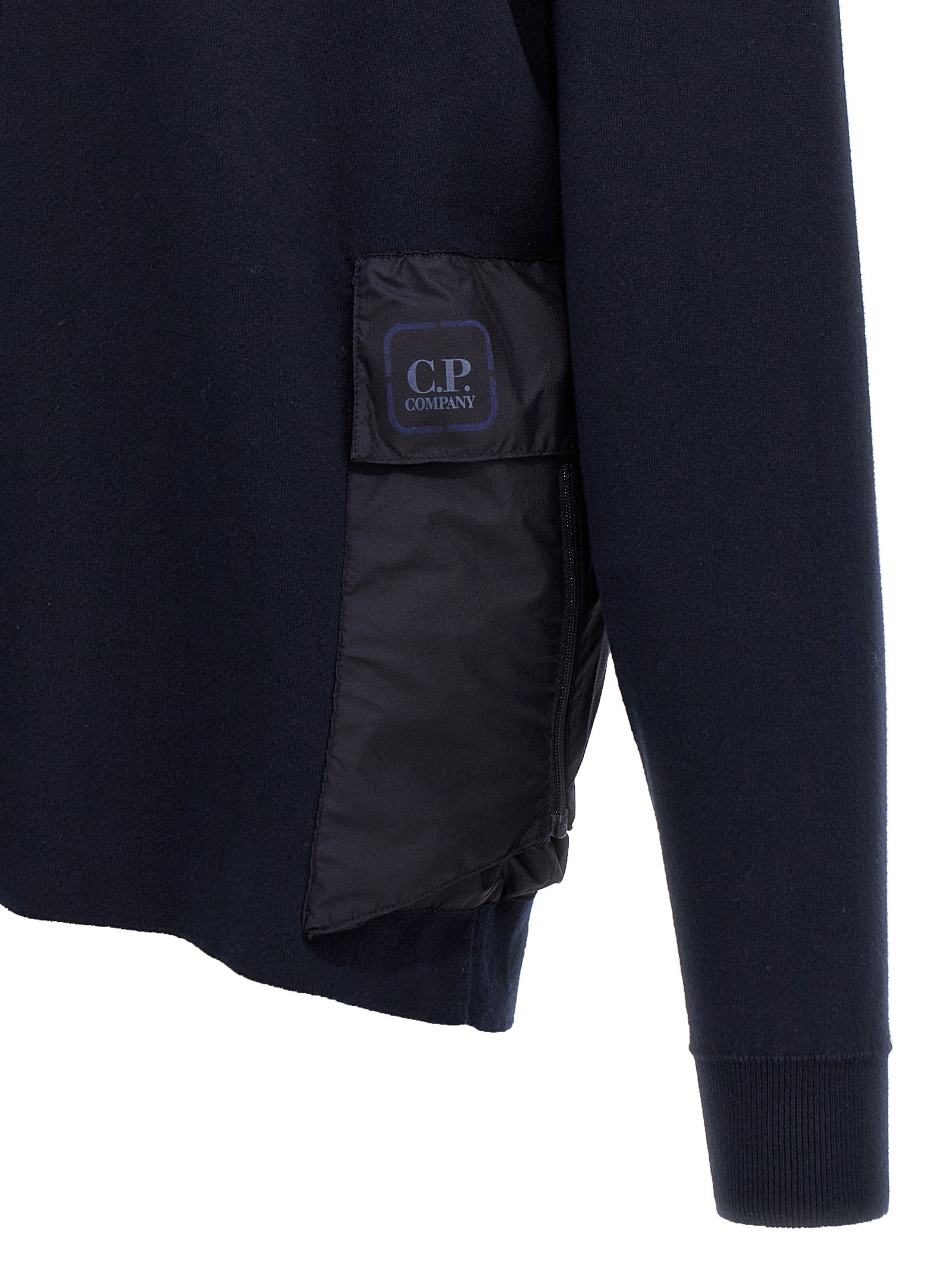 'Metropolis Series' cotton knit cardigan with removable hood and zip closure. Equipped with a side nylon pocket in which to close the garment.